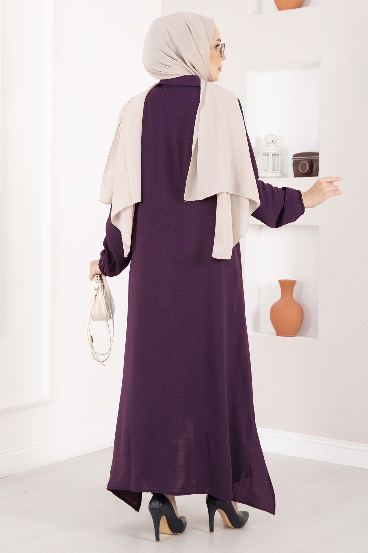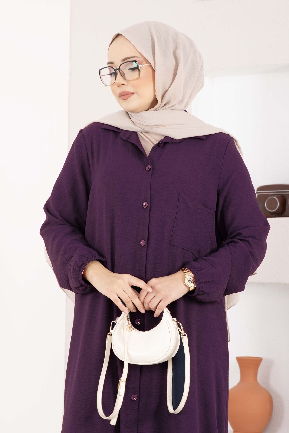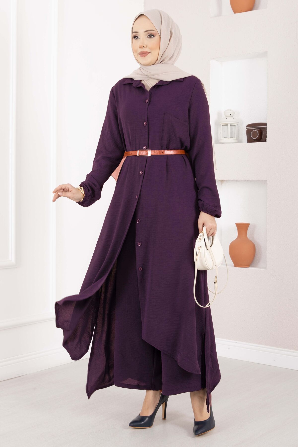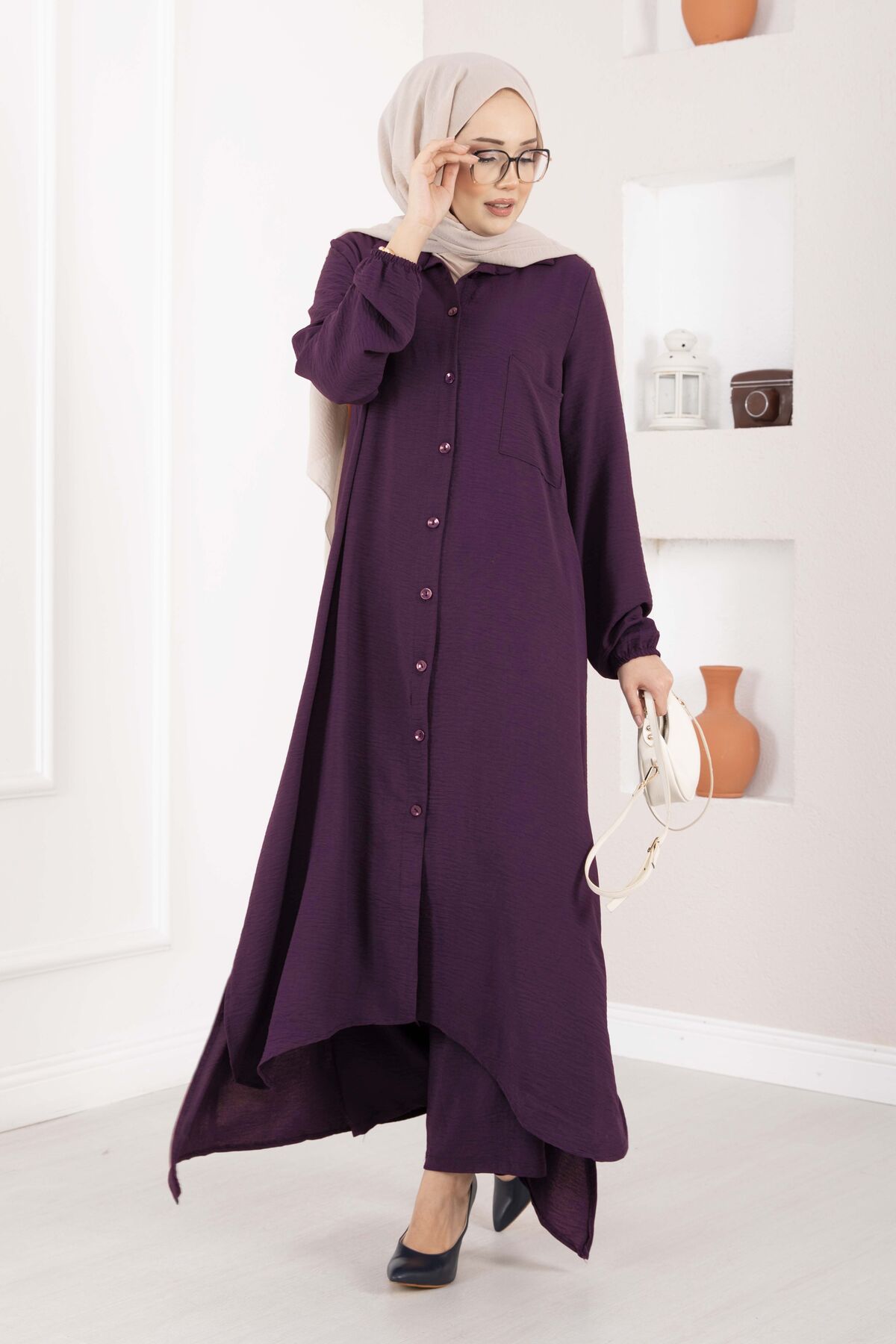 Boydan Düğmeli Aerobin Tesettür İkili Takım Mürdüm