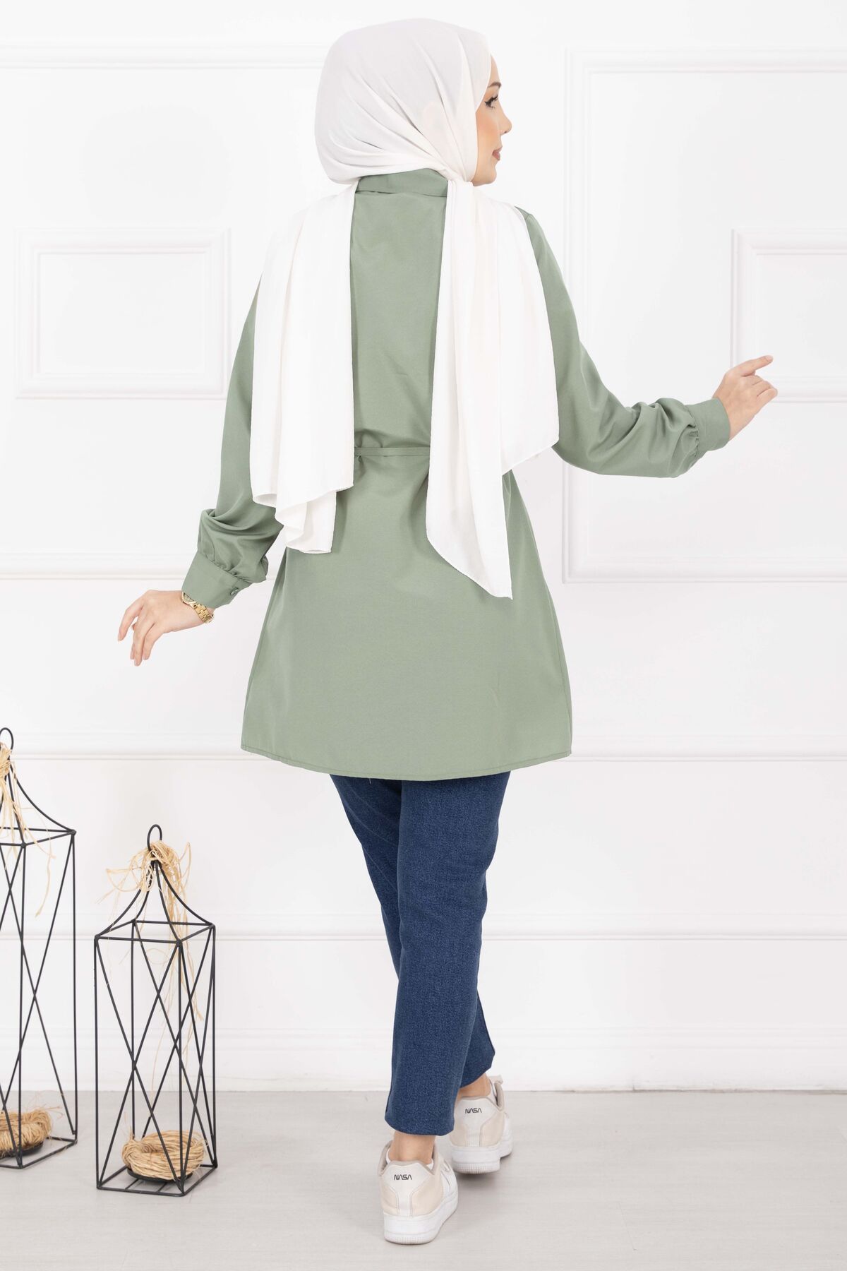 Boydan Gizli Düğmeli Pile Detaylı Tesettür Gömlek Çağla Yeşili Yorumları