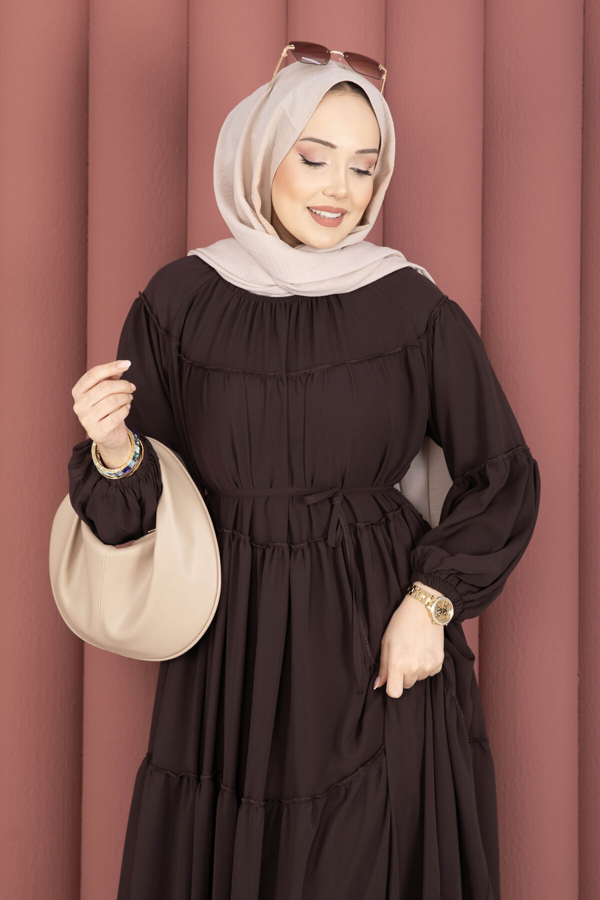 Büzgü Detaylı Kat Kat Elbise Kahve Yorumları