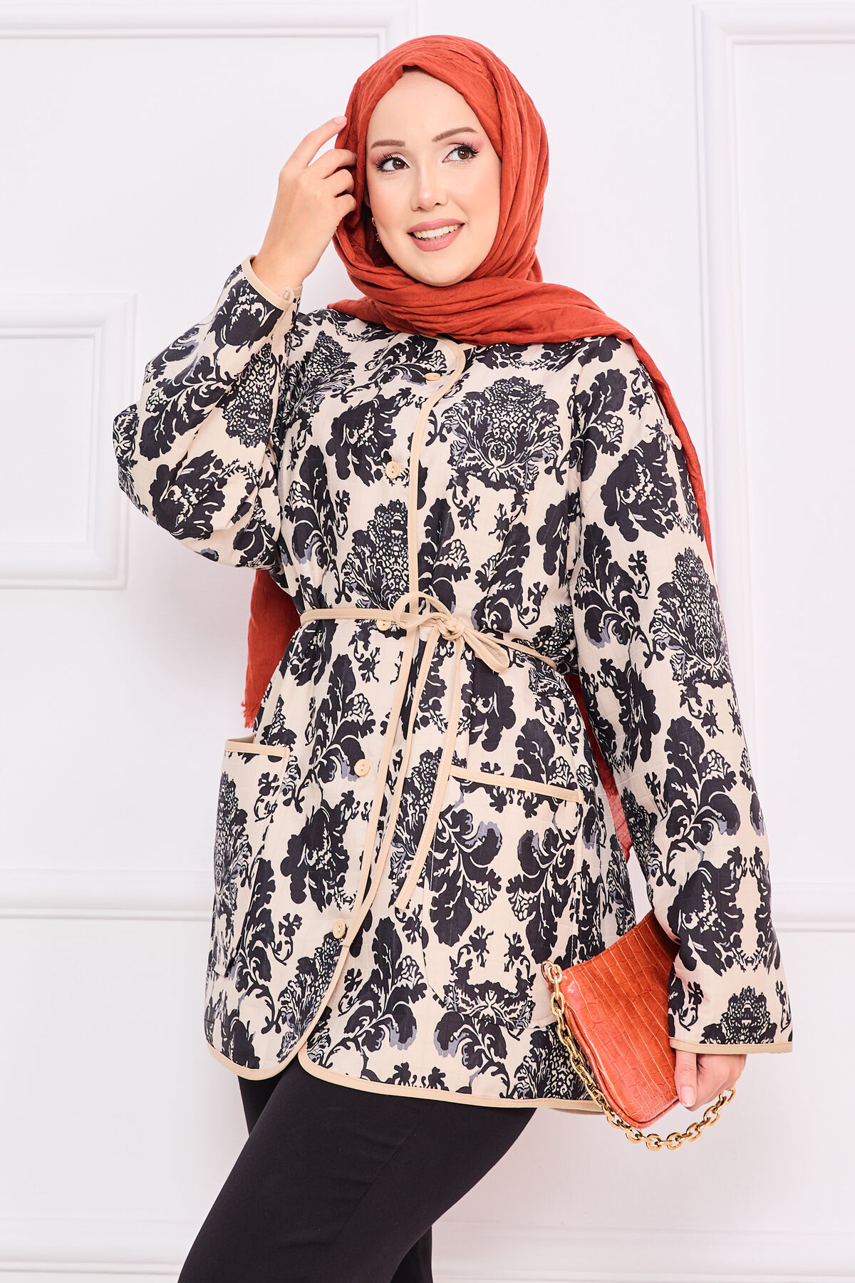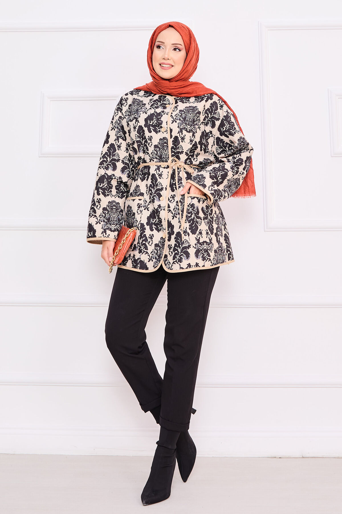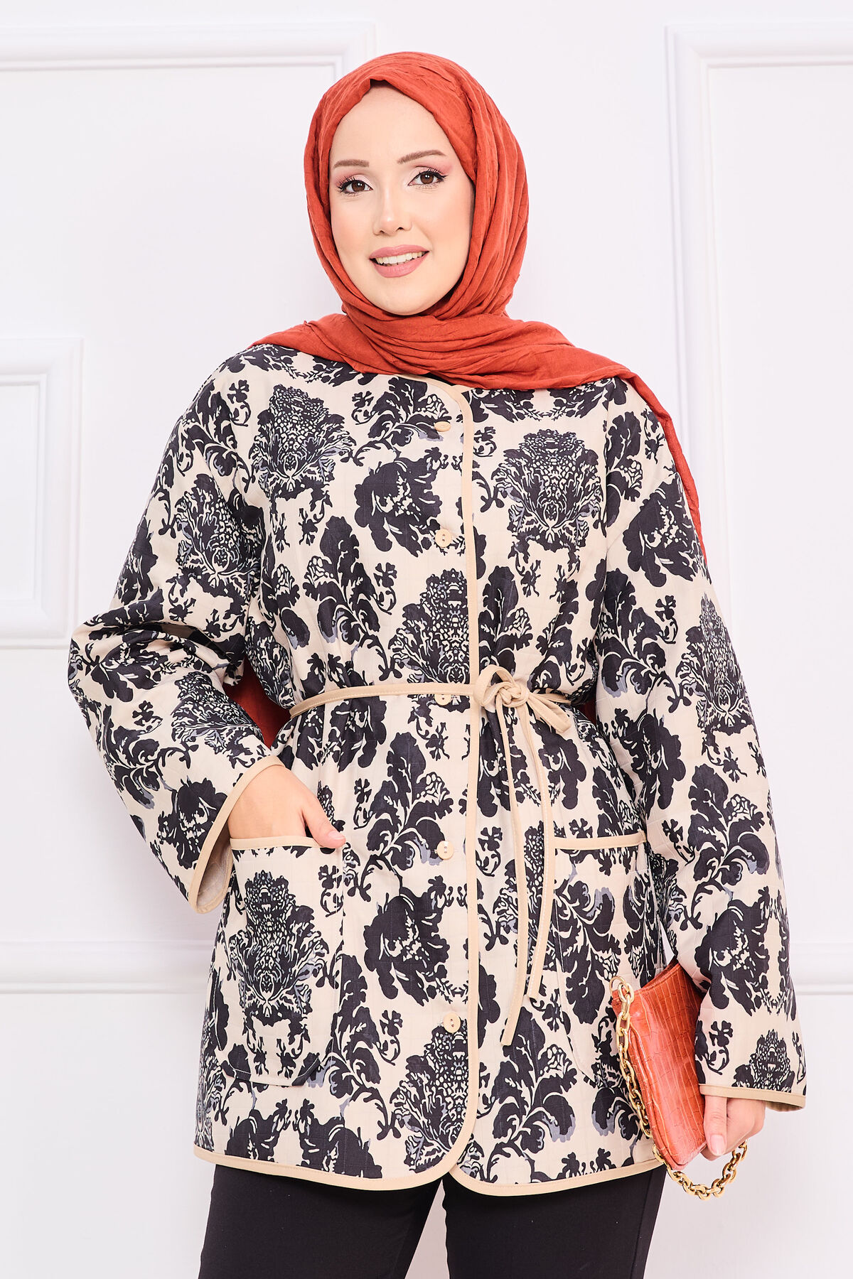 - Ürün Sonbahar & Kış modasıdır. Seyyar kemerli çift cep detaylı boydan düğmeli bohem kapitone ceket.