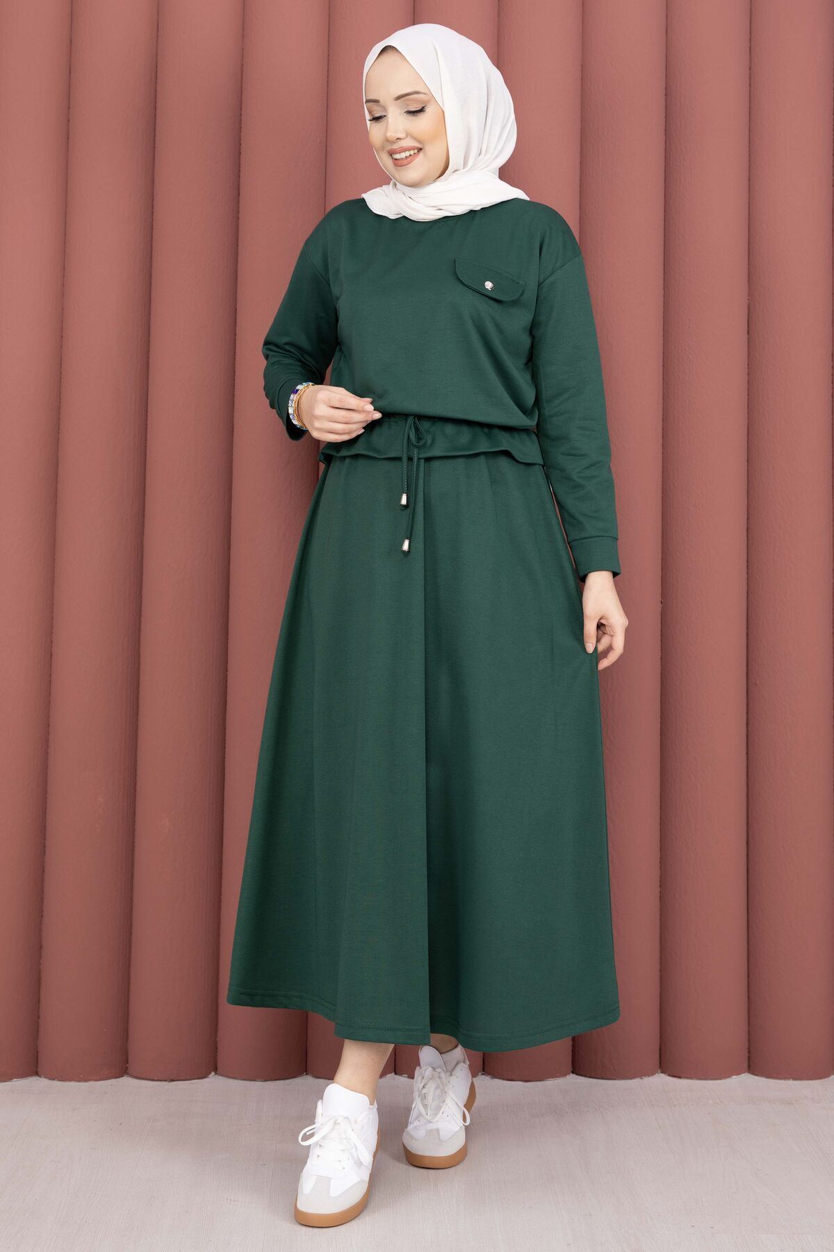 - Ürün İçeriği: Crop Tunik + Etek (2 Parça)
