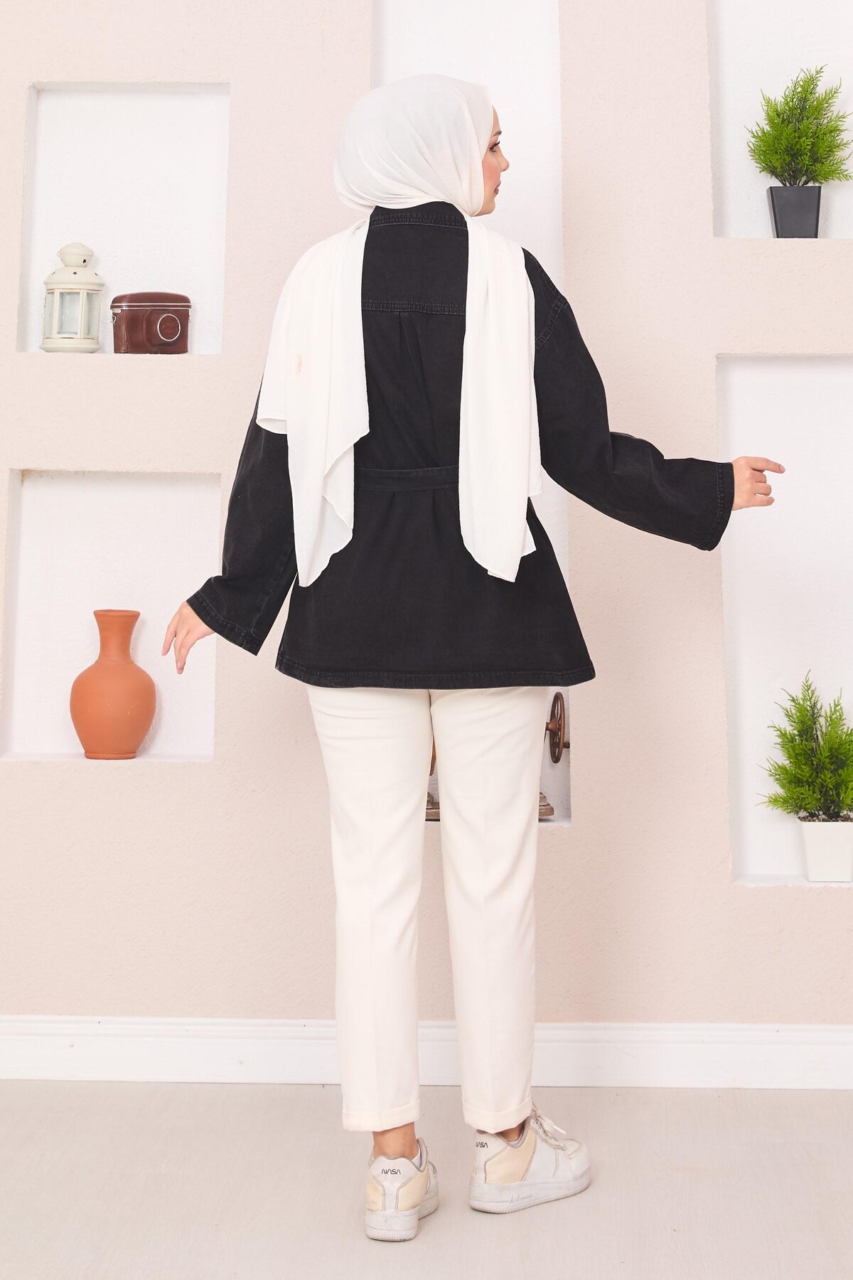 Cep Detaylı Seyyar Kuşaklı Kot Ceket Siyah