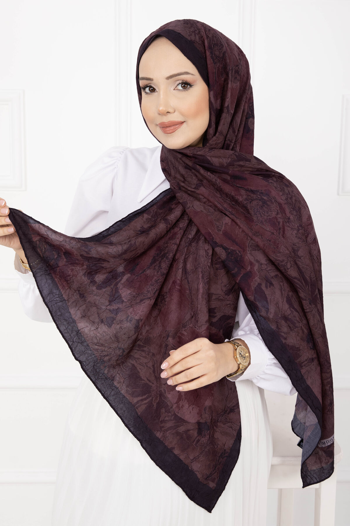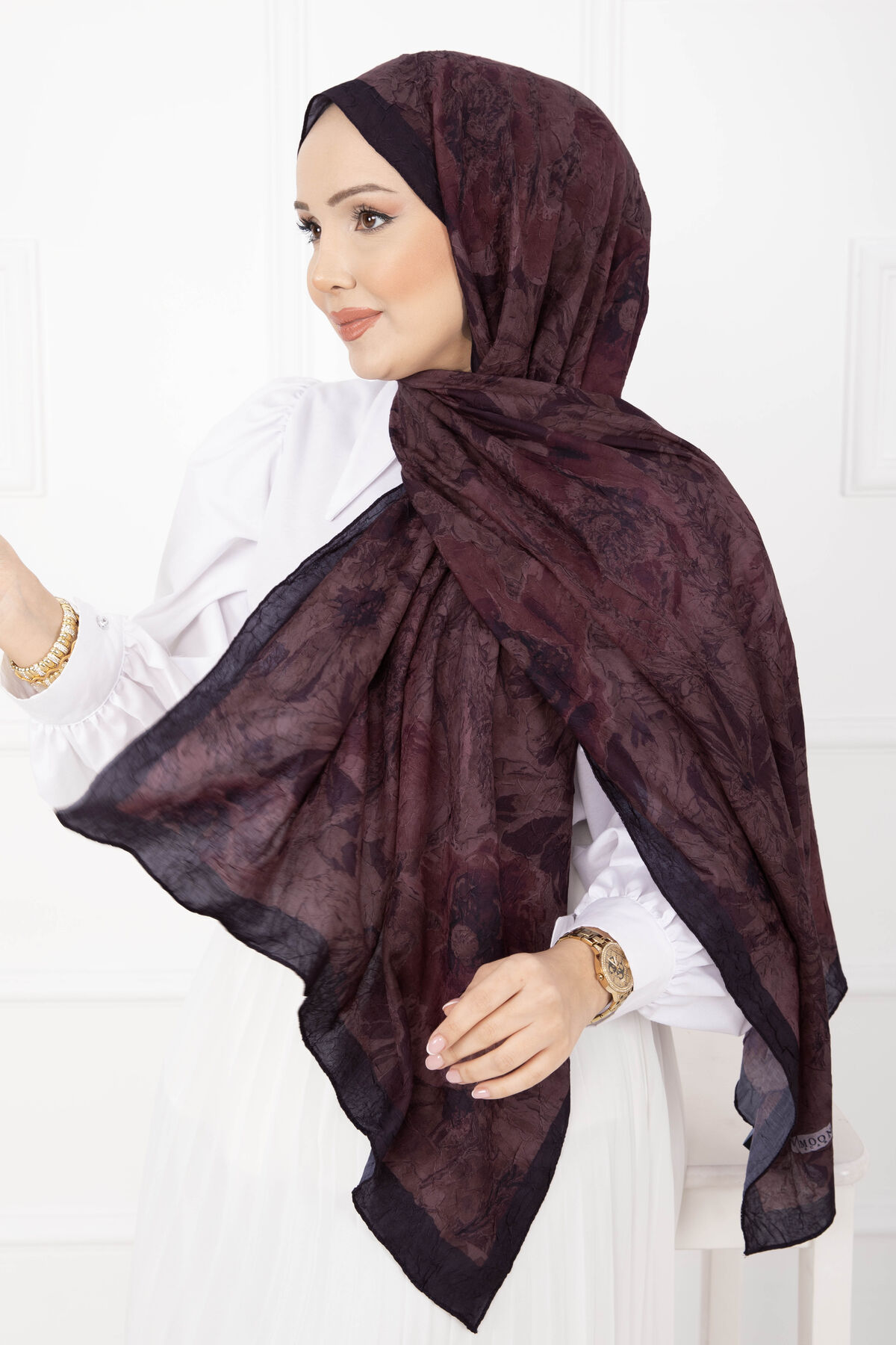 Çiçek Desen Bambu Şal Serisi Bordo