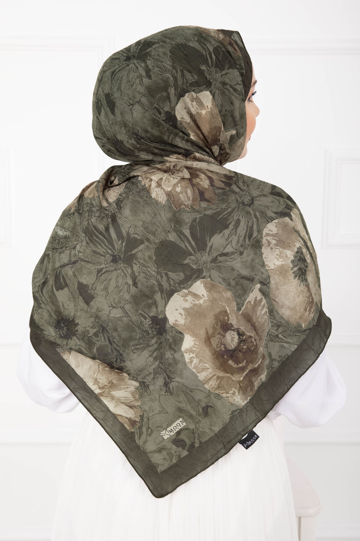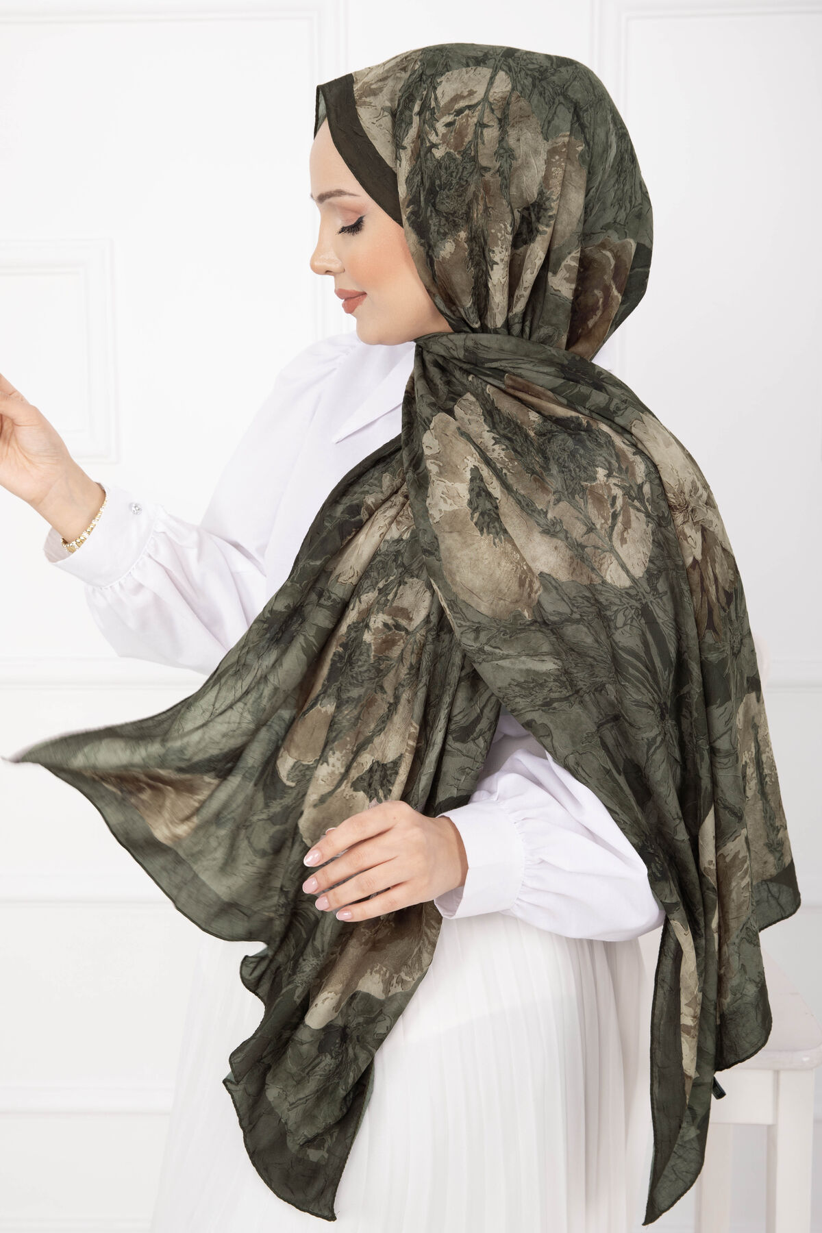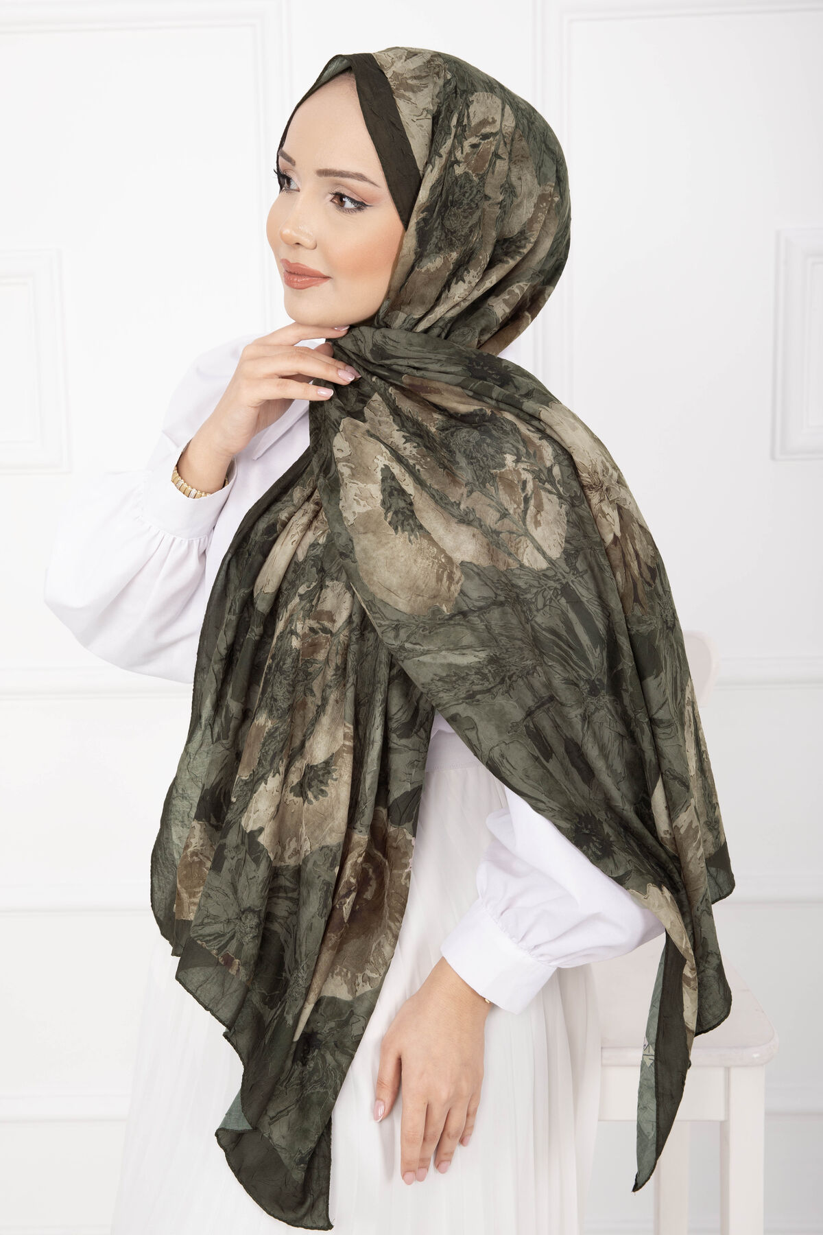 Çiçek Desen Bambu Şal Serisi Haki