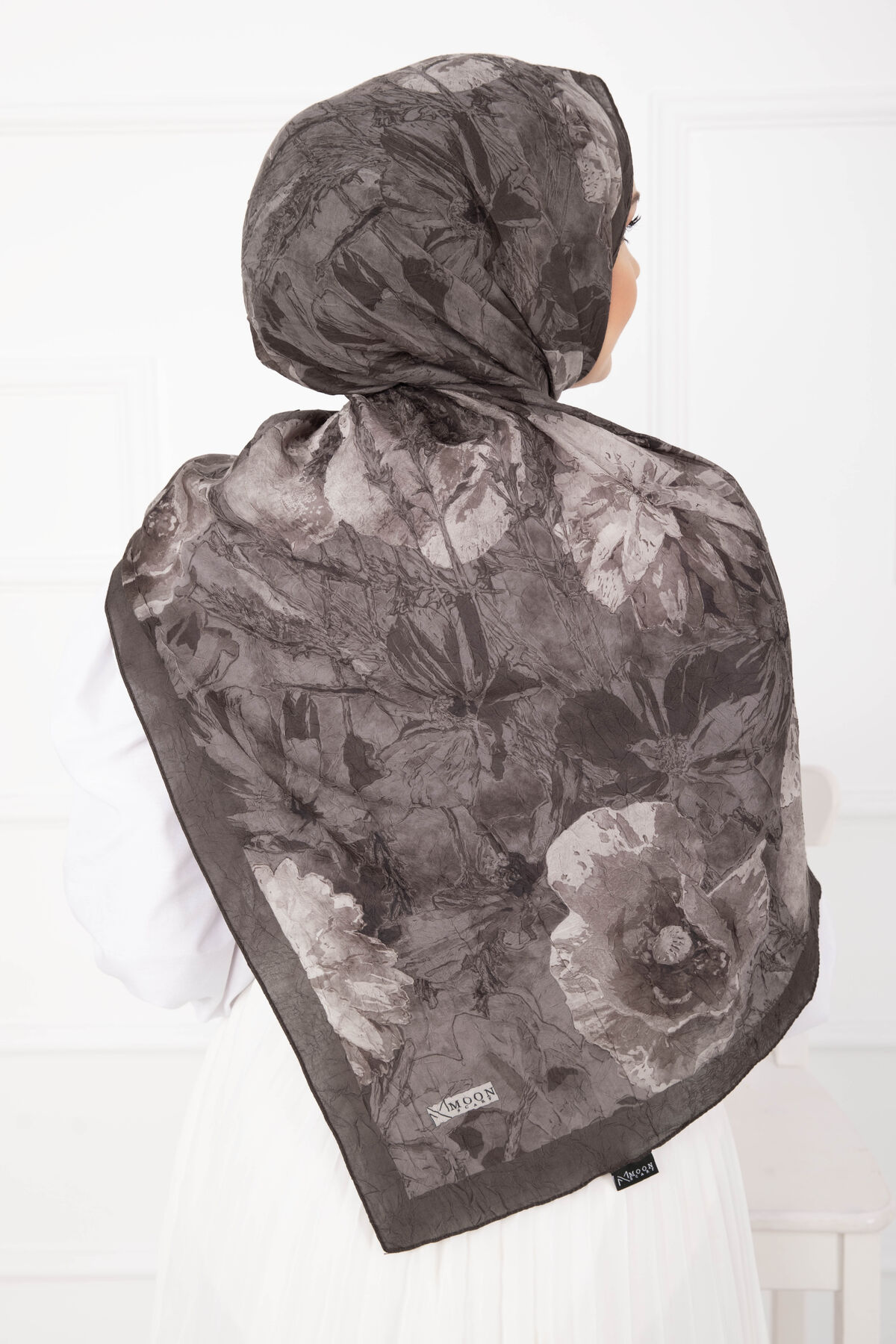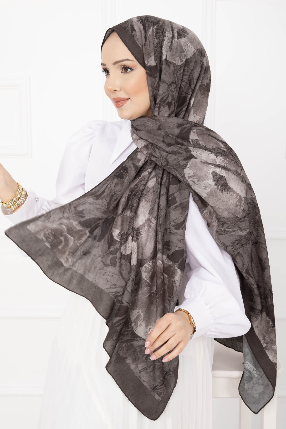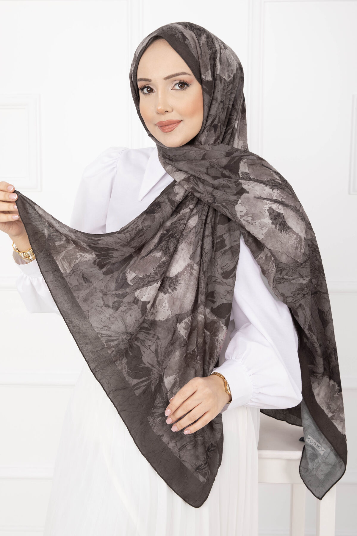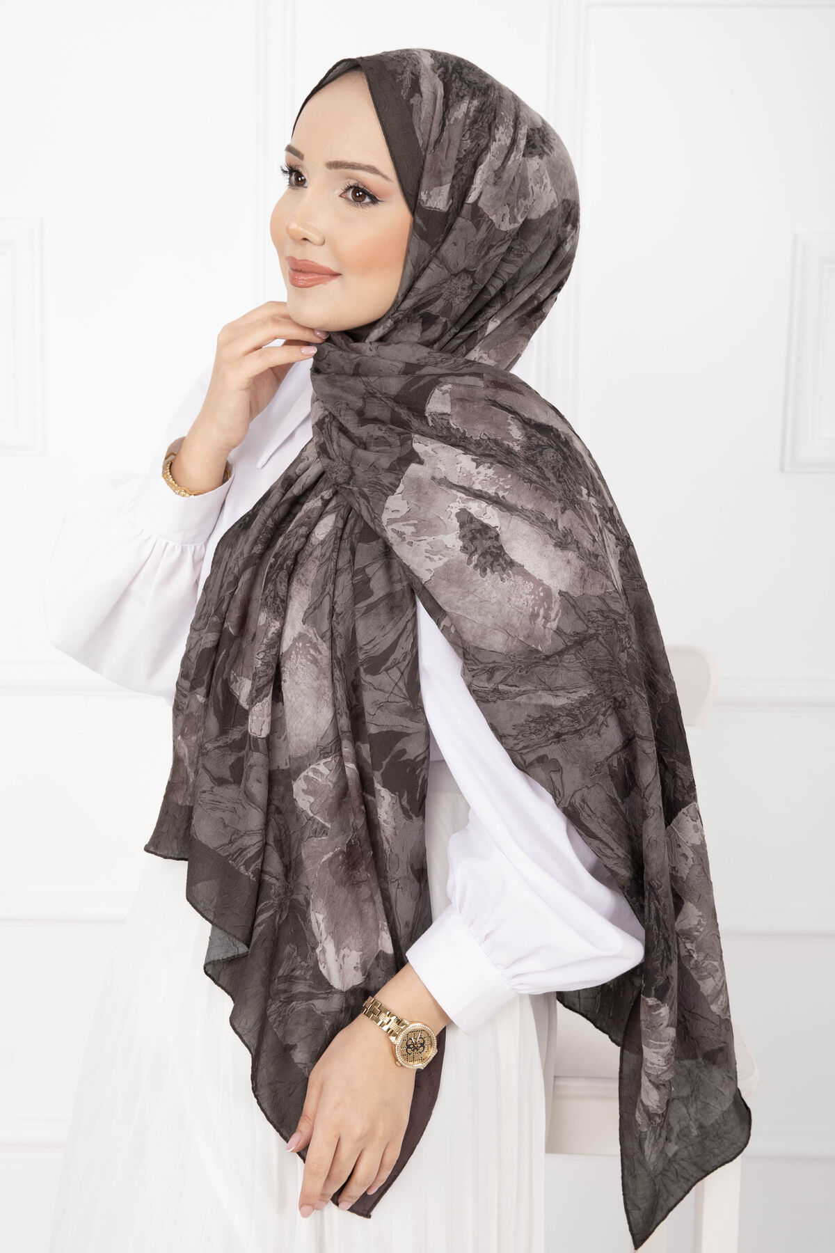 Çiçek Desen Bambu Şal Serisi Koyu Vizon