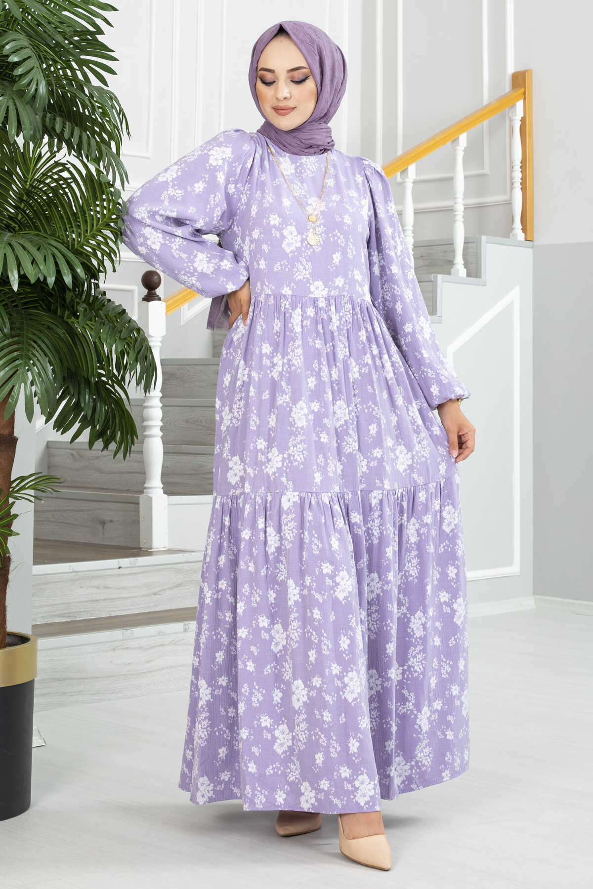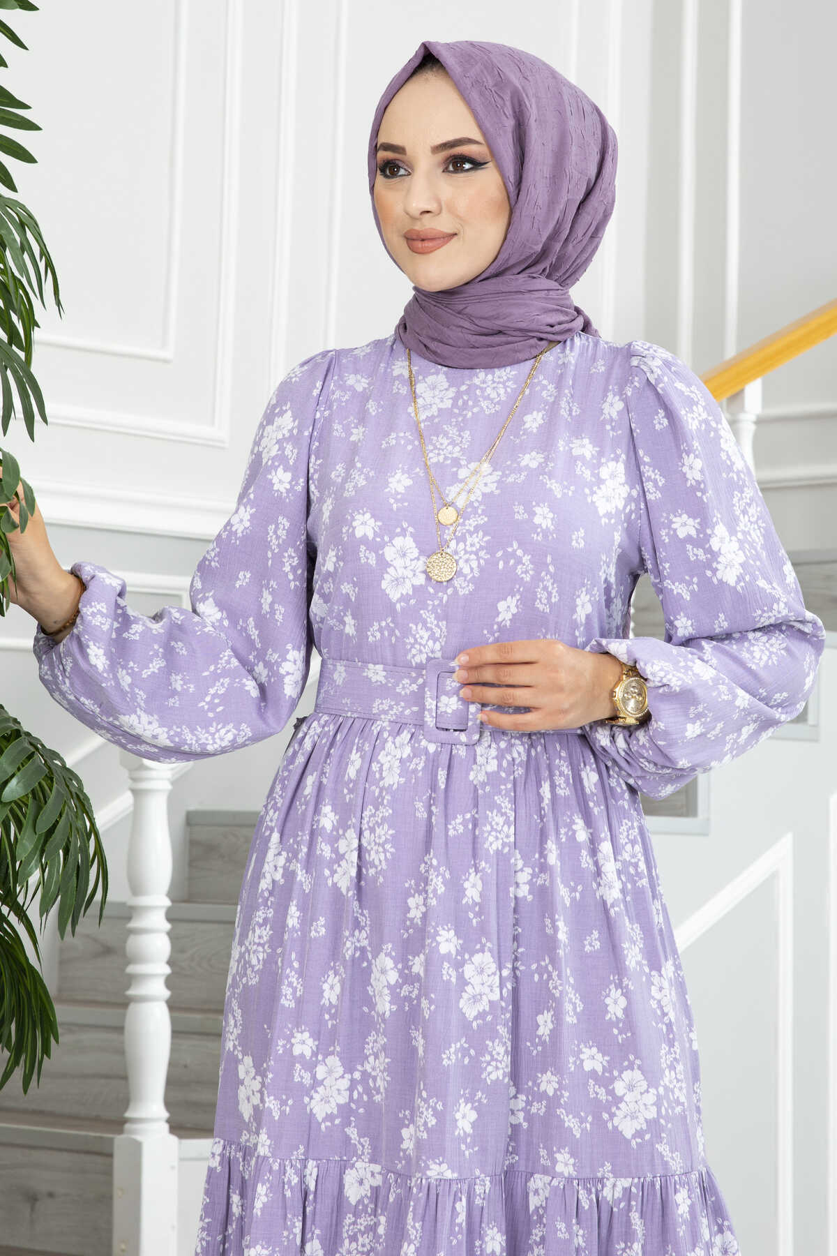 Adiva Çiçekli Tesettür Elbise Lila Yorumları
