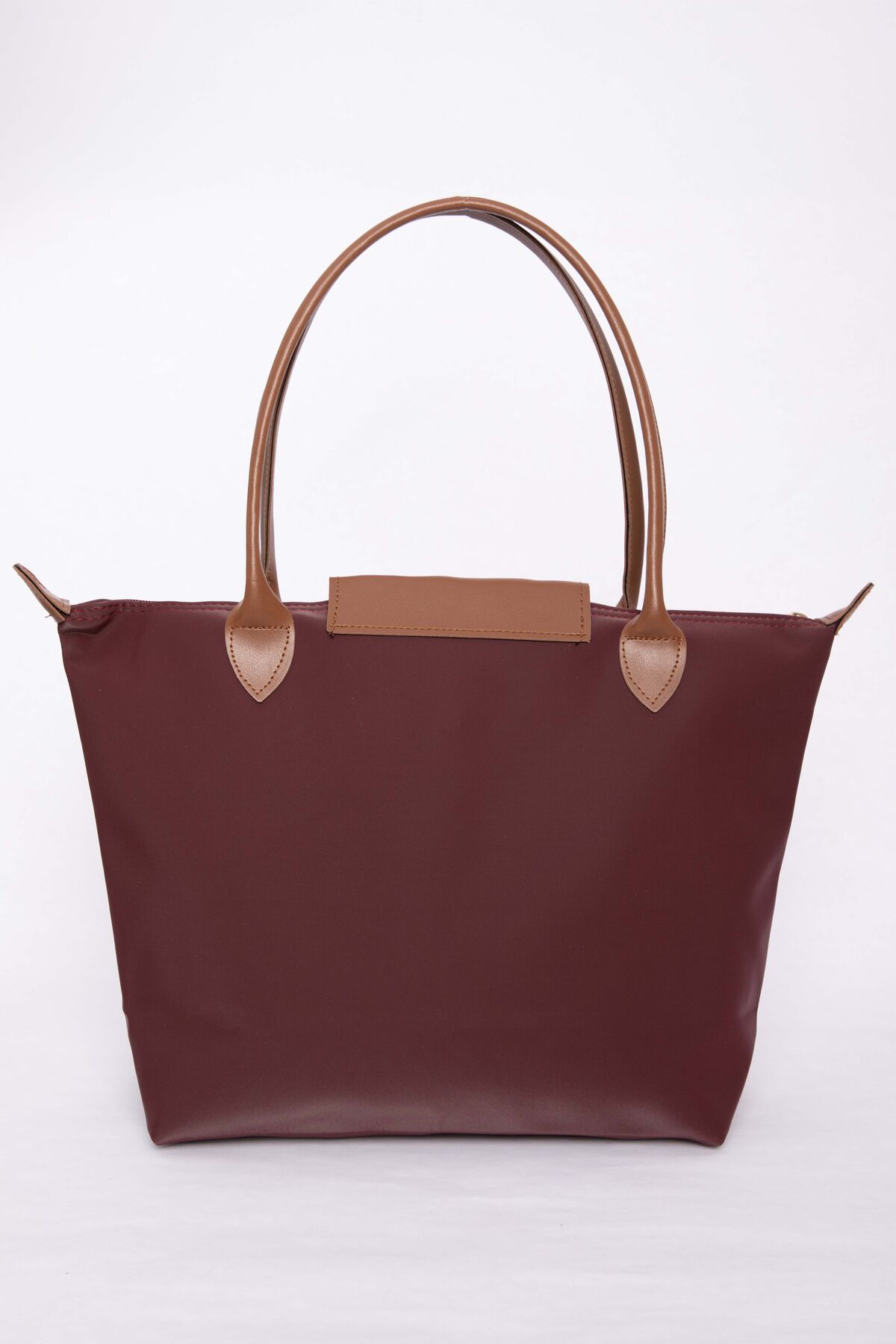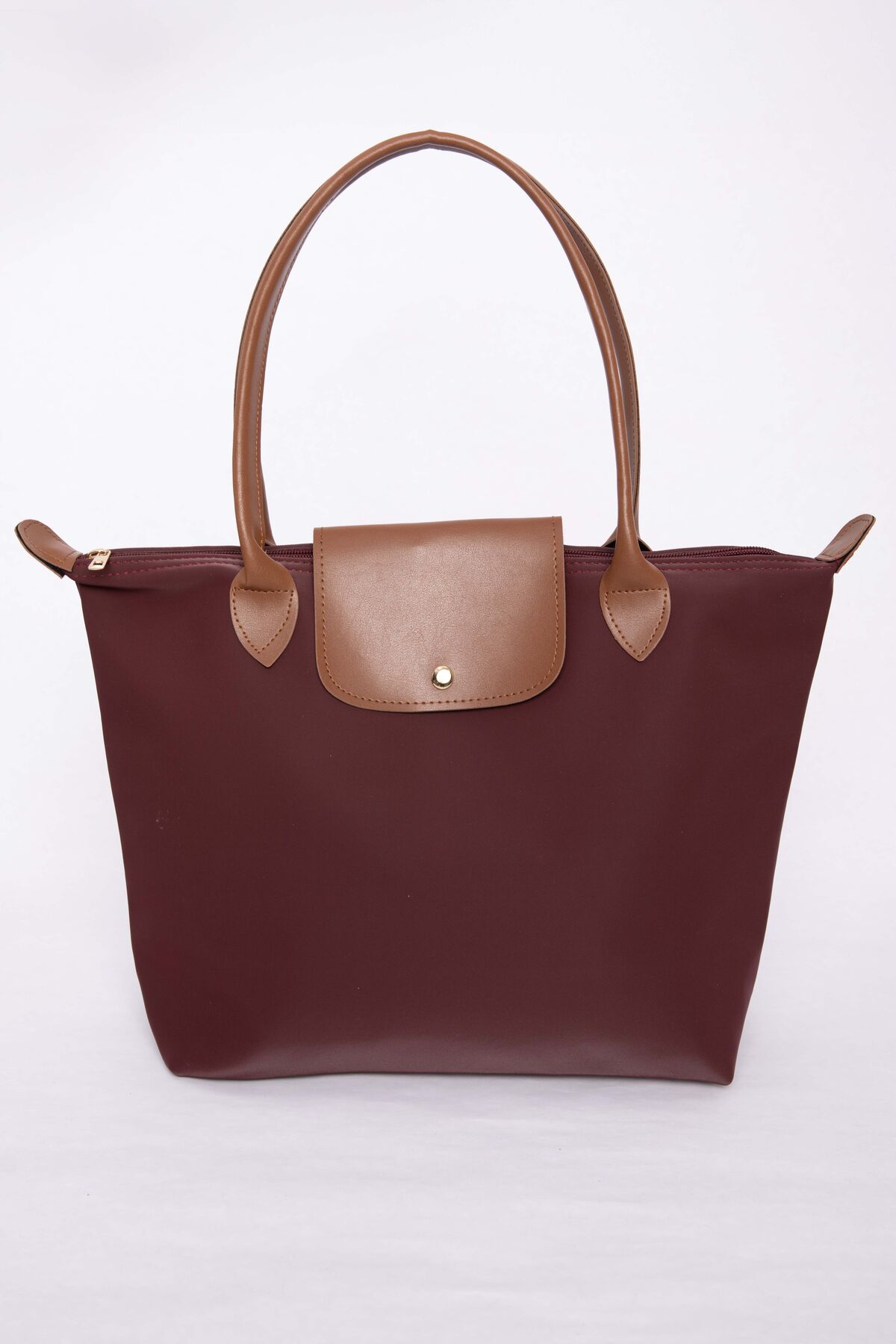 Çift Renkli Deri Kapaklı El & Omuz Çantası Bordo