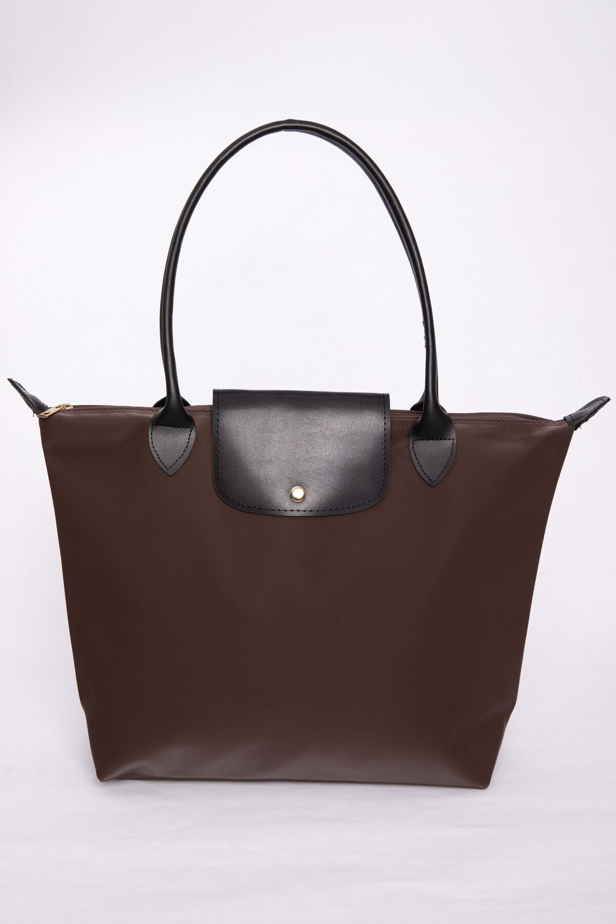 Çift Renkli Deri Kapaklı El & Omuz Çantası Kahve
