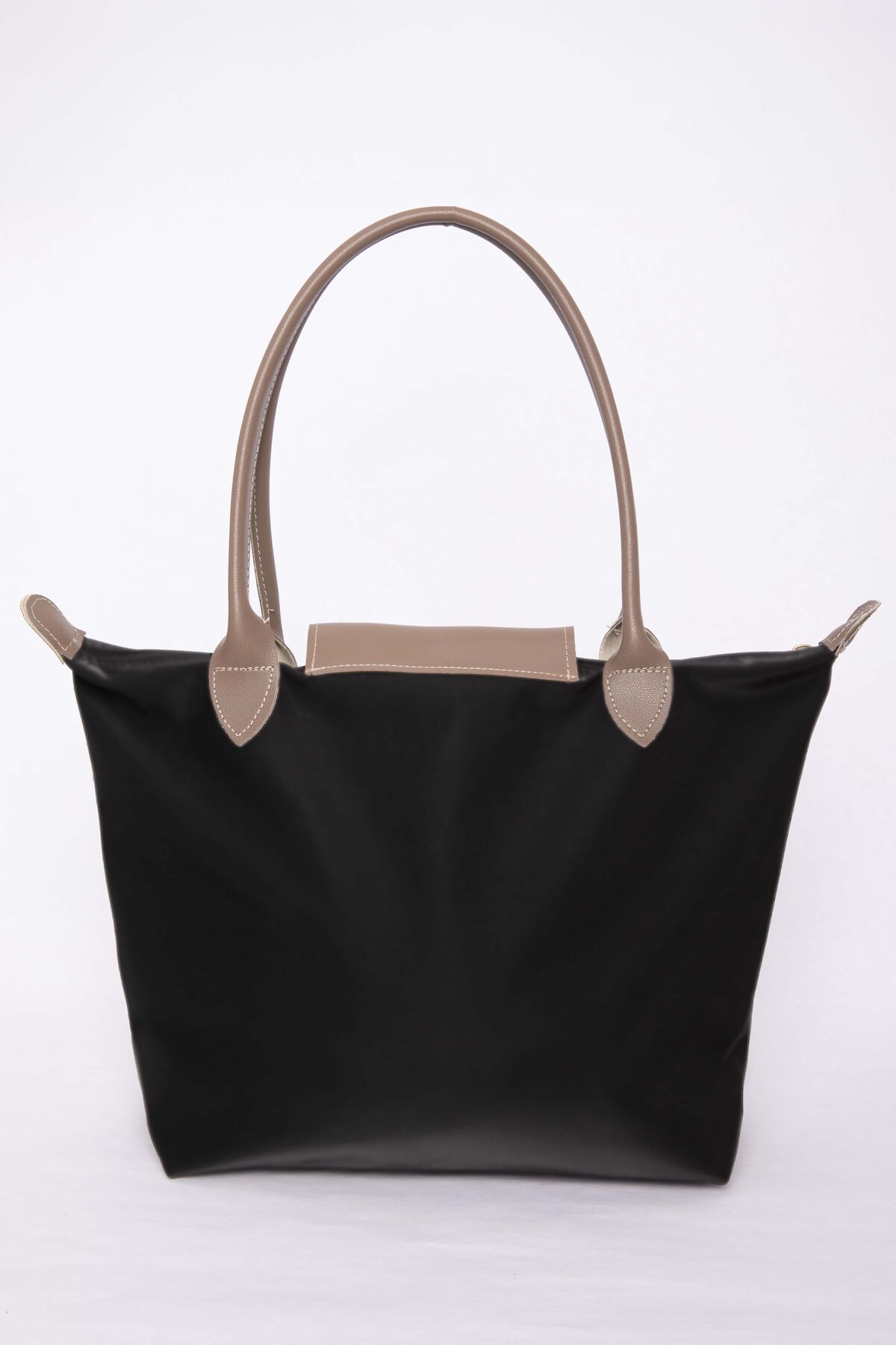 Çift Renkli Deri Kapaklı El & Omuz Çantası Siyah