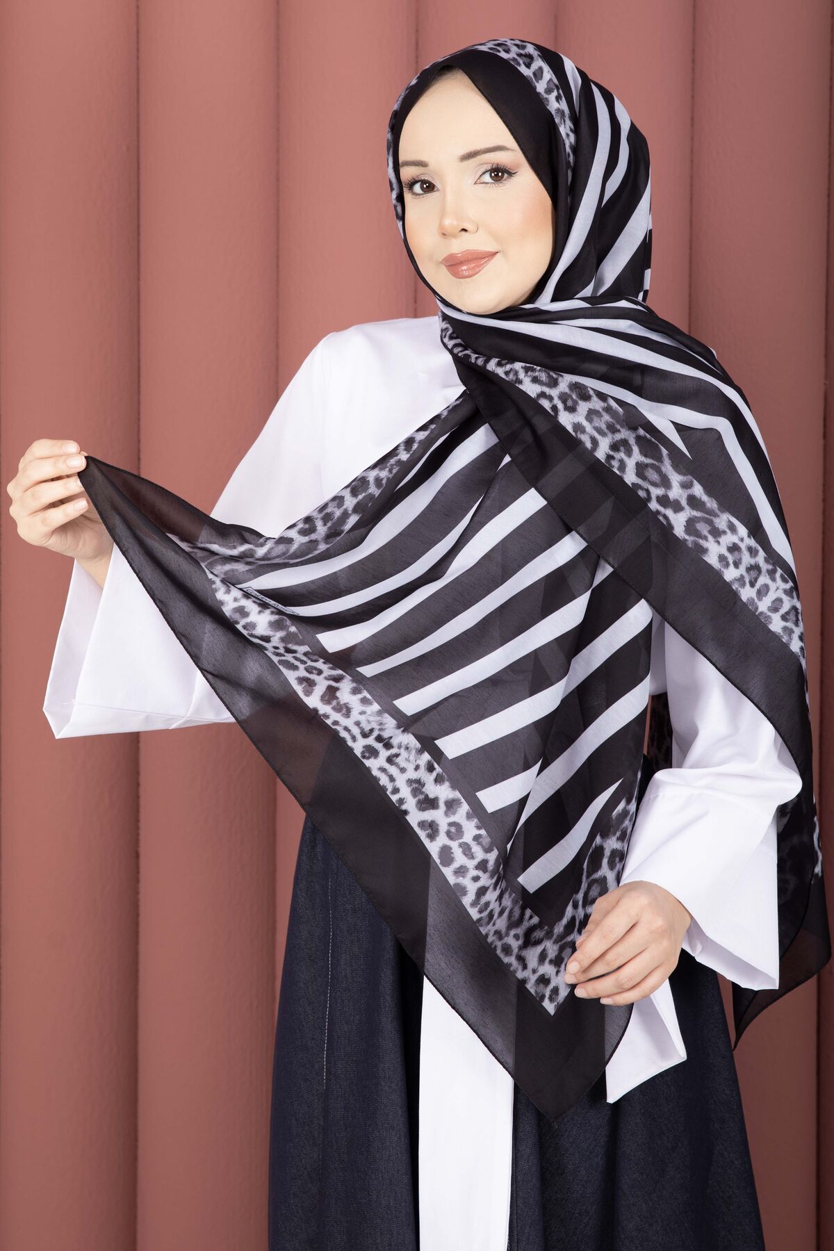 Modern çizgi detayları ile leopar desenin güçlü duruşunu bir araya getiren Çizgi Desen Leopar Şal Serisi, kombinlerinize iddialı ve şık bir hava katar. Günlük kullanımdan özel davetlere kadar farklı tarzlarla kolayca uyum sağlar. Hafif ve rahat yapısı sayesinde gün boyu konforlu bir kullanım sunar.