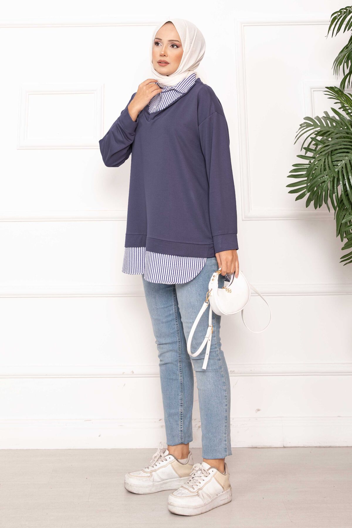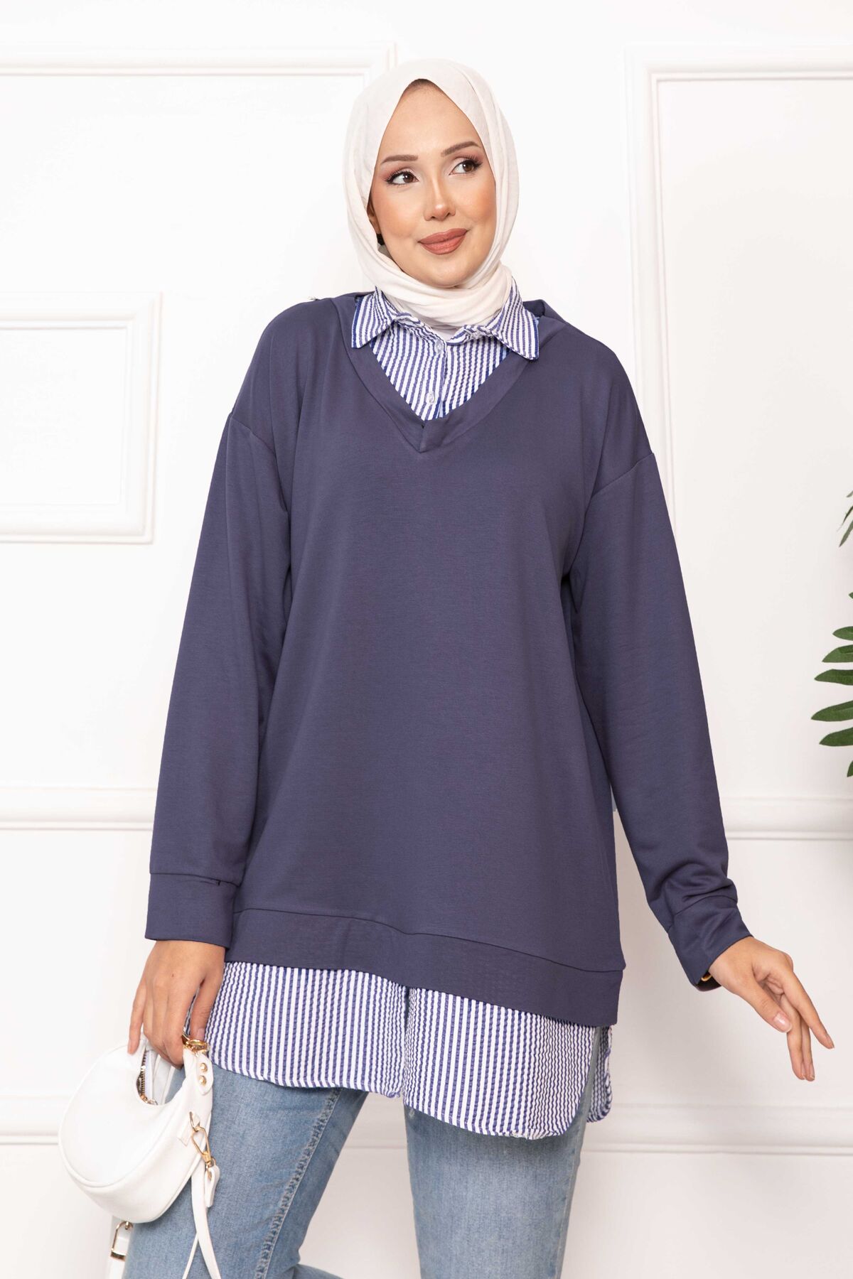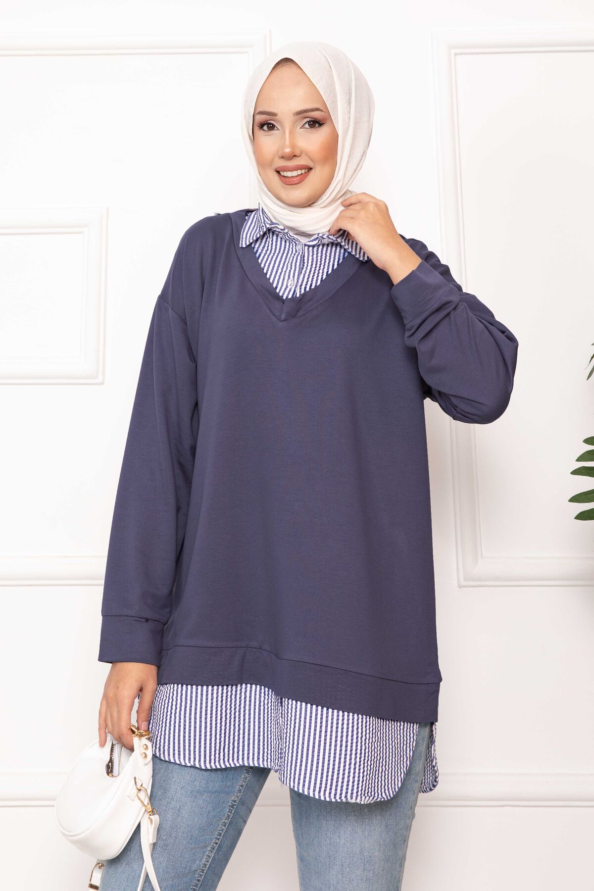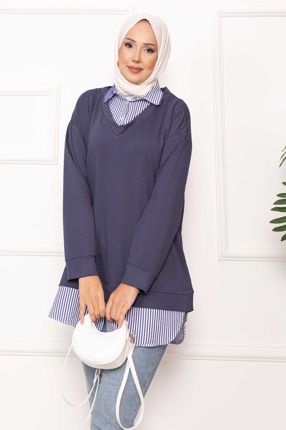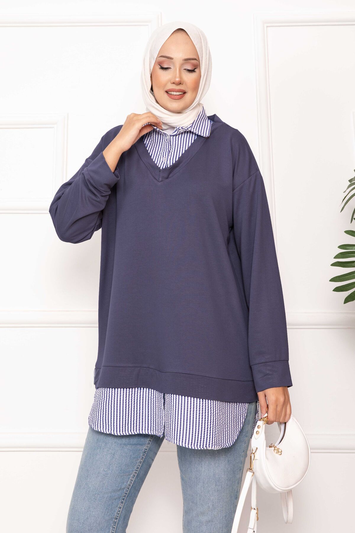 Çizgili Gömlek Garnili Tunik Gri Yorumları