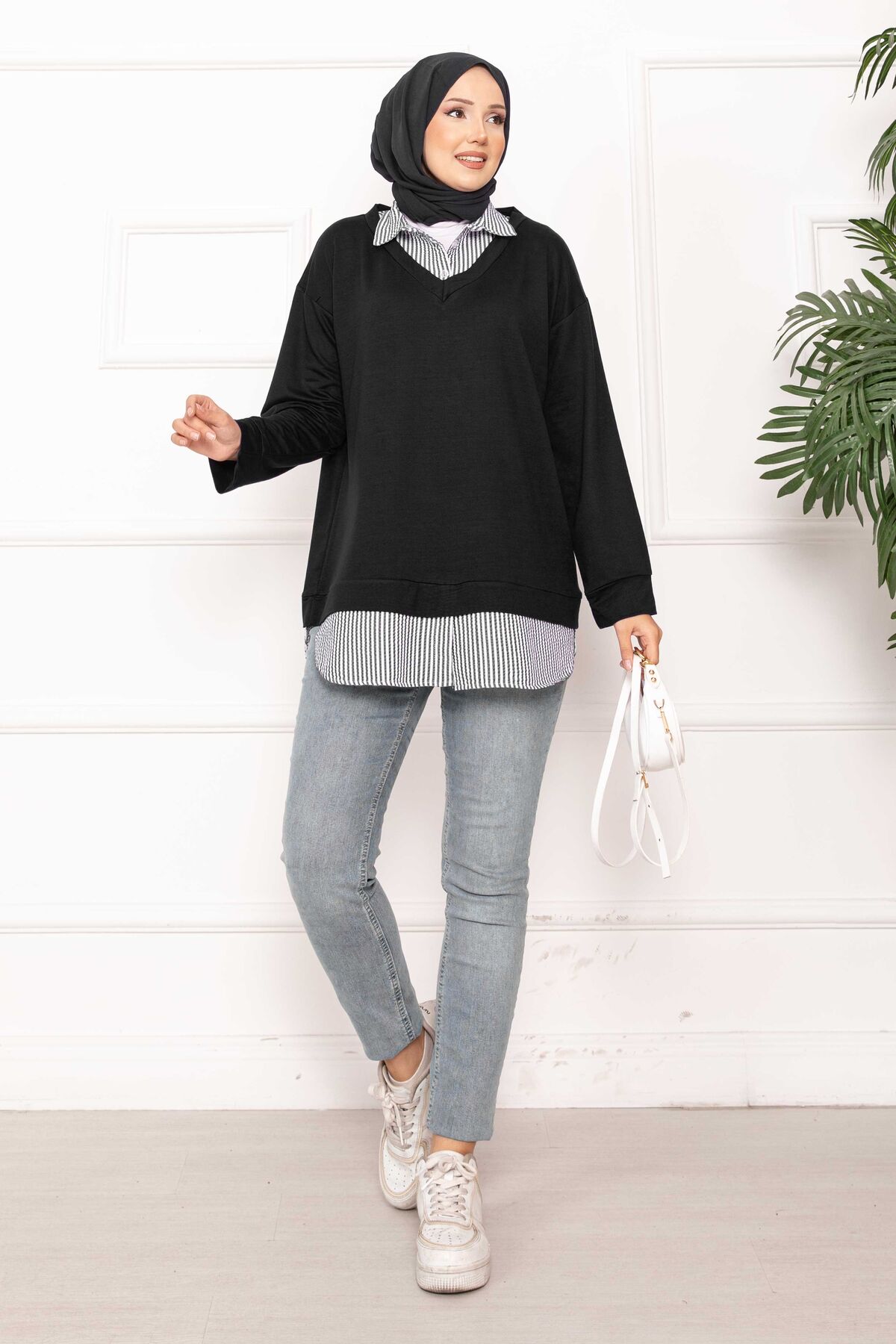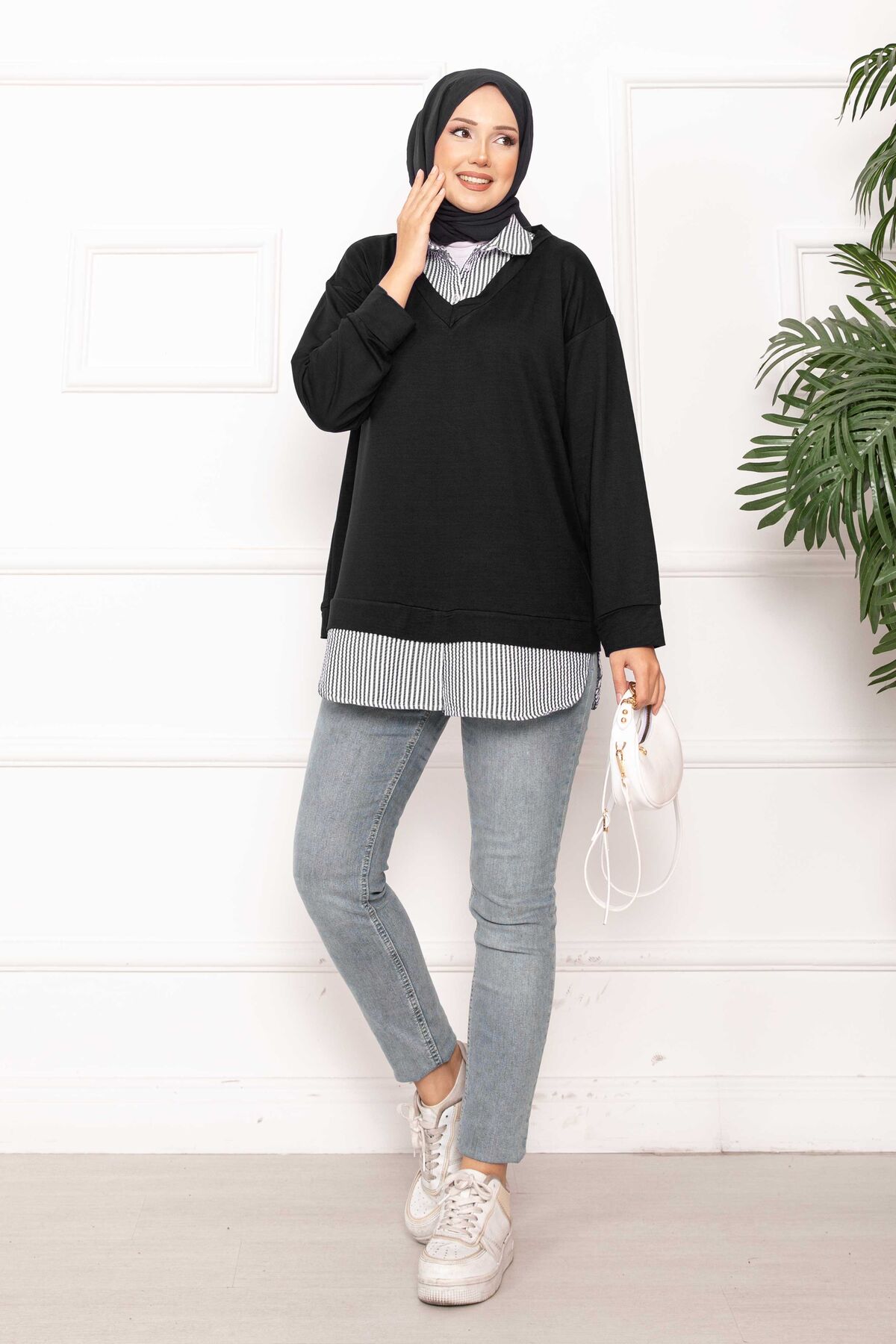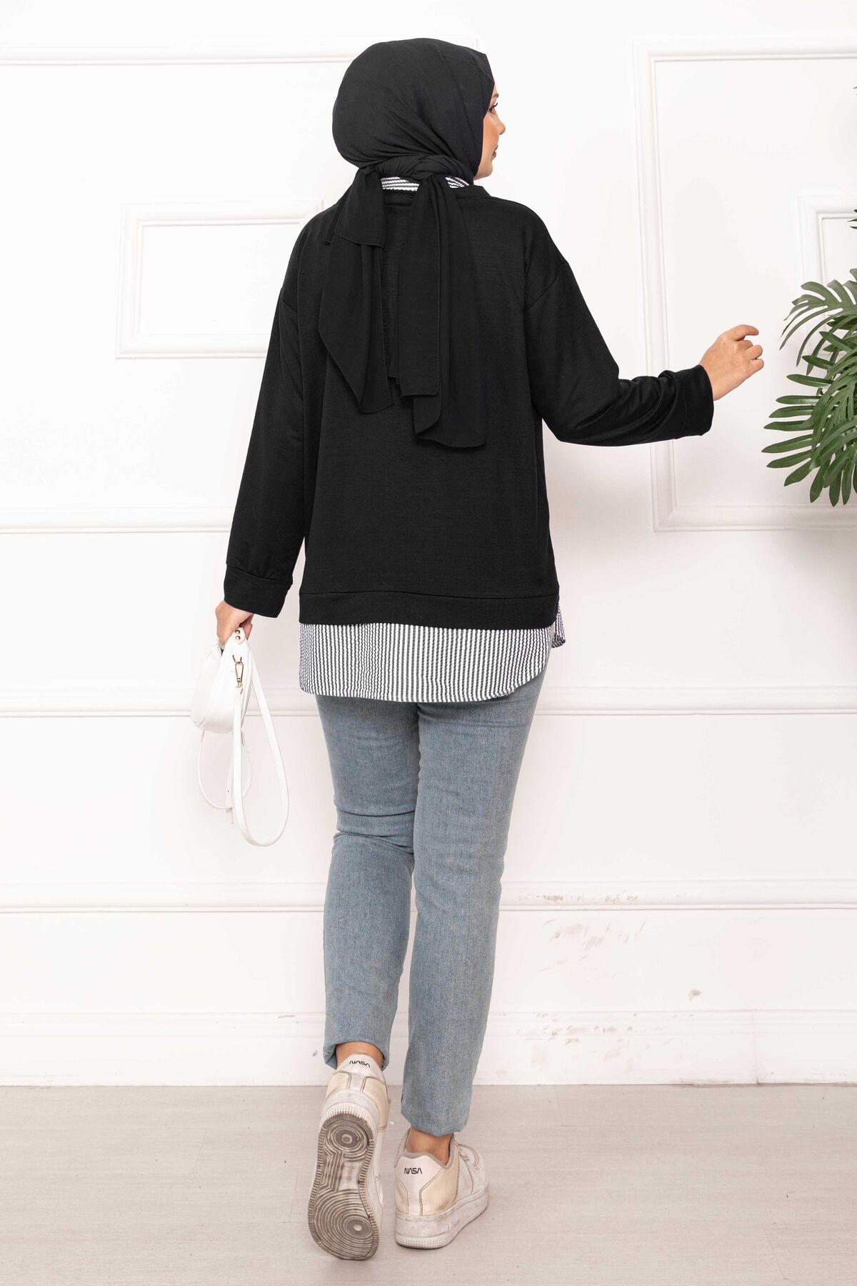 Çizgili Gömlek Garnili Tunik Siyah Yorumları