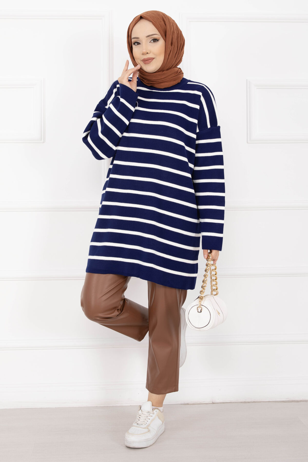 Soğuk kış günlerinde hem sıcak kalmak hem de şıklığından ödün vermek istemeyenler için tasarlanan Çizgili Oversize Triko Kazak, rahat kesimi ve modern çizgi deseniyle stilinizi tamamlar. Kalın ve yumuşak dokulu triko kumaşı sayesinde soğuk havalarda sıcak tutarken, oversize kalıbı ile katmanlı kombinler için ideal bir kullanım sunar. Günlük hayattan hafta sonu kombinlerine kadar kış aylarında konforlu ve şık bir tercih olur.