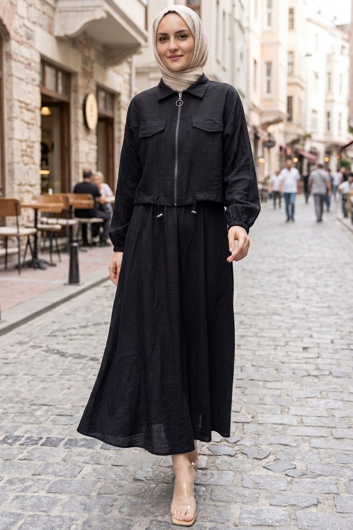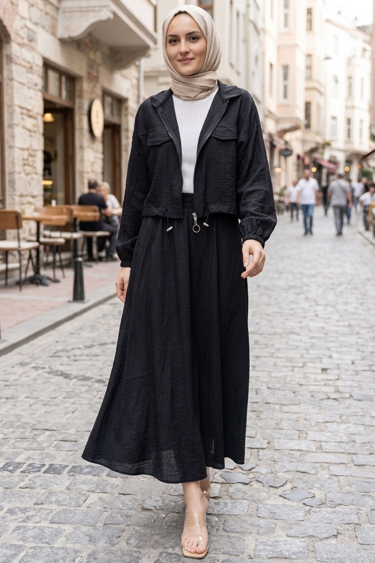Crop Ceket Etekli Spor Takım Siyah
