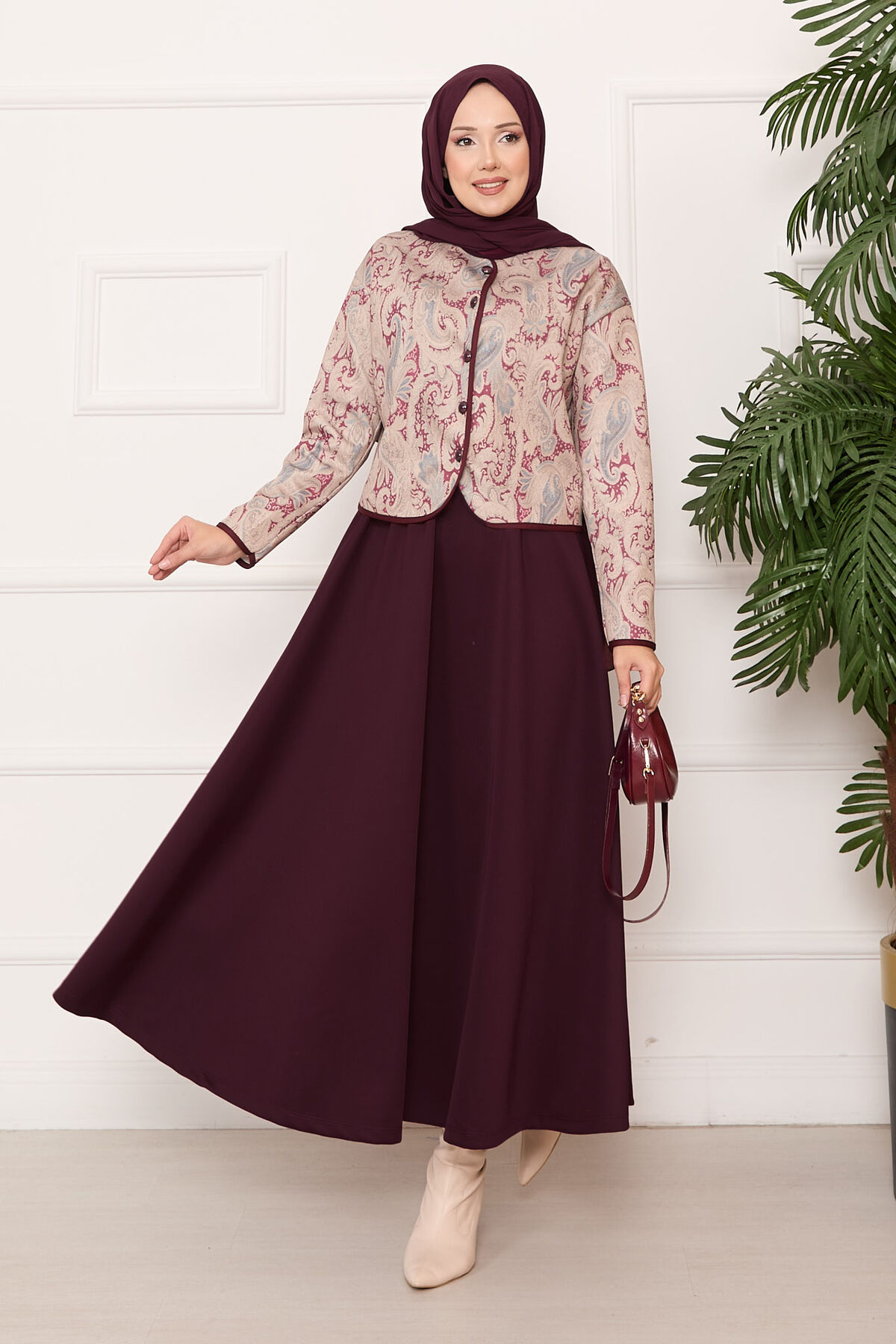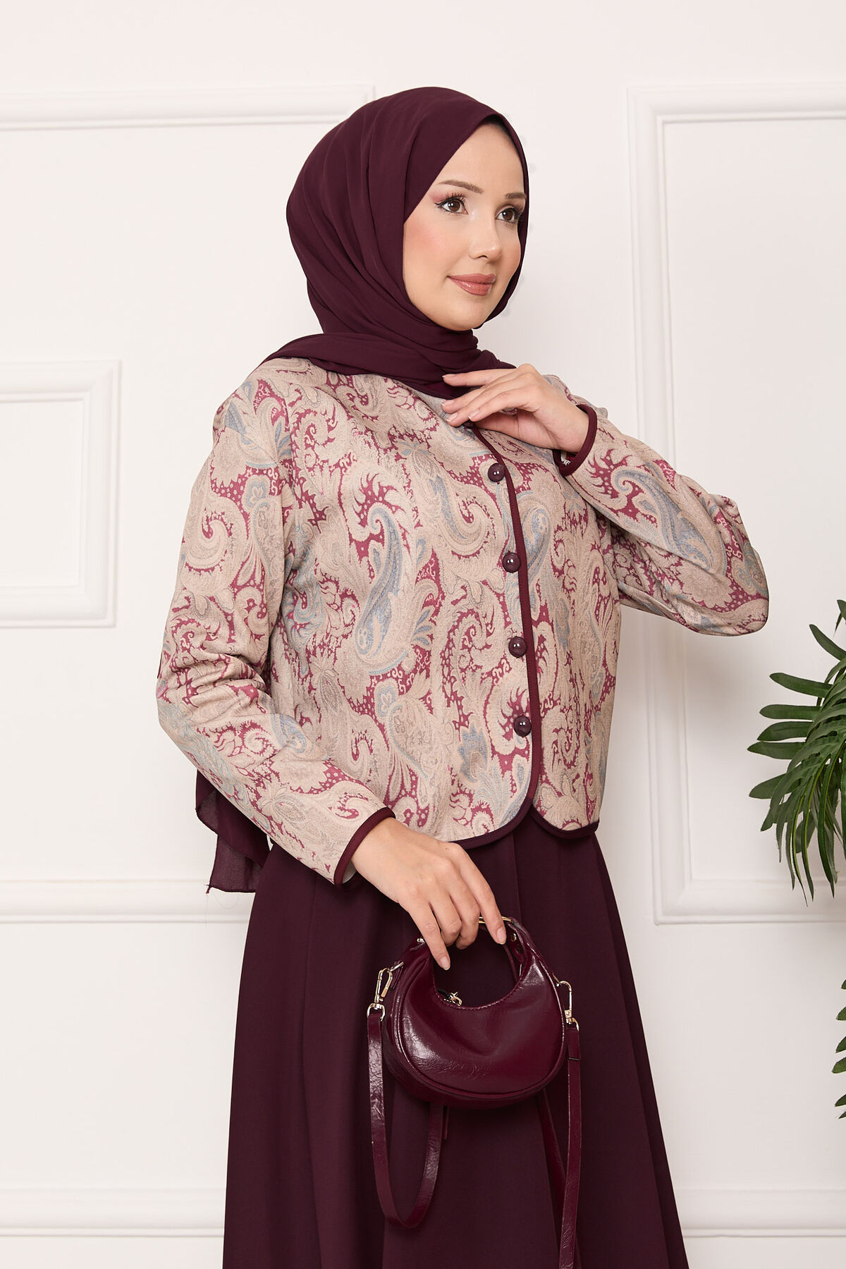 Croplu Ceket Etek Takım Bordo