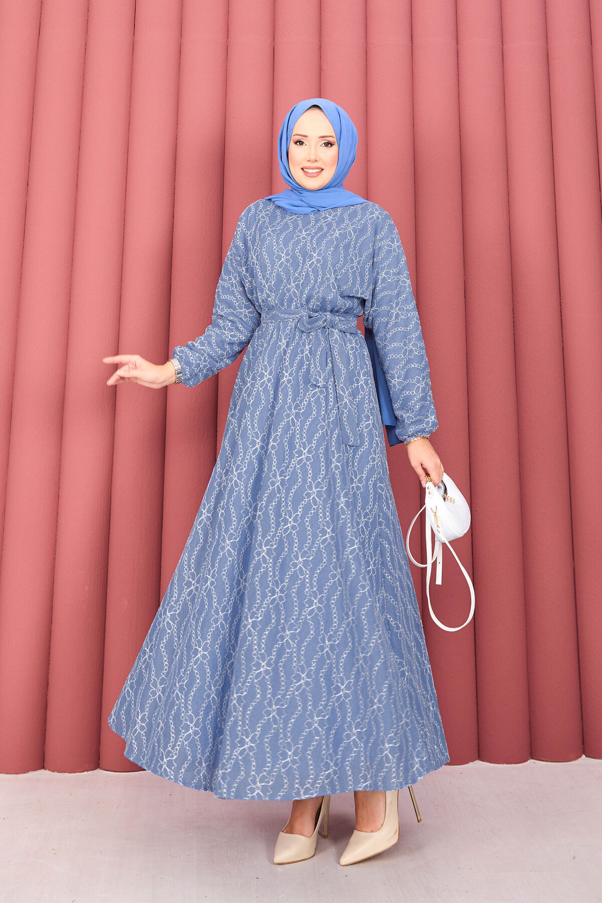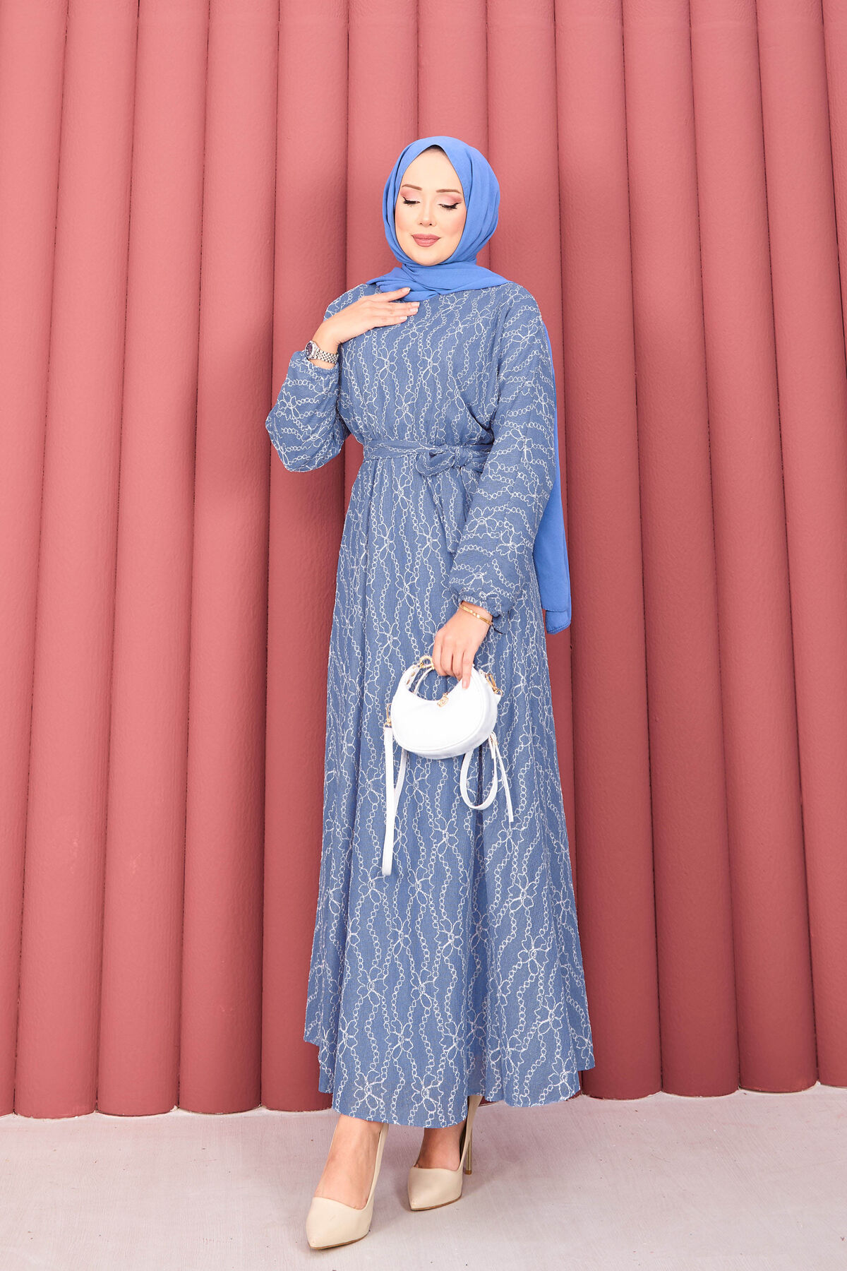 Dantel Dokulu Seyyar Kuşaklı Tesettür Elbise İndigo Yorumları