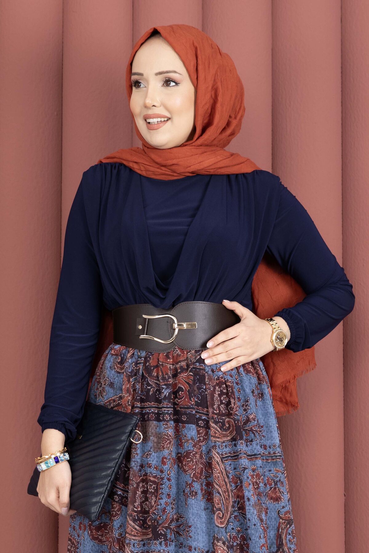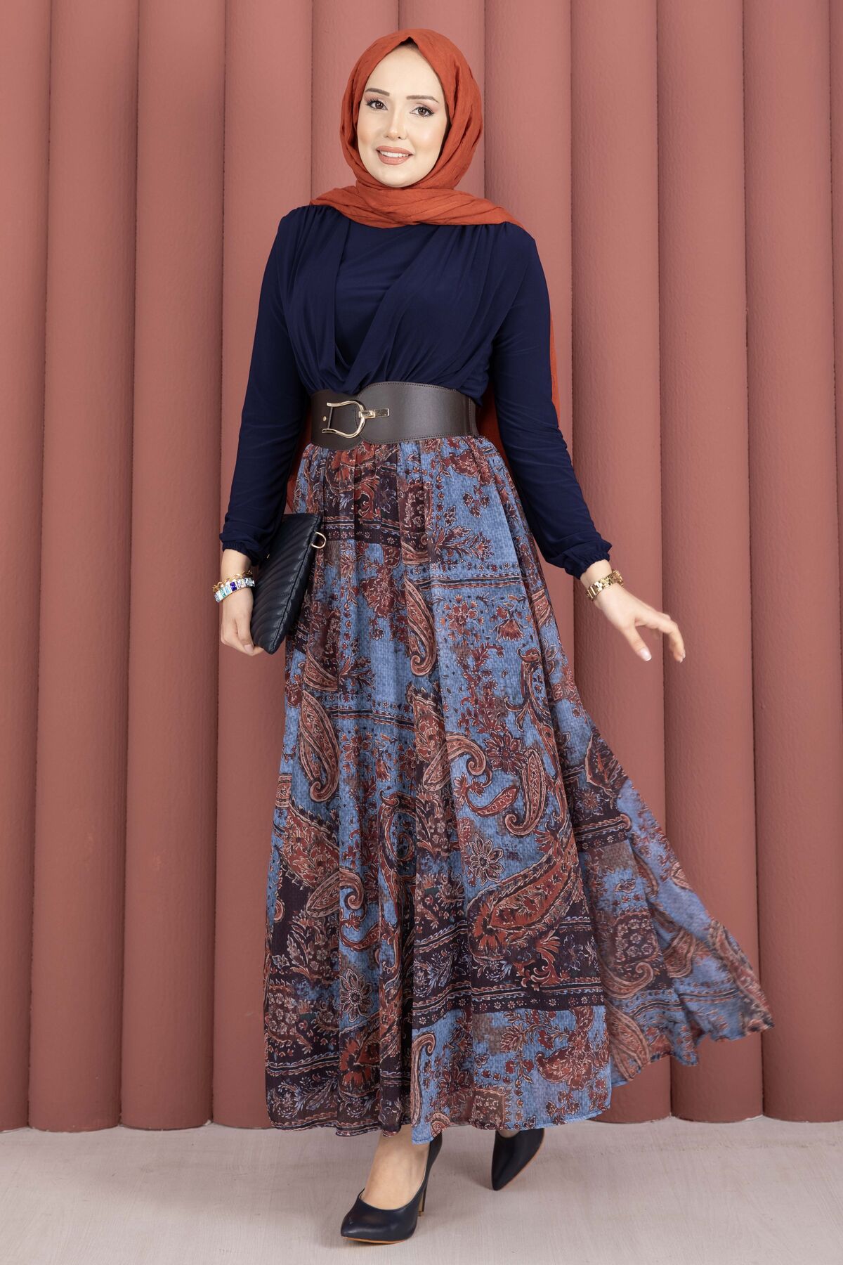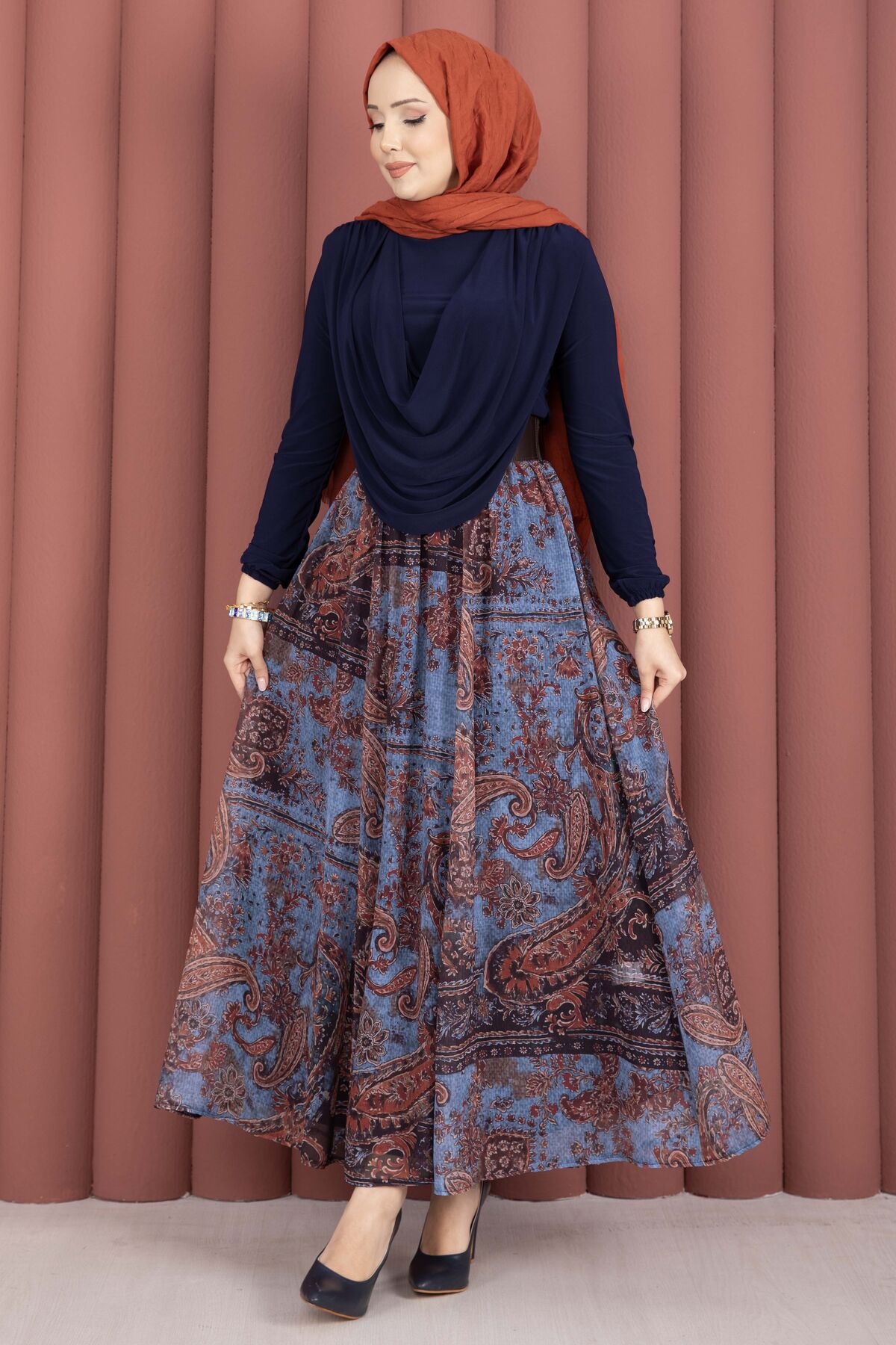 - Etek: Şal desenli şifon, beli lastikli, 97 cm boy