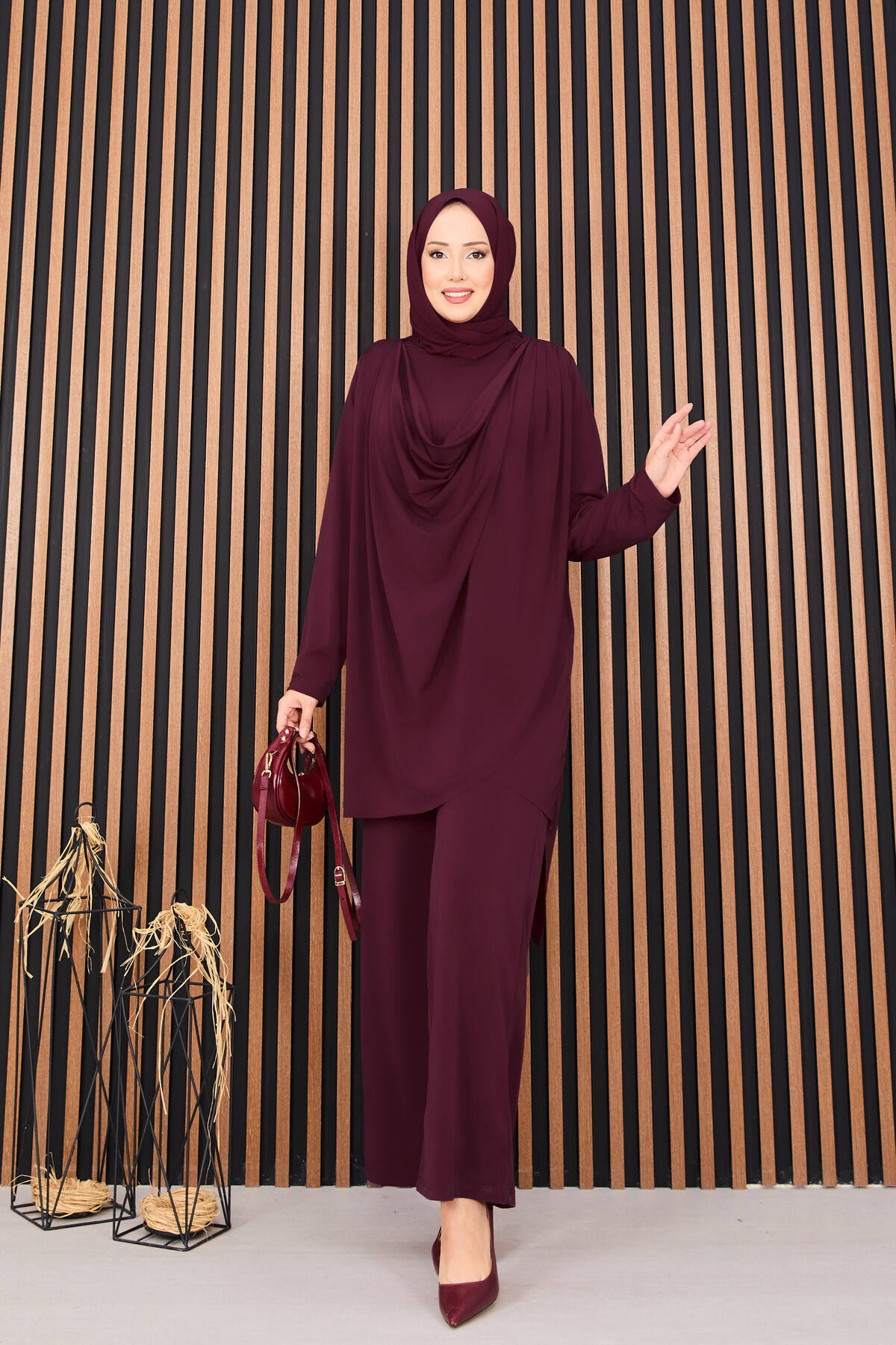 Degaje Dökümlü Sandy Tesettür İkili Takım Bordo Yorumları