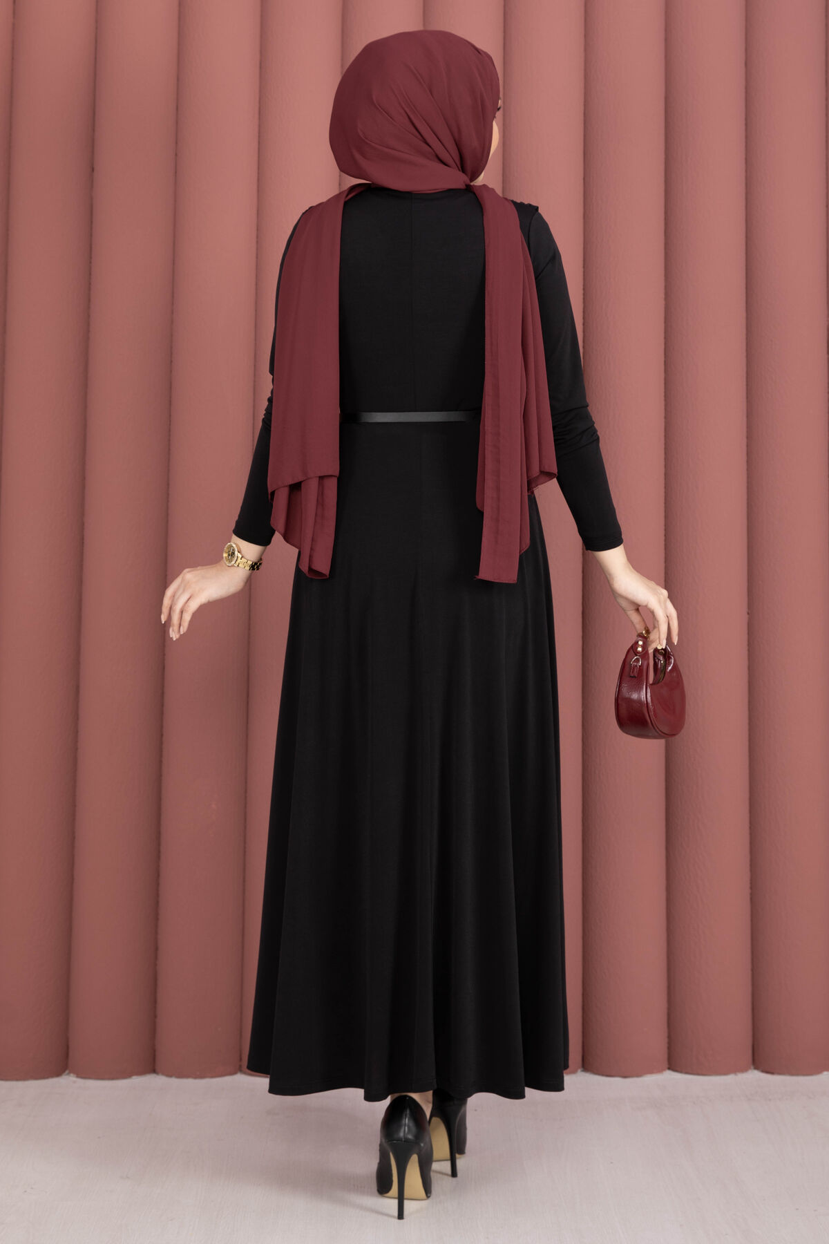 Degaje Yaka Beli Kemerli Sandy Elbise Siyah Yorumları