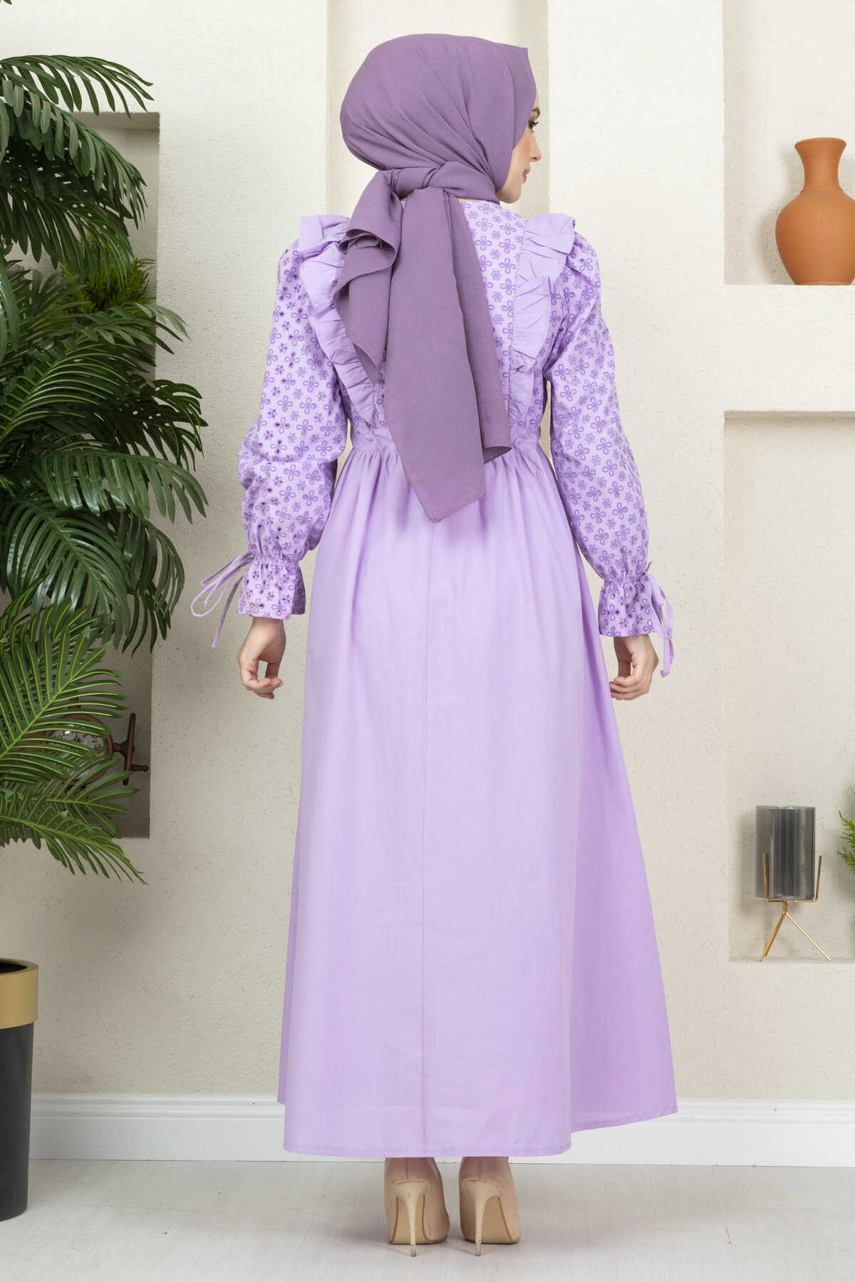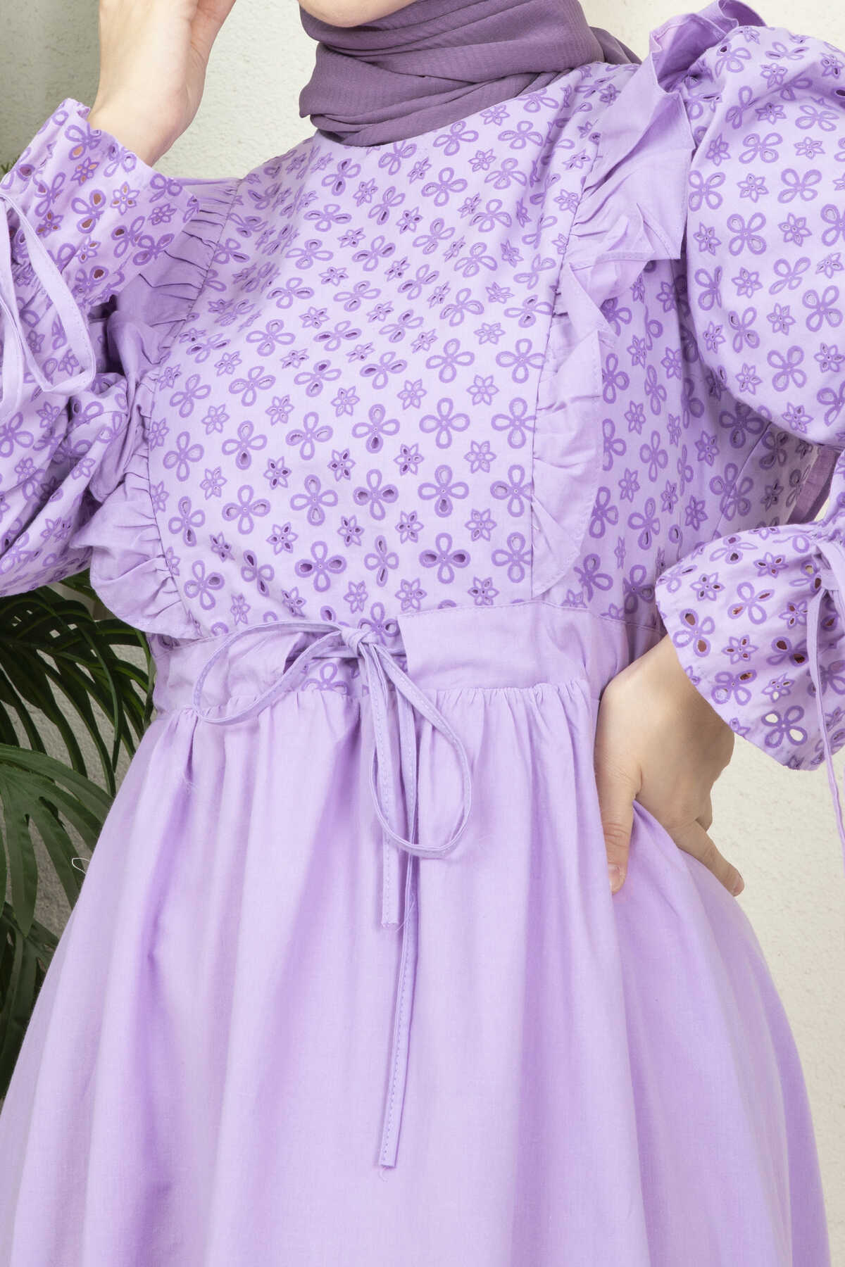 Fisto Tünel Kemerli Tesettür Elbise Lila