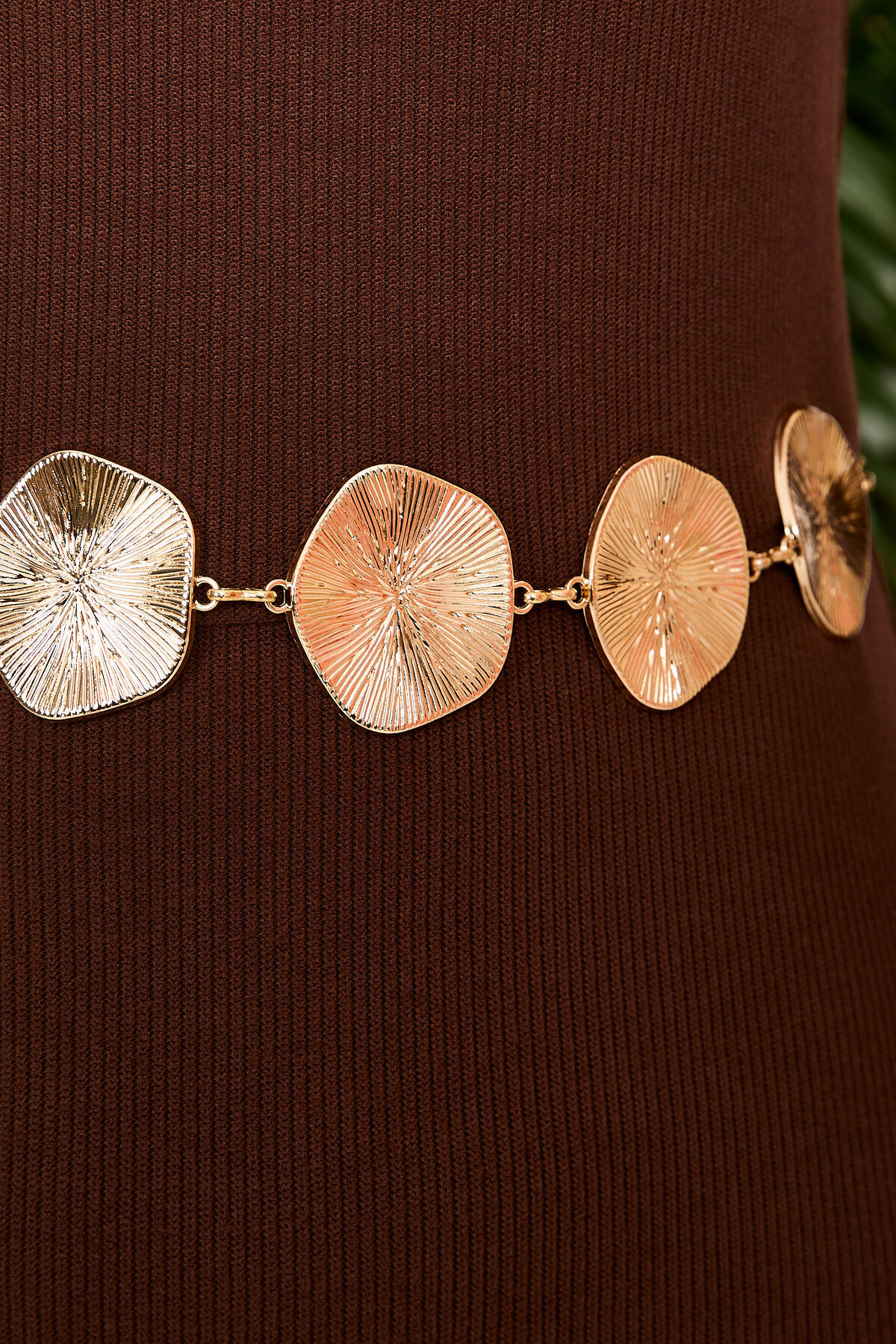 - Ürün deniz kabuğu desenli zincir kemer gold renk.
