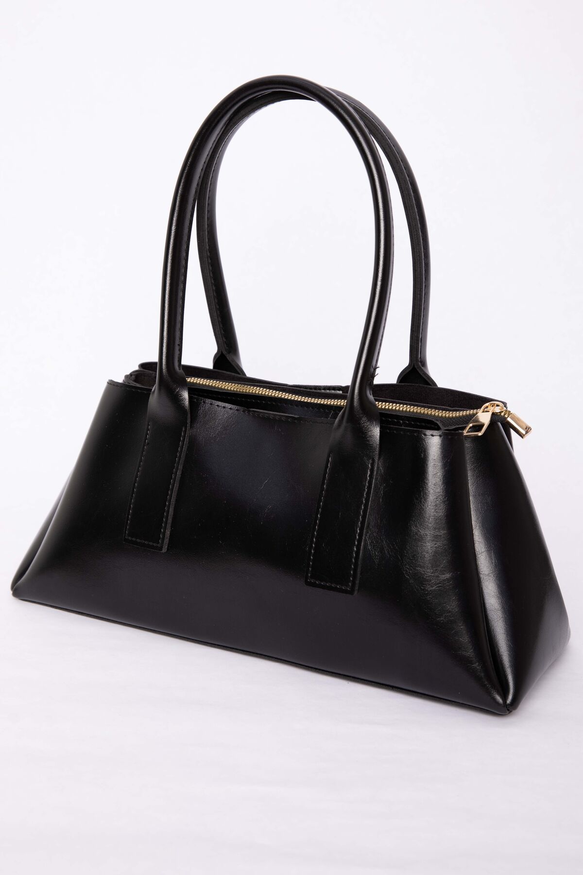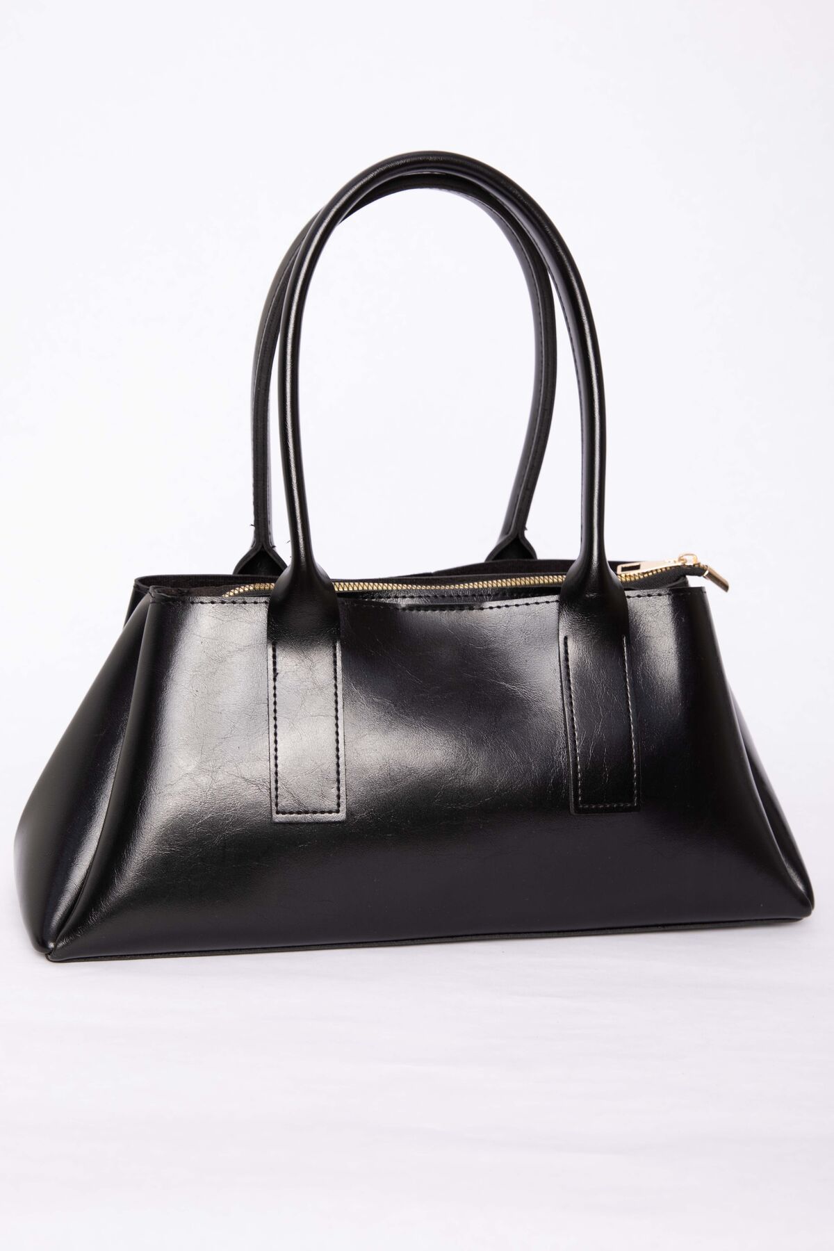 Deri Görünümlü Fermuarlı El & Omuz Çantası Siyah