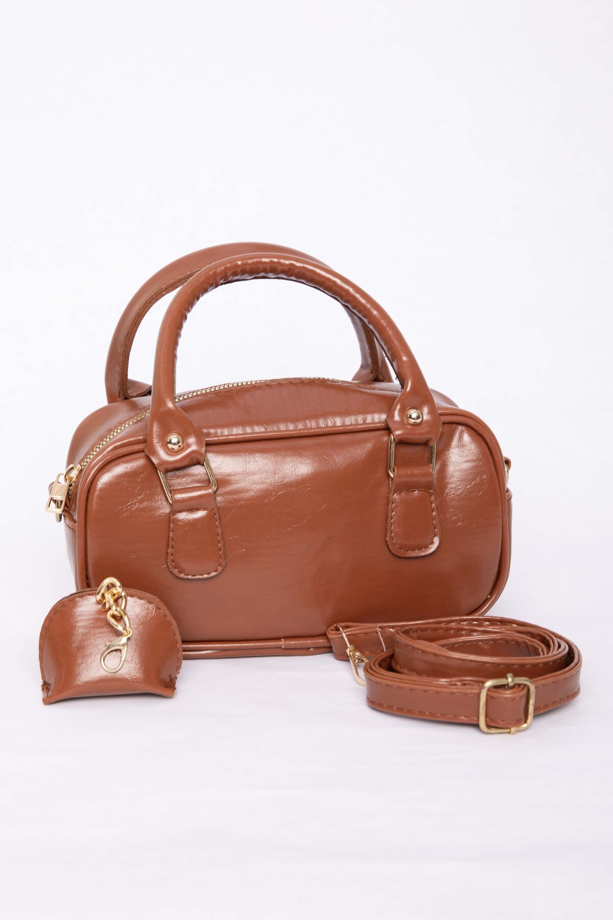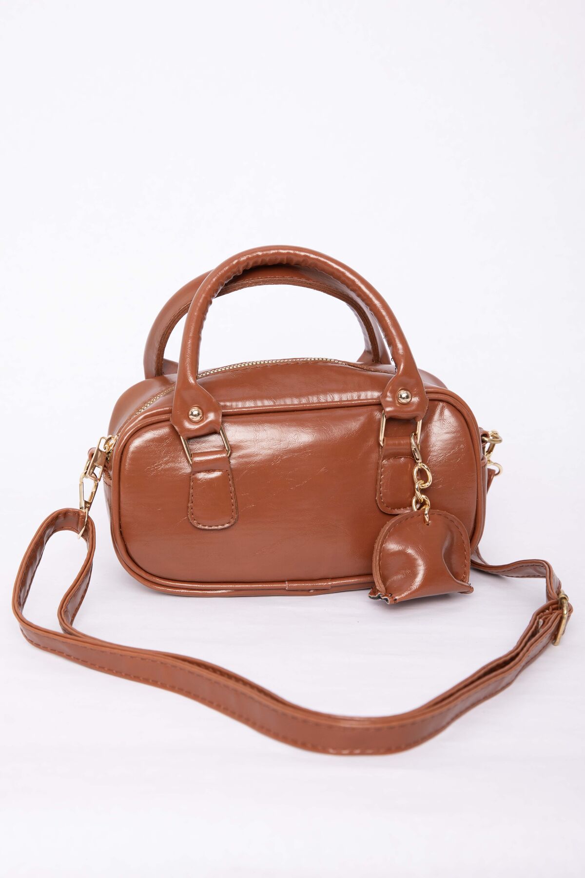 Deri Görünümlü Fermuarlı El ve Omuz Çantası