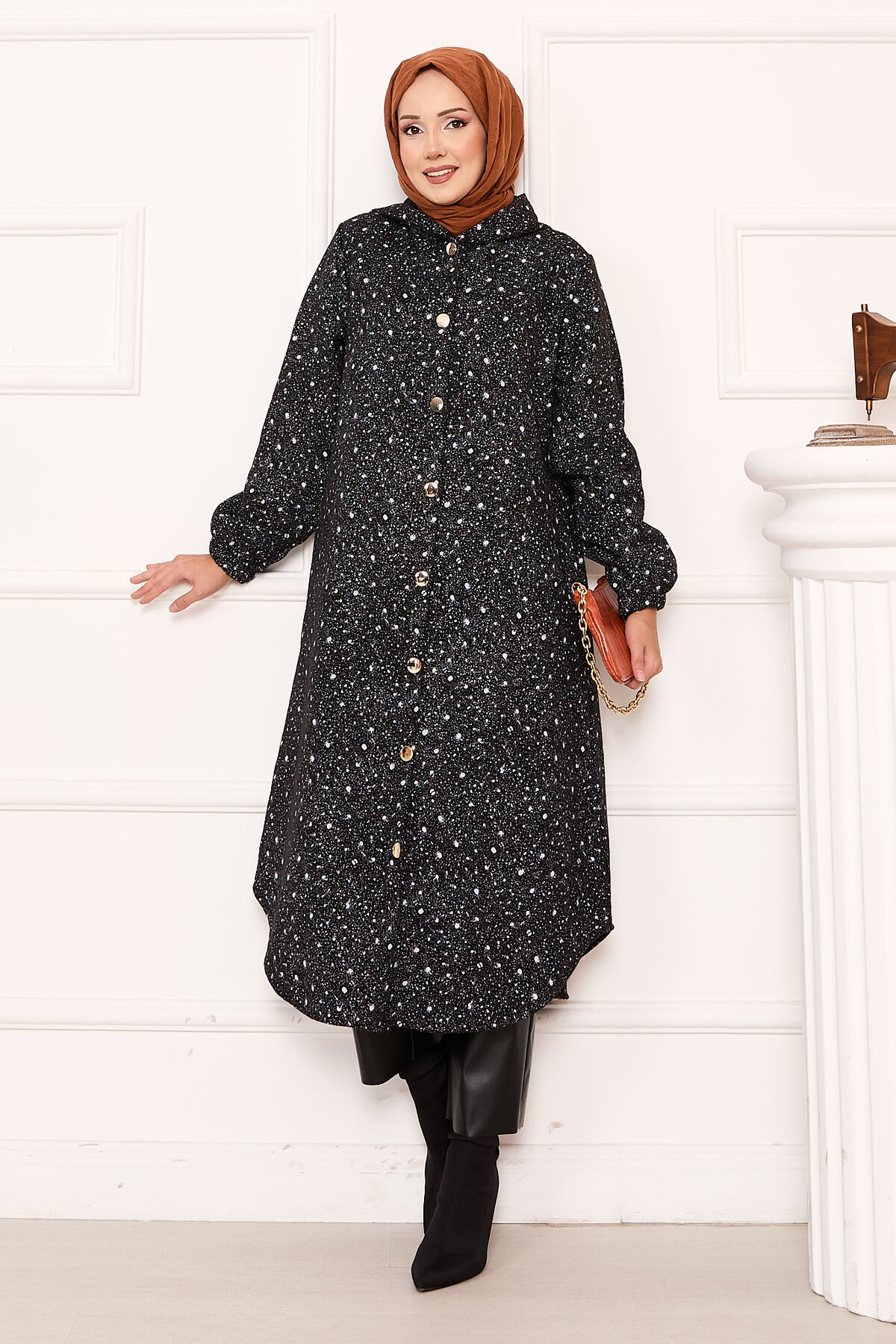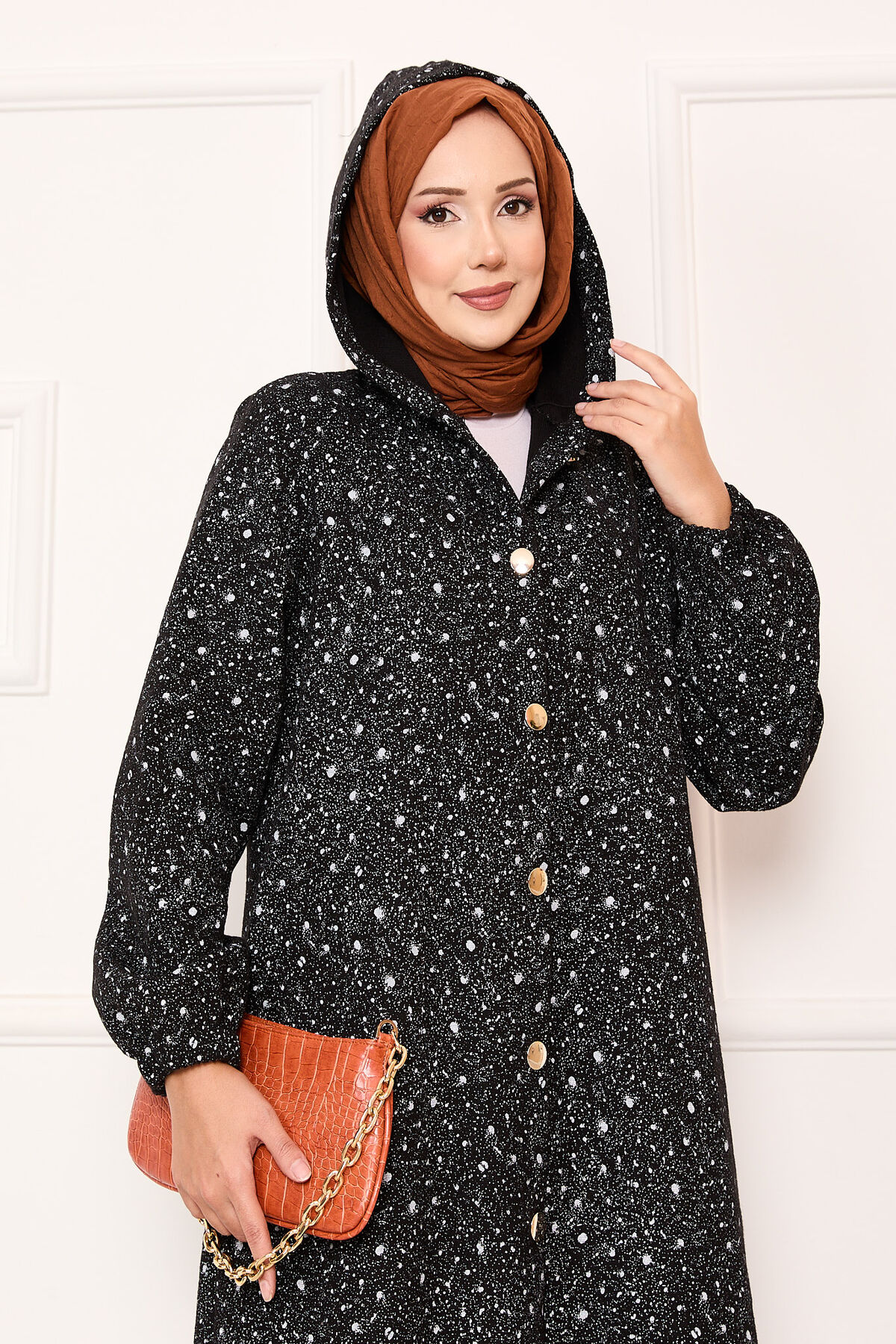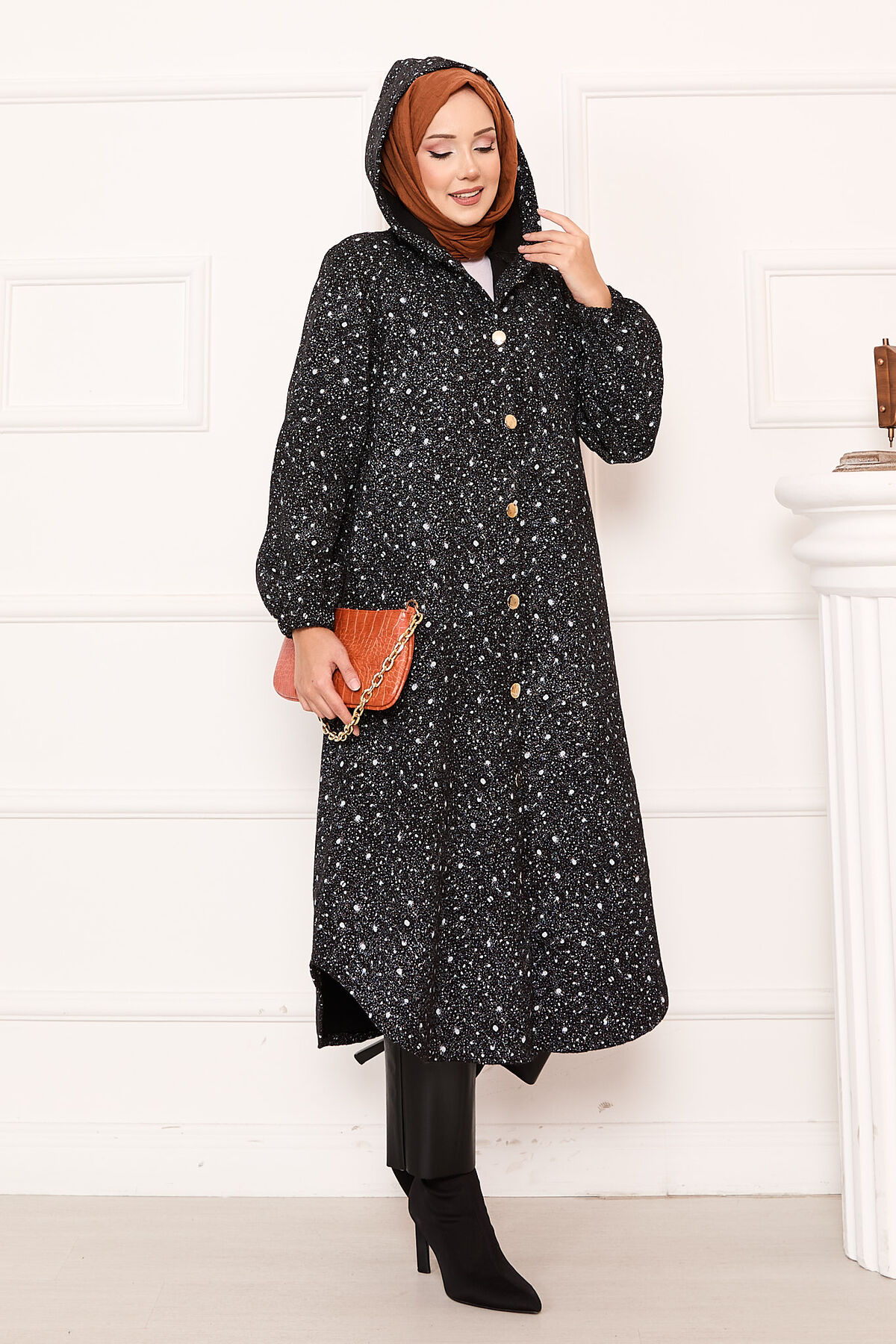 - Ürün sonbahar-kış içindir. Boydan düğmeli desenli ve kapüşonlu yandan cepli kaşe kap ( Astarsızdır.)