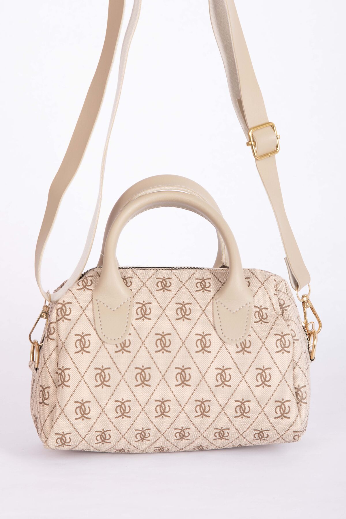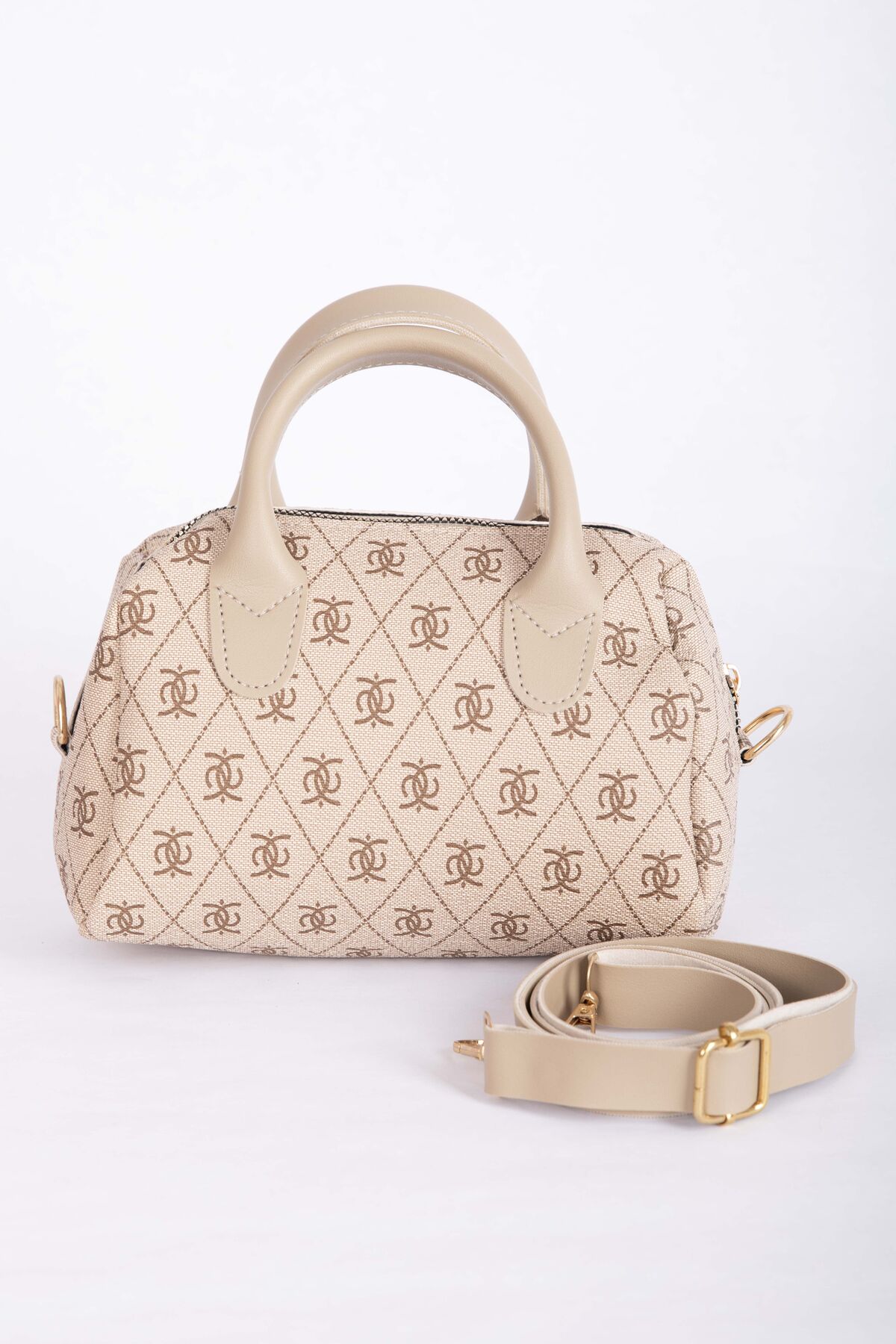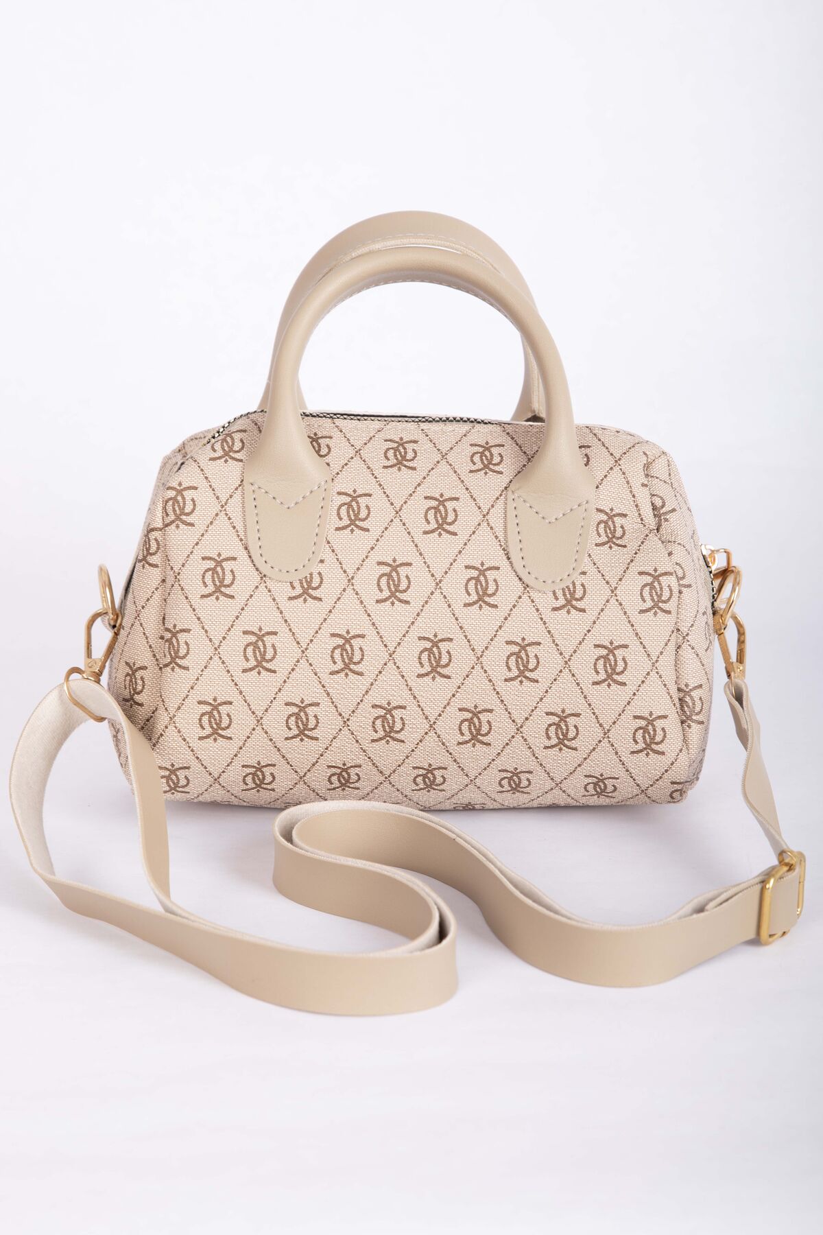 Desenli Mini El & Omuz Çantası Vizon