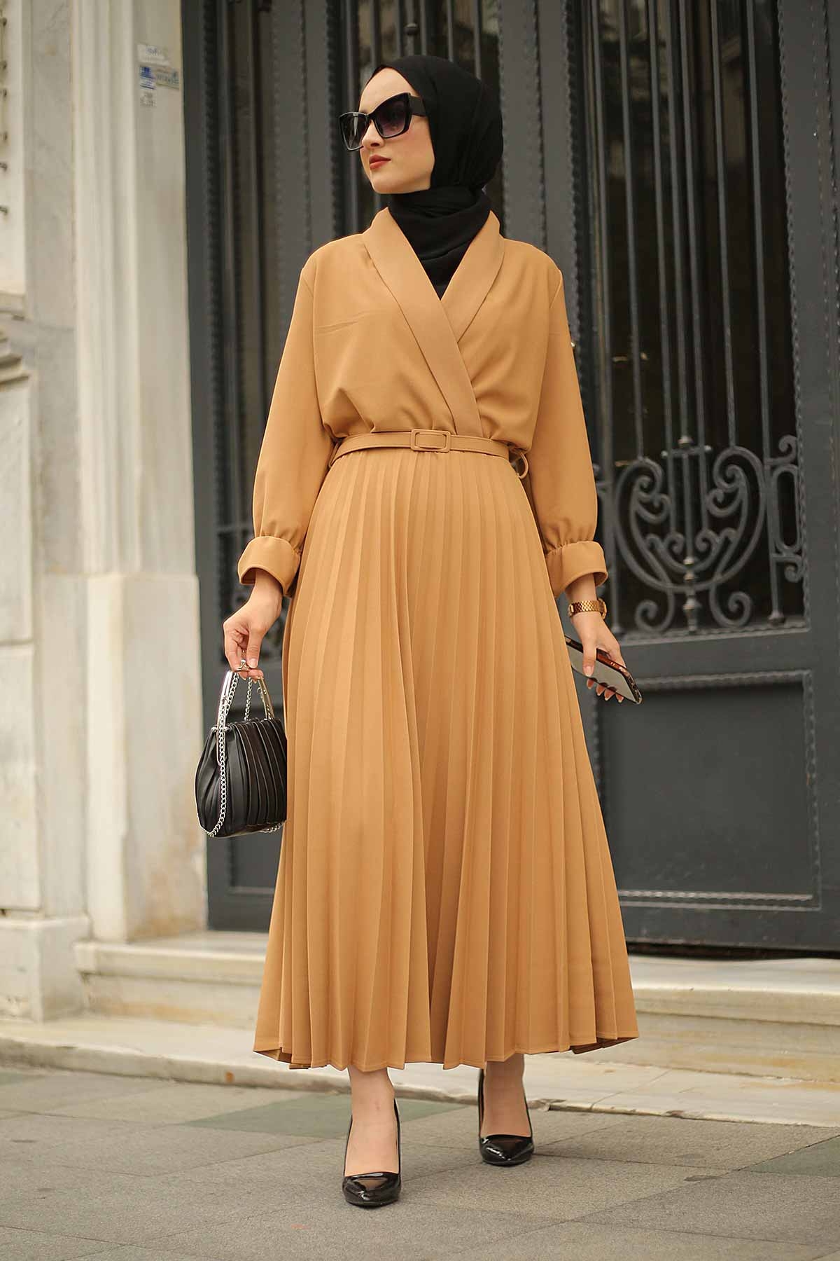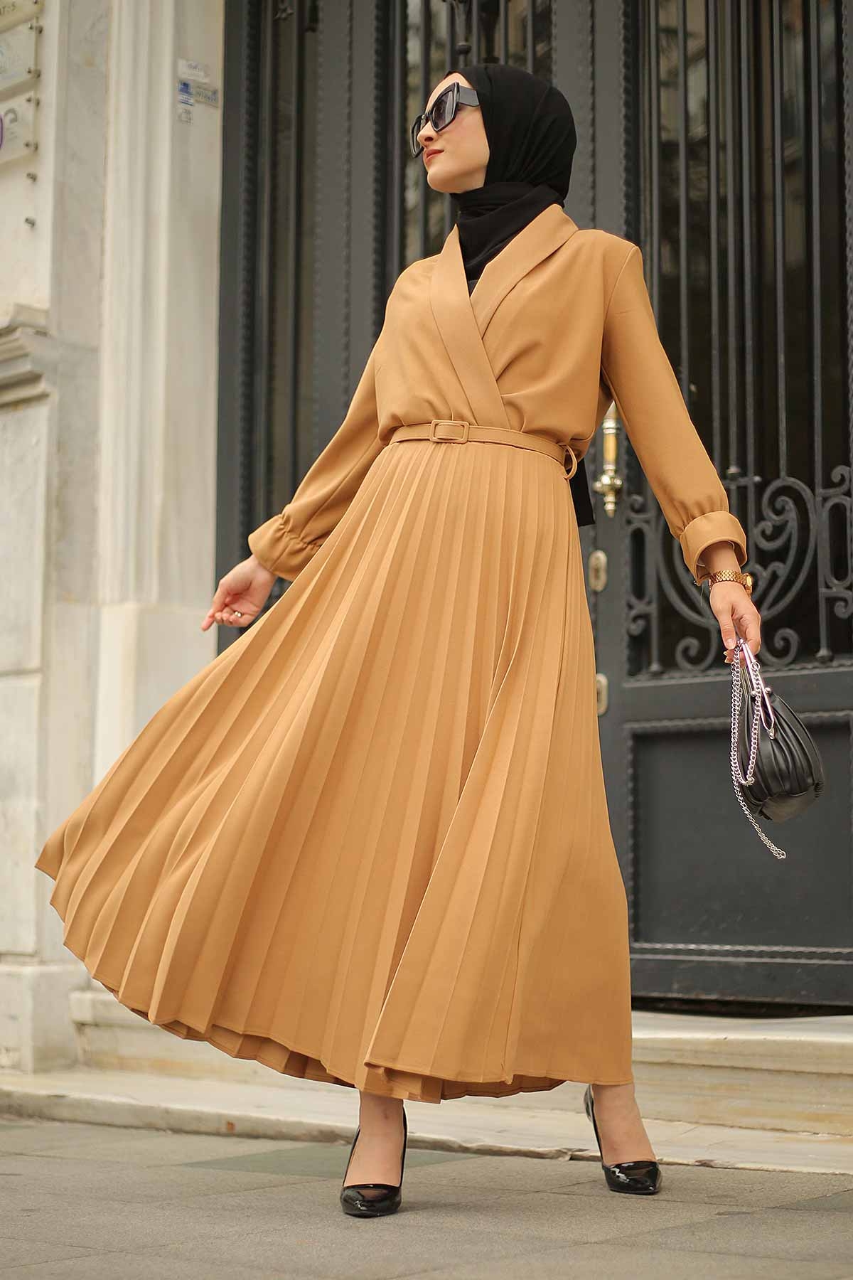 Double Breasted Collar Dress 15293-2 Camel Yorumları