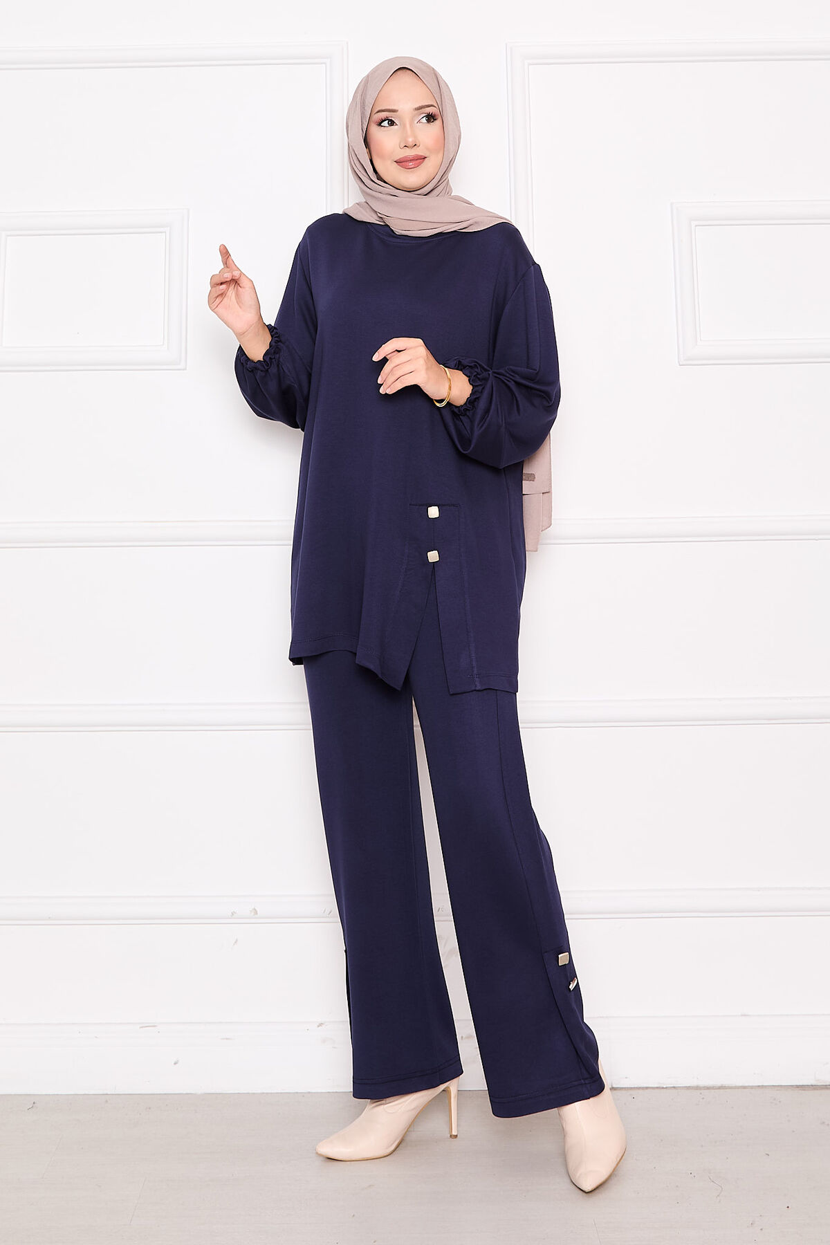 Düğme & Yırtmaç Detaylı Oyşo Takım Lacivert Yorumları