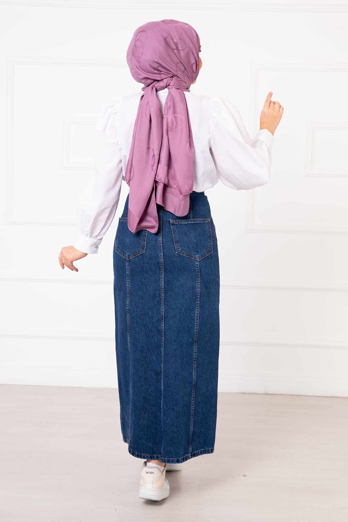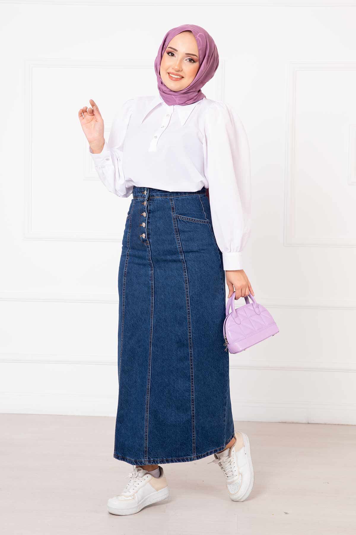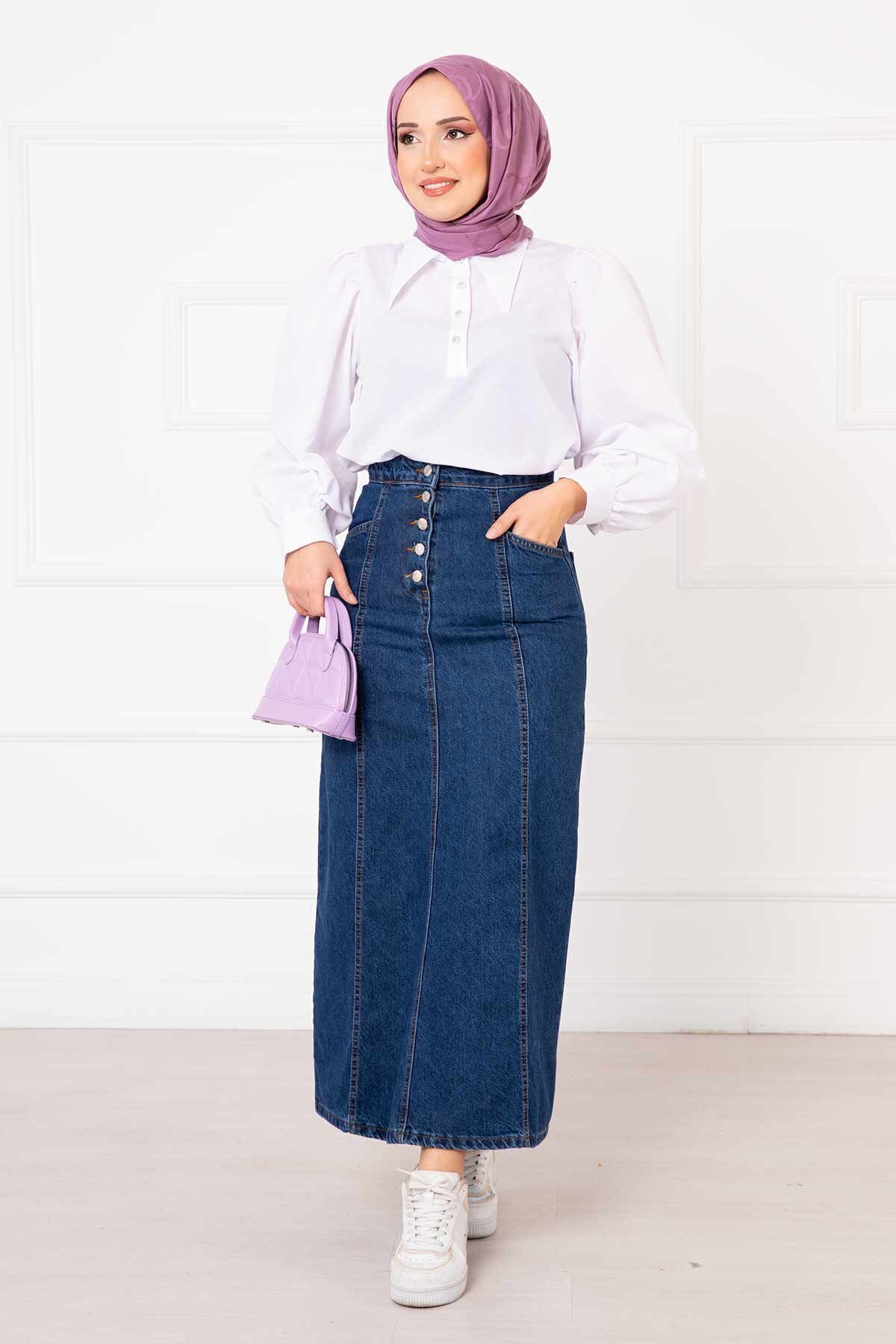 Düğmeli Cepli Kot Etek Koyu Mavi Yorumları