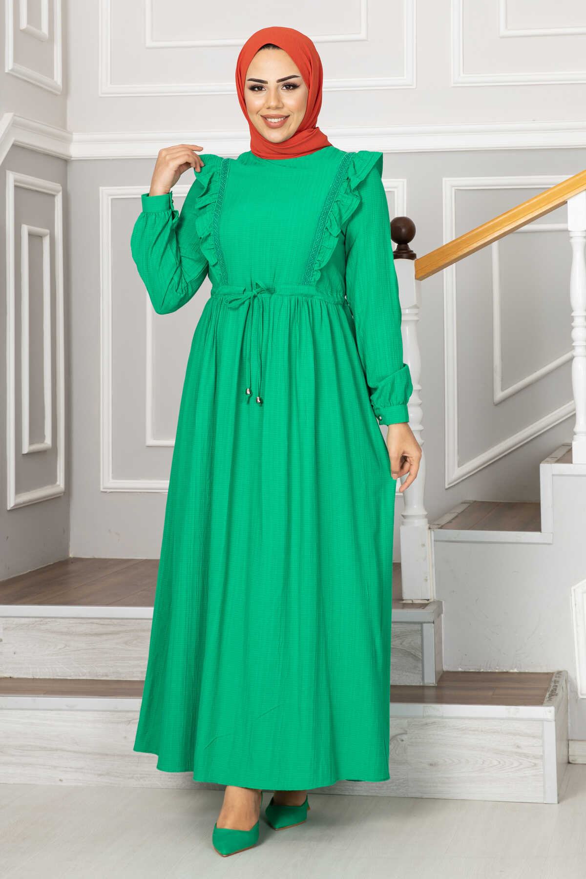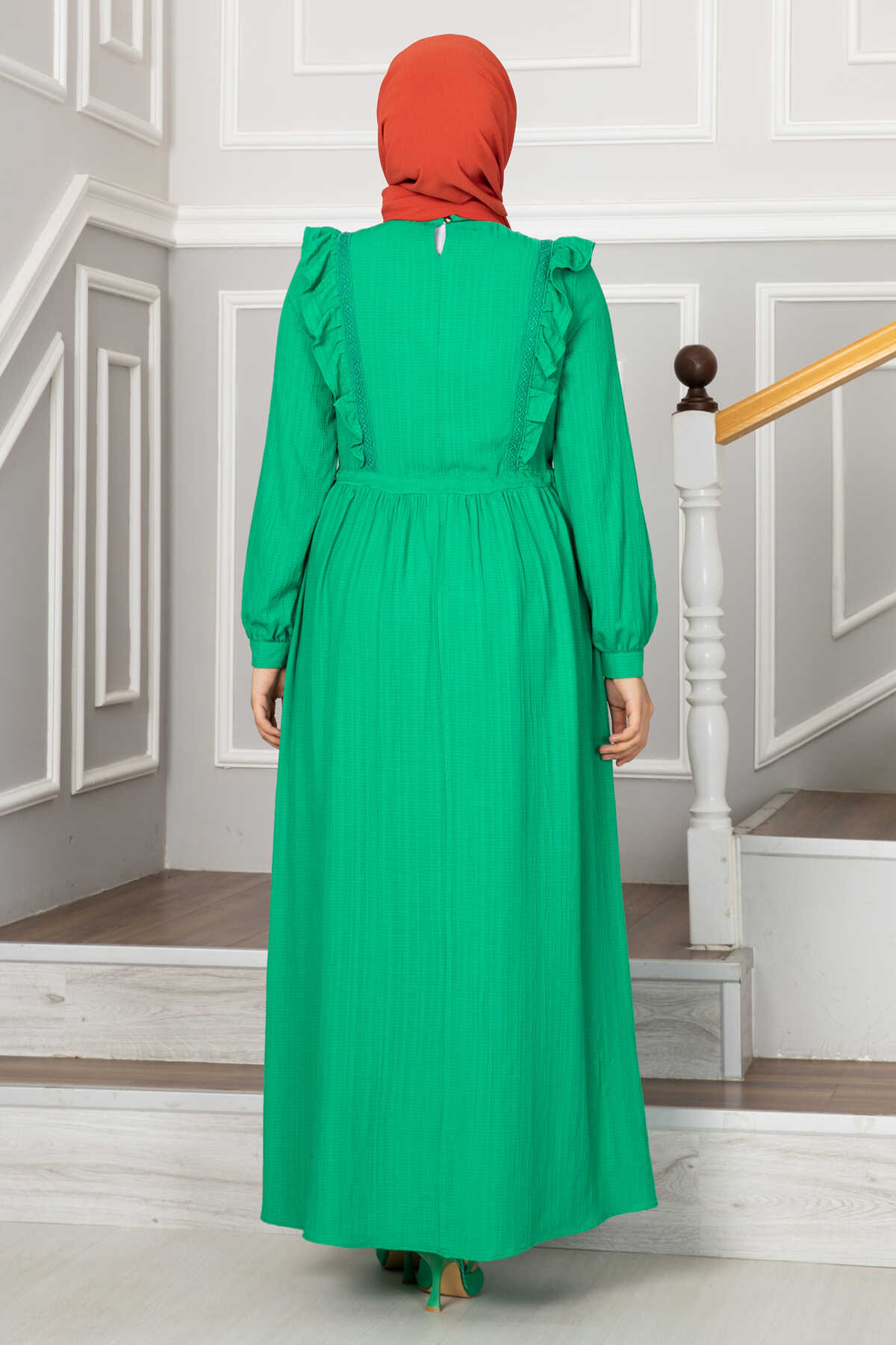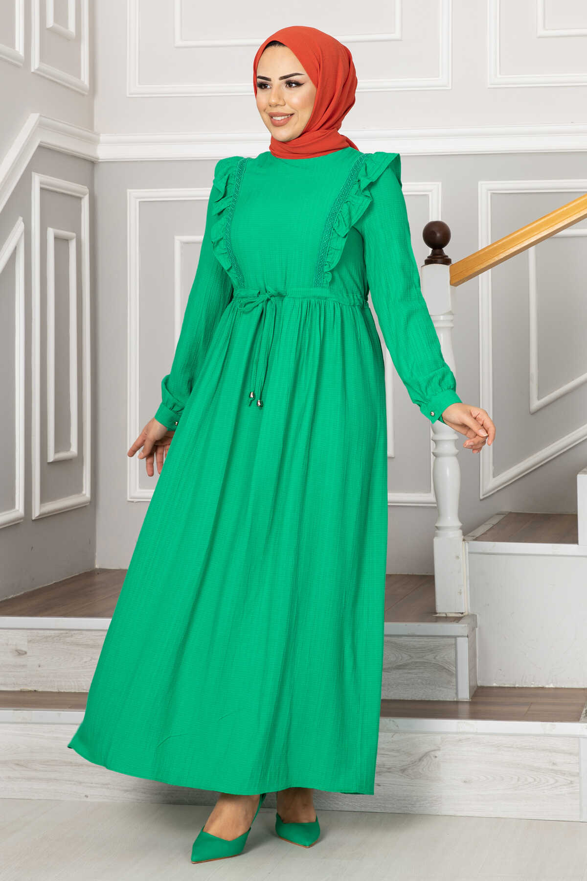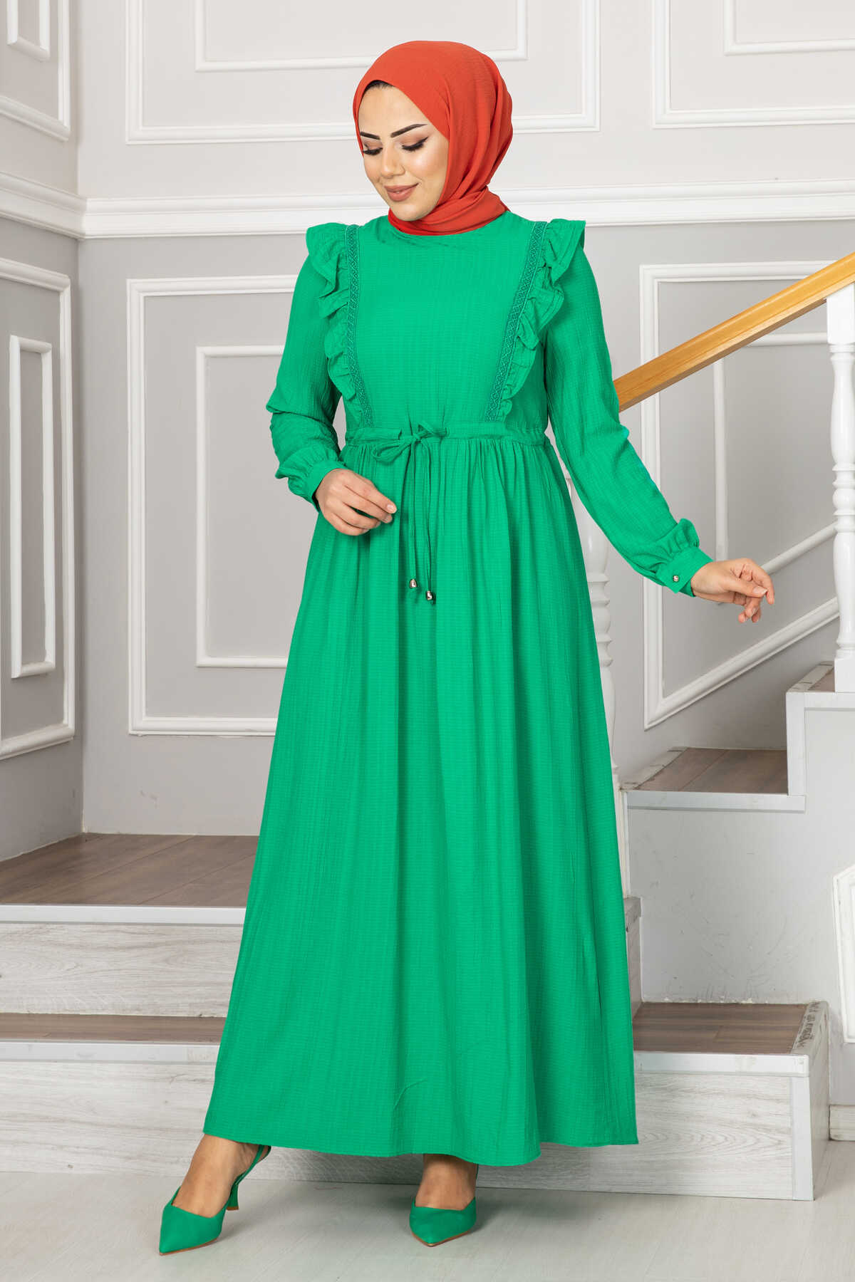 Efnan Tünel Kemerli Tesettür Elbise Yeşil