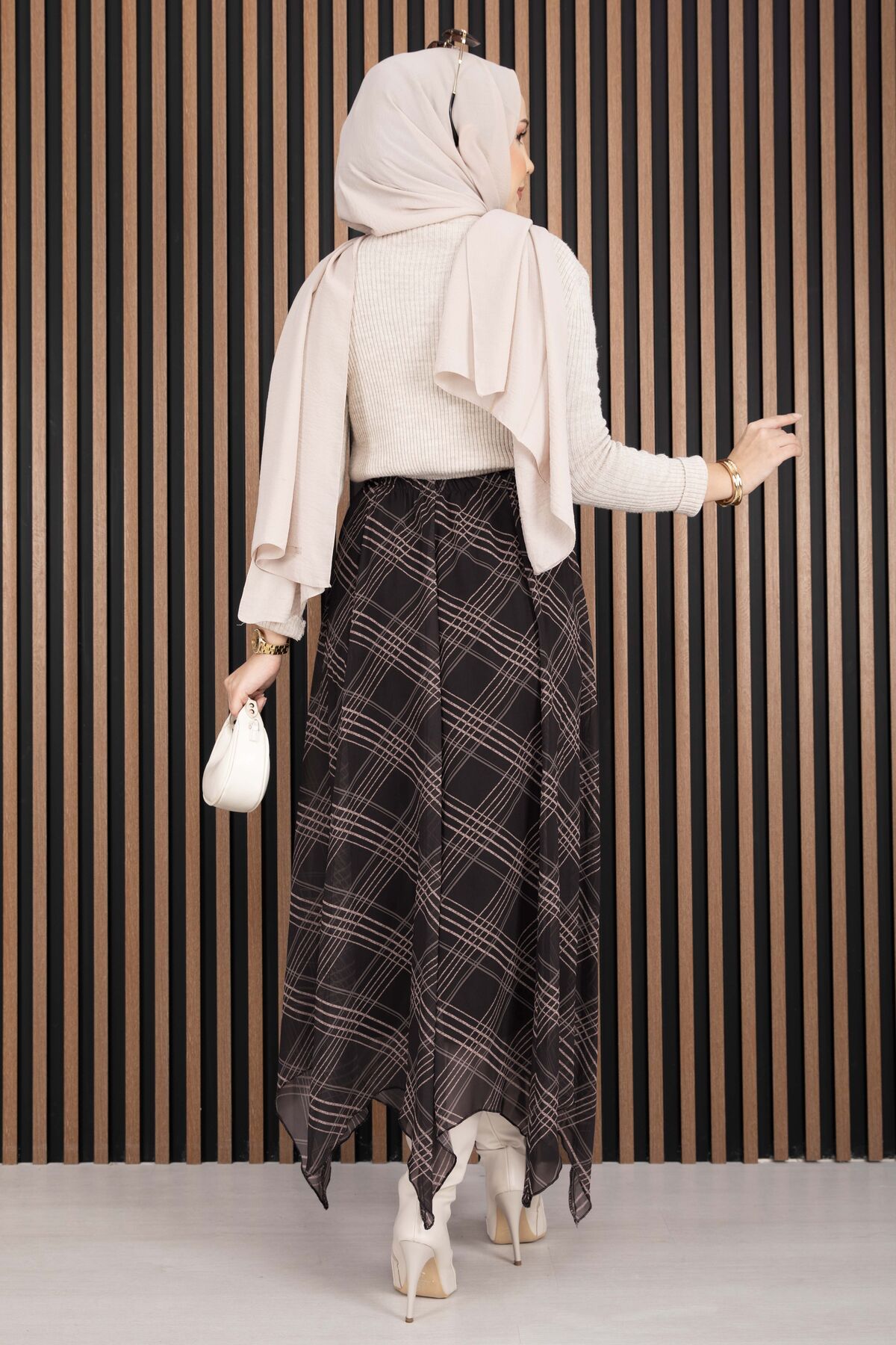 Asimetrik Kesim Ekose Şifon Etek Kahve Yorumları