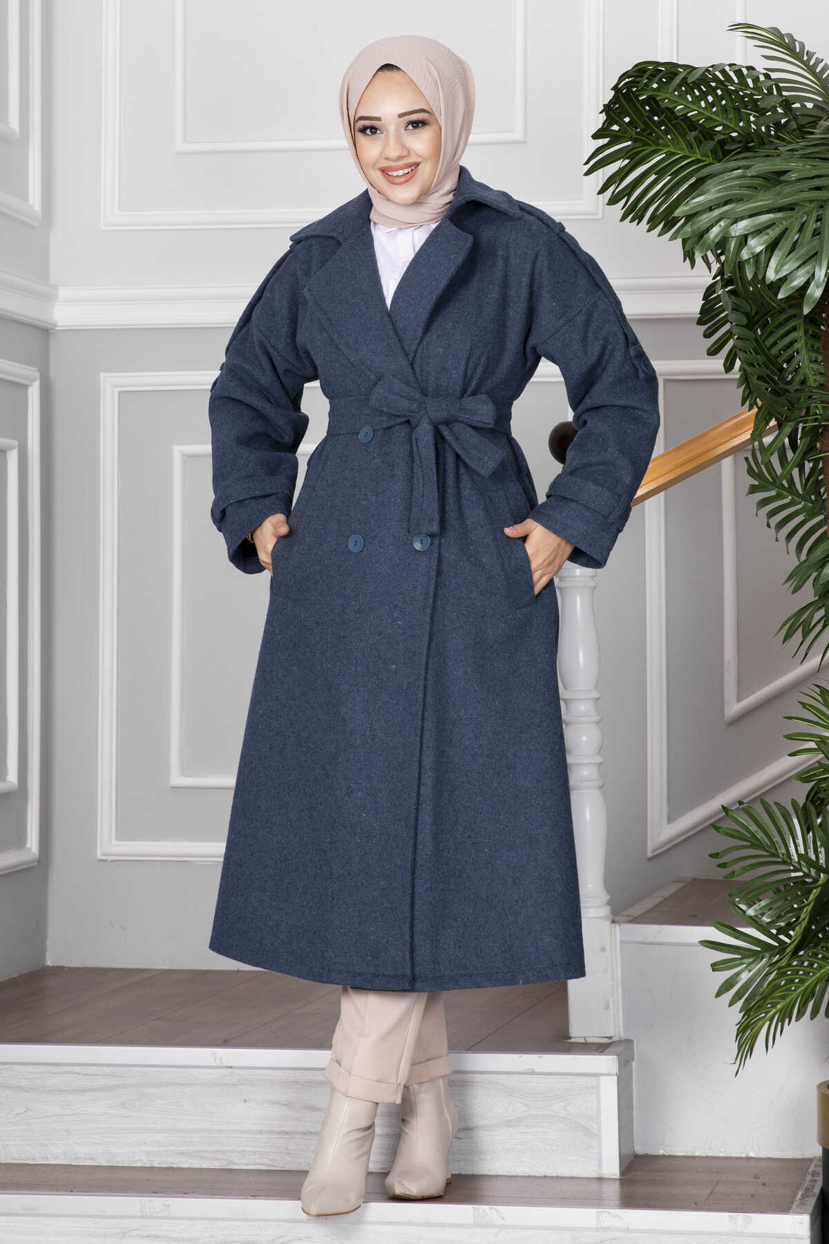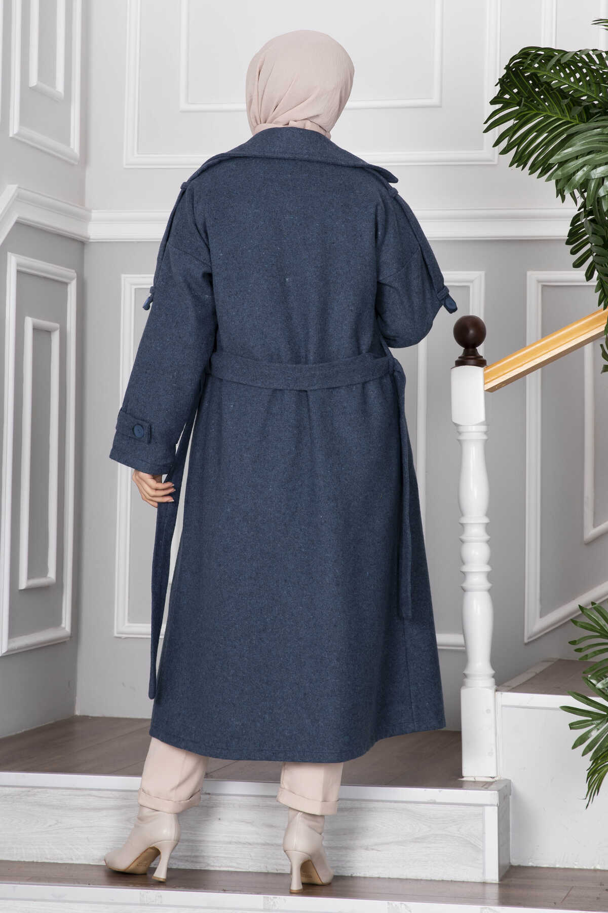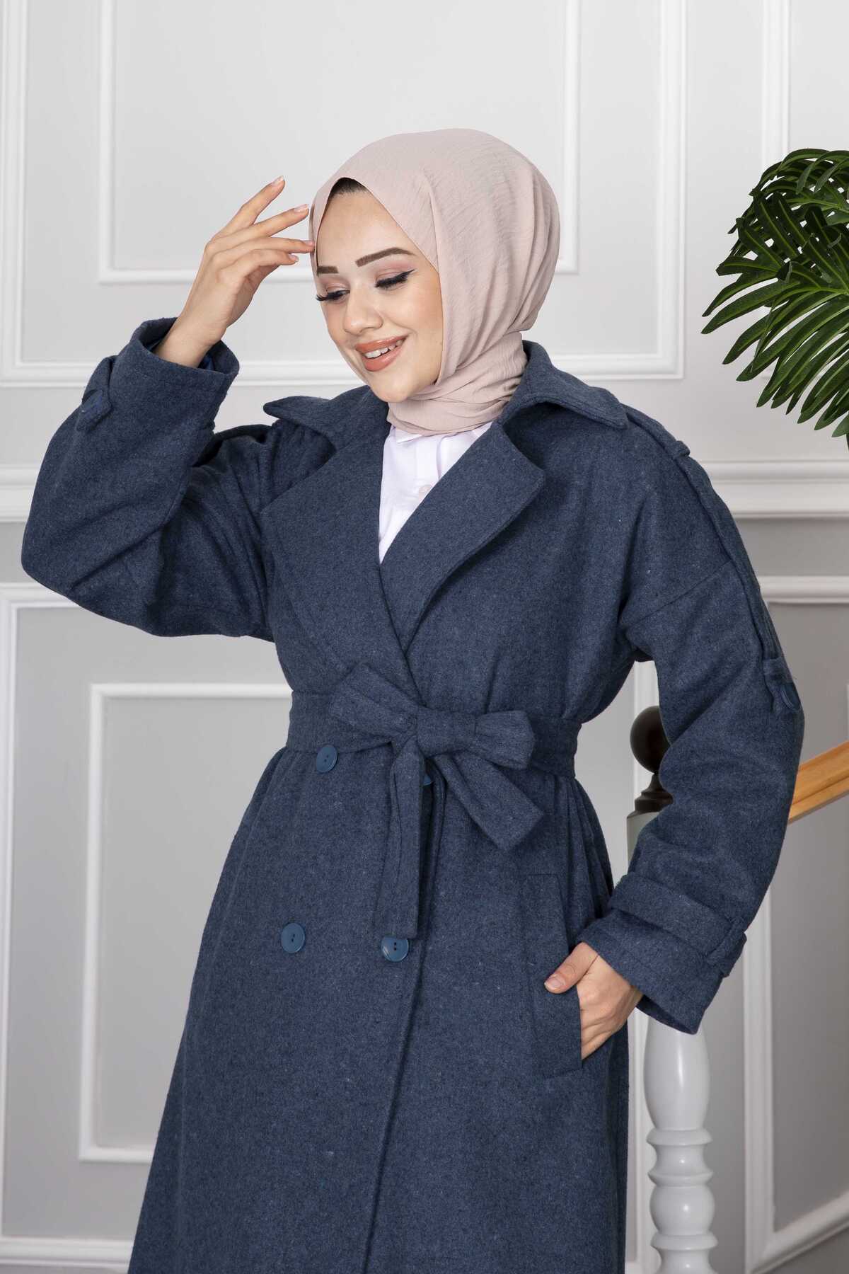 Elvin Tesettür Kaşe Kaban İndigo