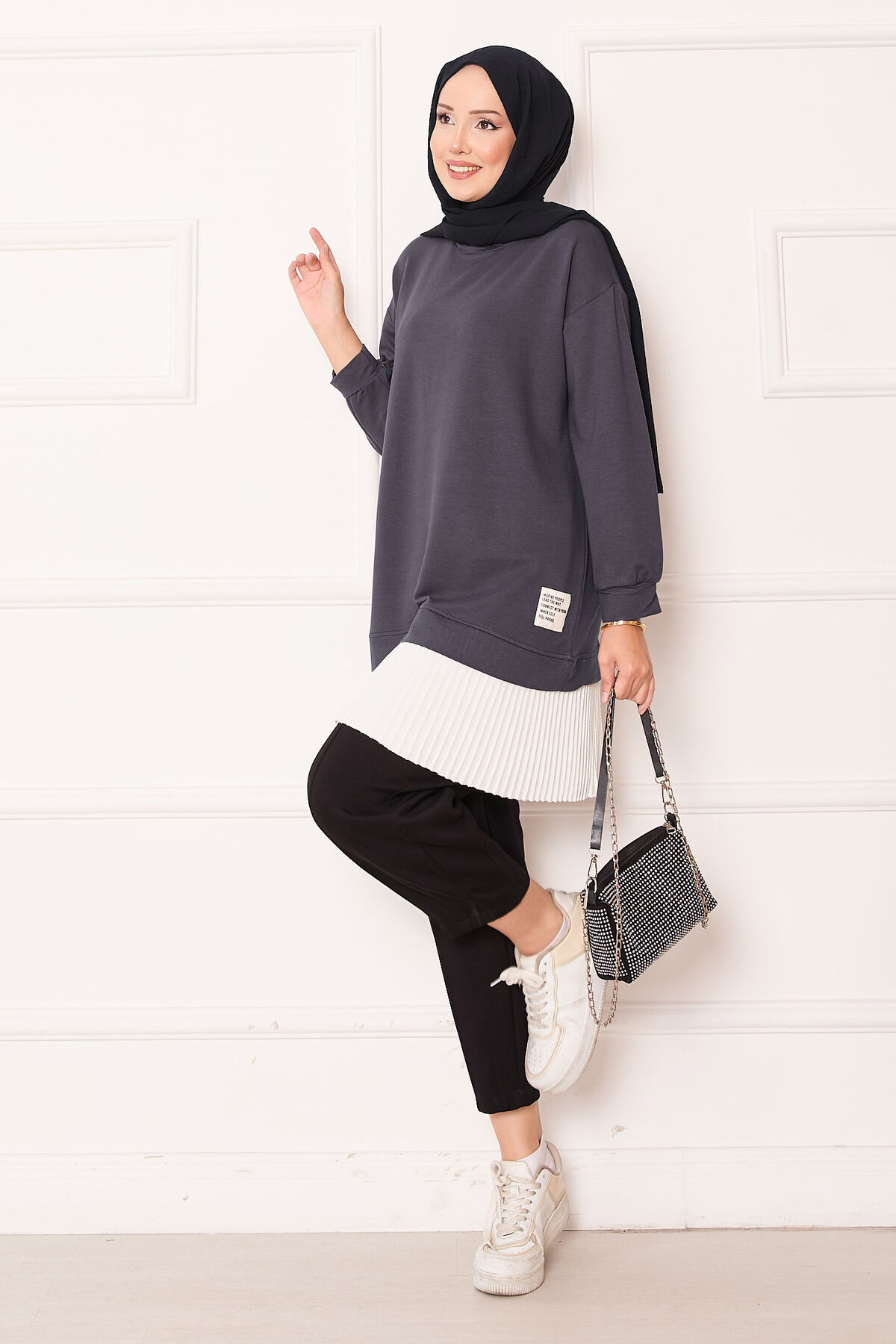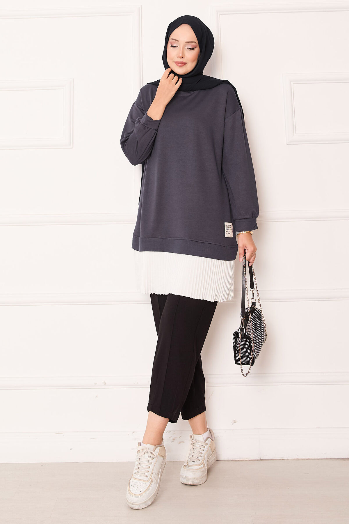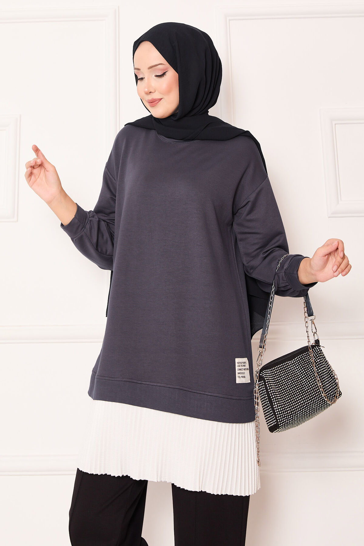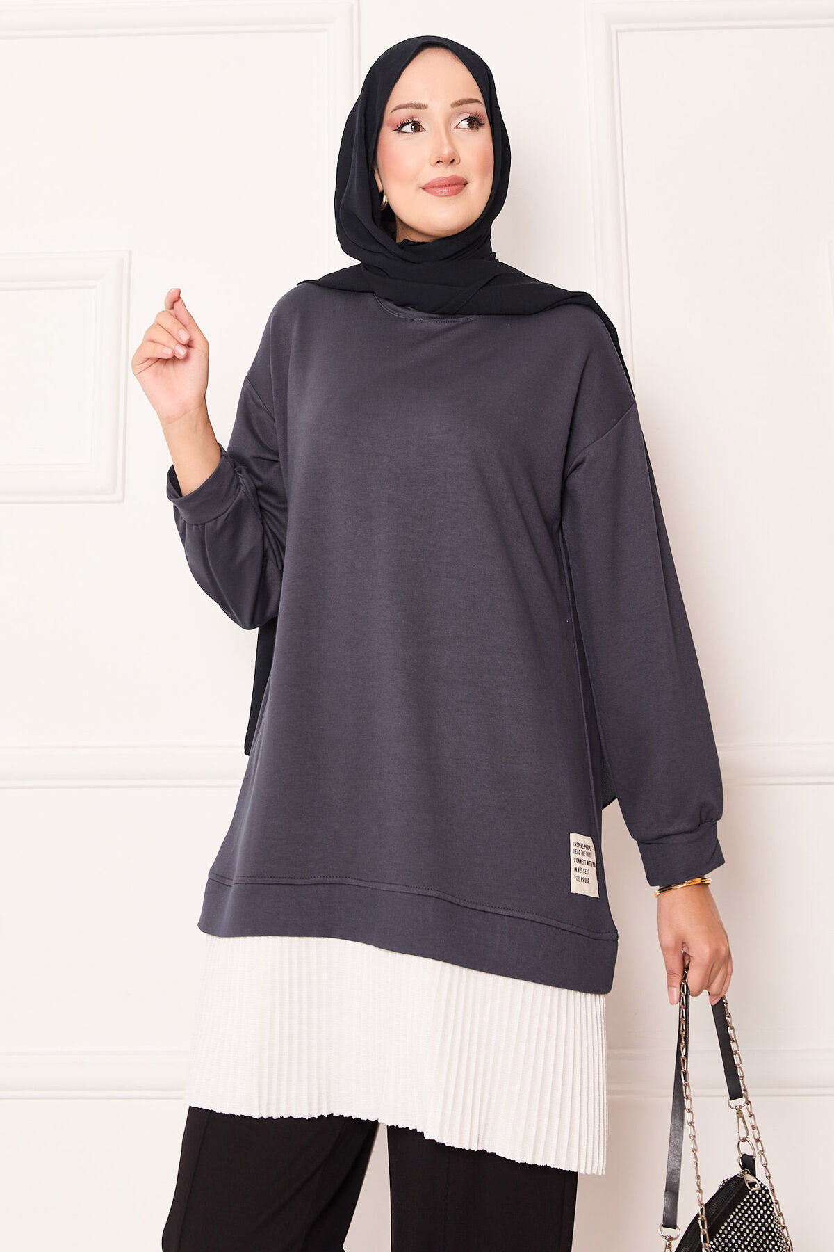 - Ürün mevsimliktir. Yeni sezon pilise detaylı tunik. Etek kısmında sabit içlik görünümü mevcut hem şık hemde rahat tunik