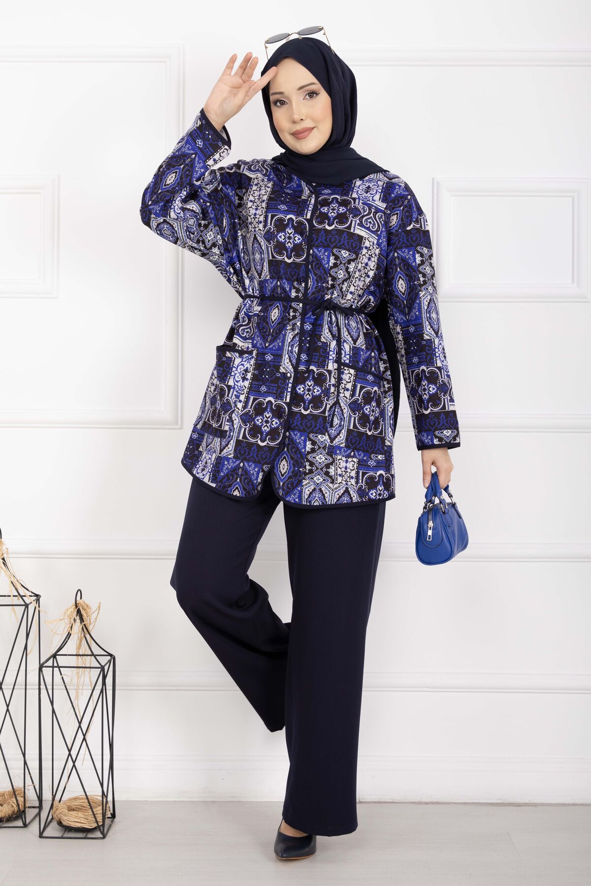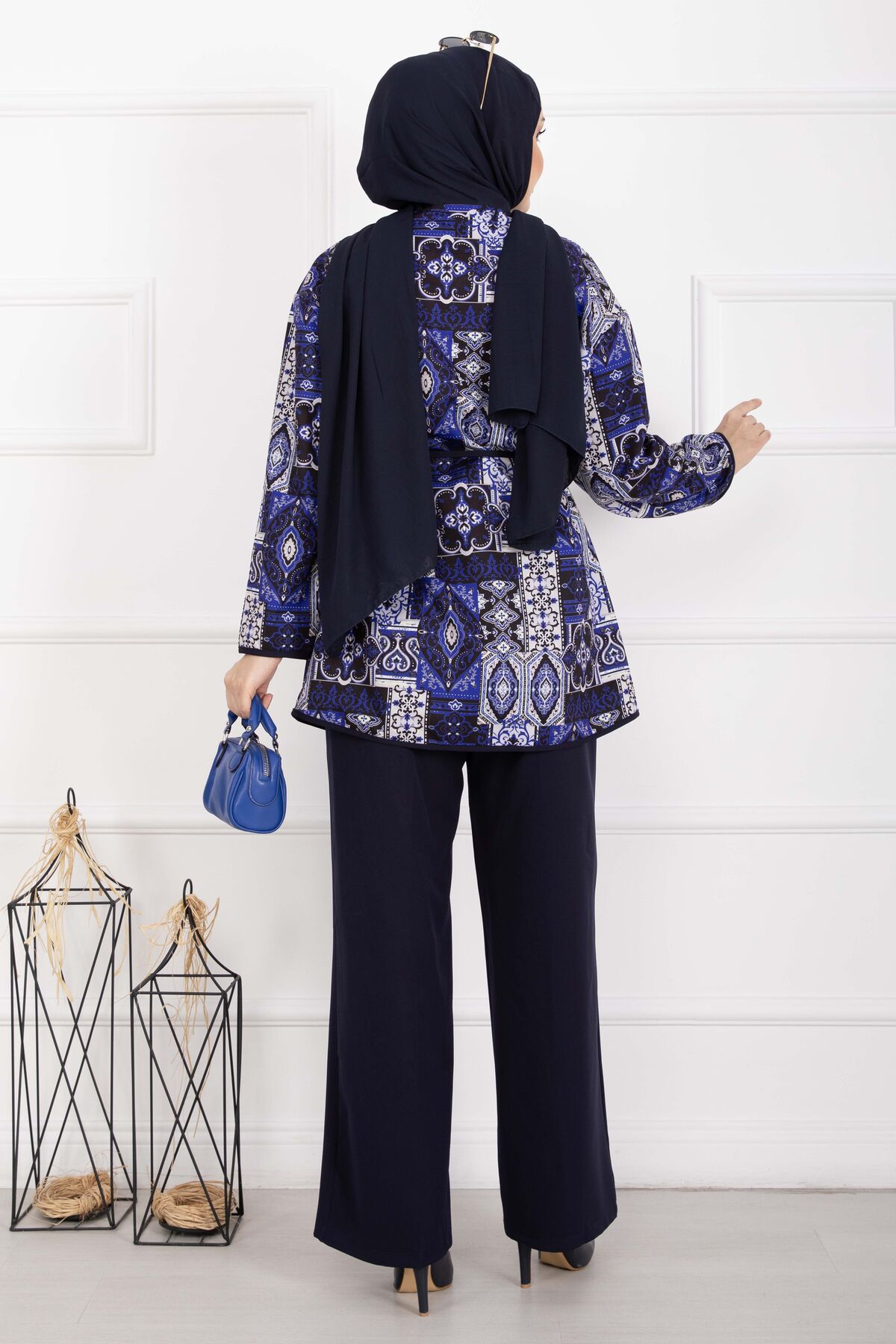 Etnik Desen Biyeli Ceketli Takım Lacivert Yorumları