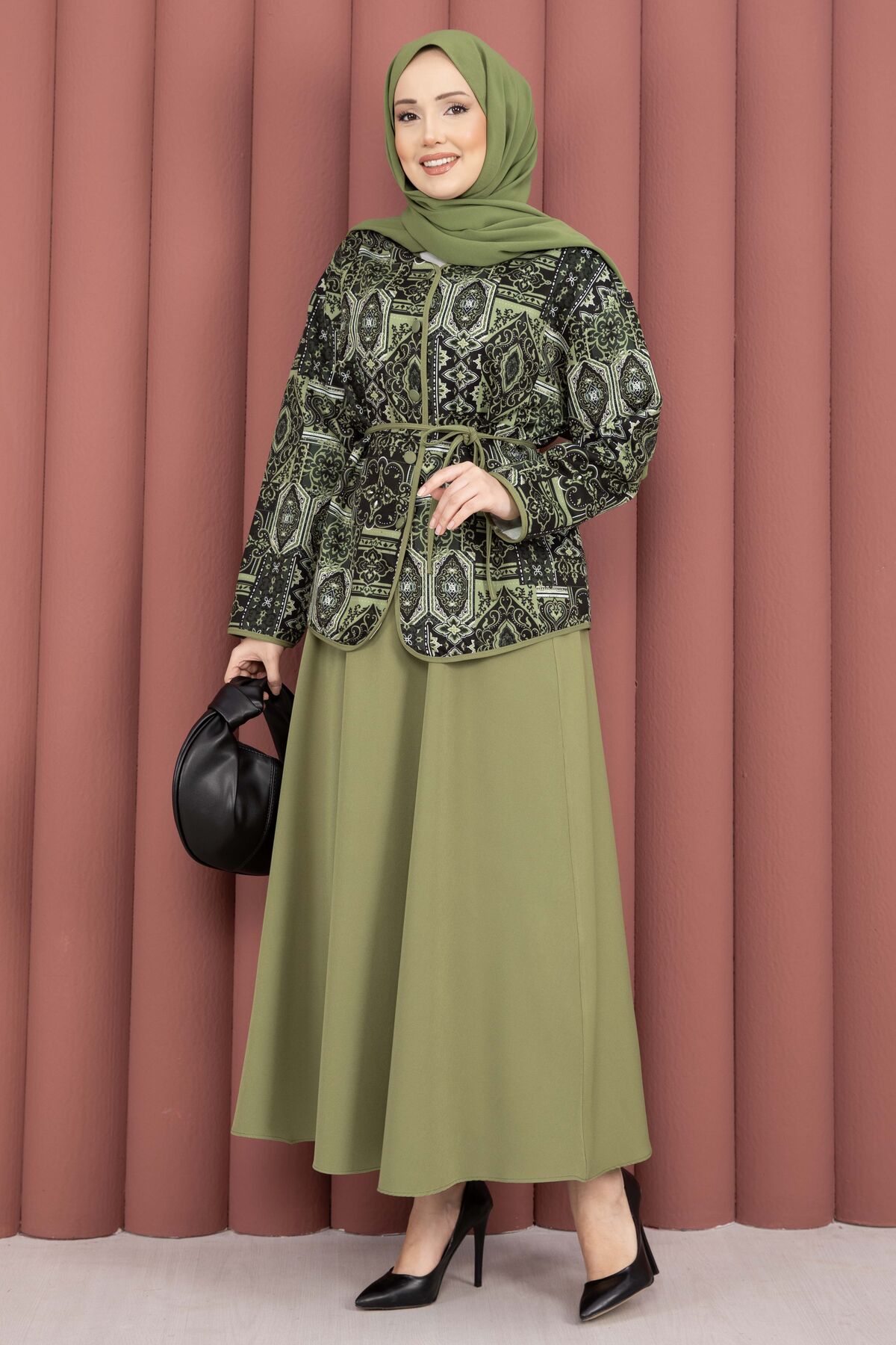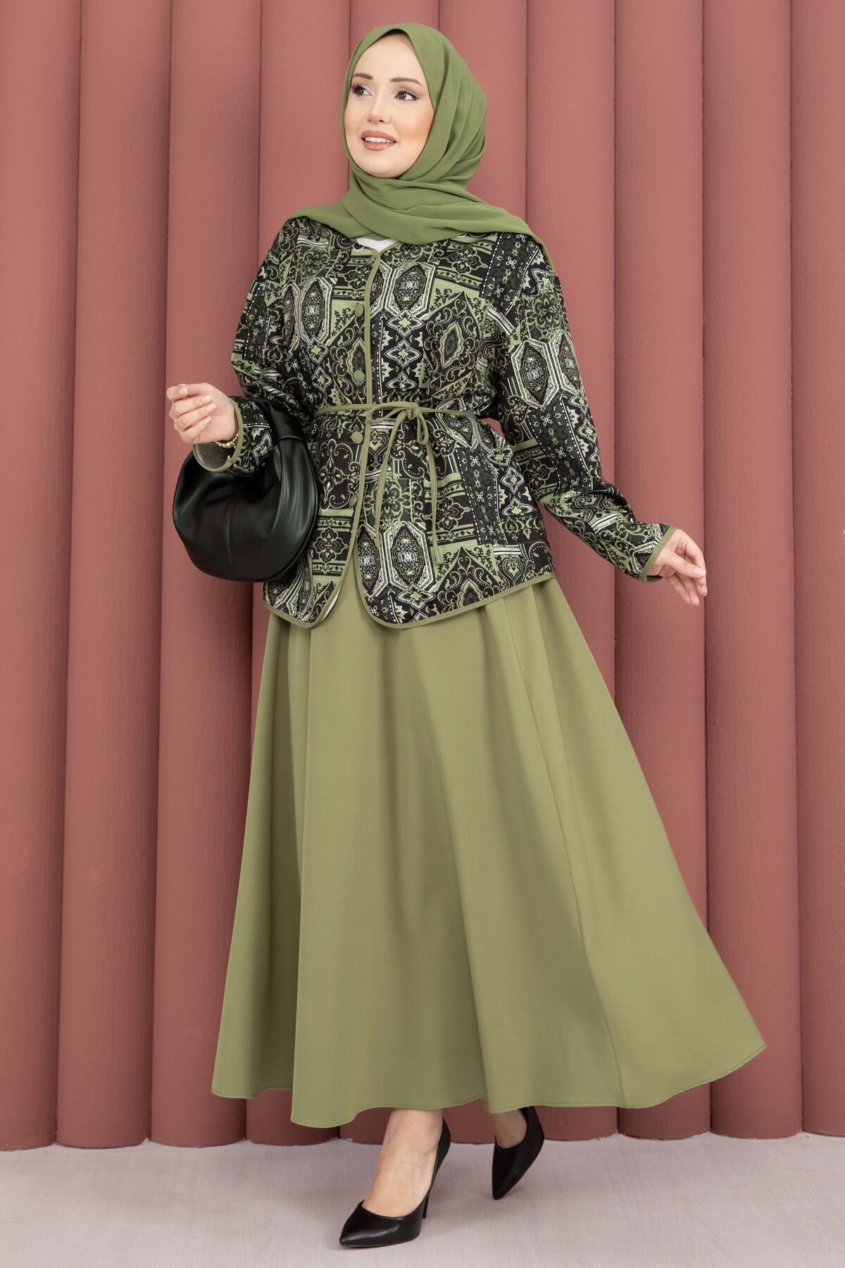 Modern ve otantik dokunuşları bir araya getiren Etnik Desen Ceket & Etek Takım, şık ve rahat kombinler oluşturmak isteyenler için ideal bir seçenektir. Günlük kullanımdan özel davetlere kadar birçok ortamda zarif bir görünüm sunar.