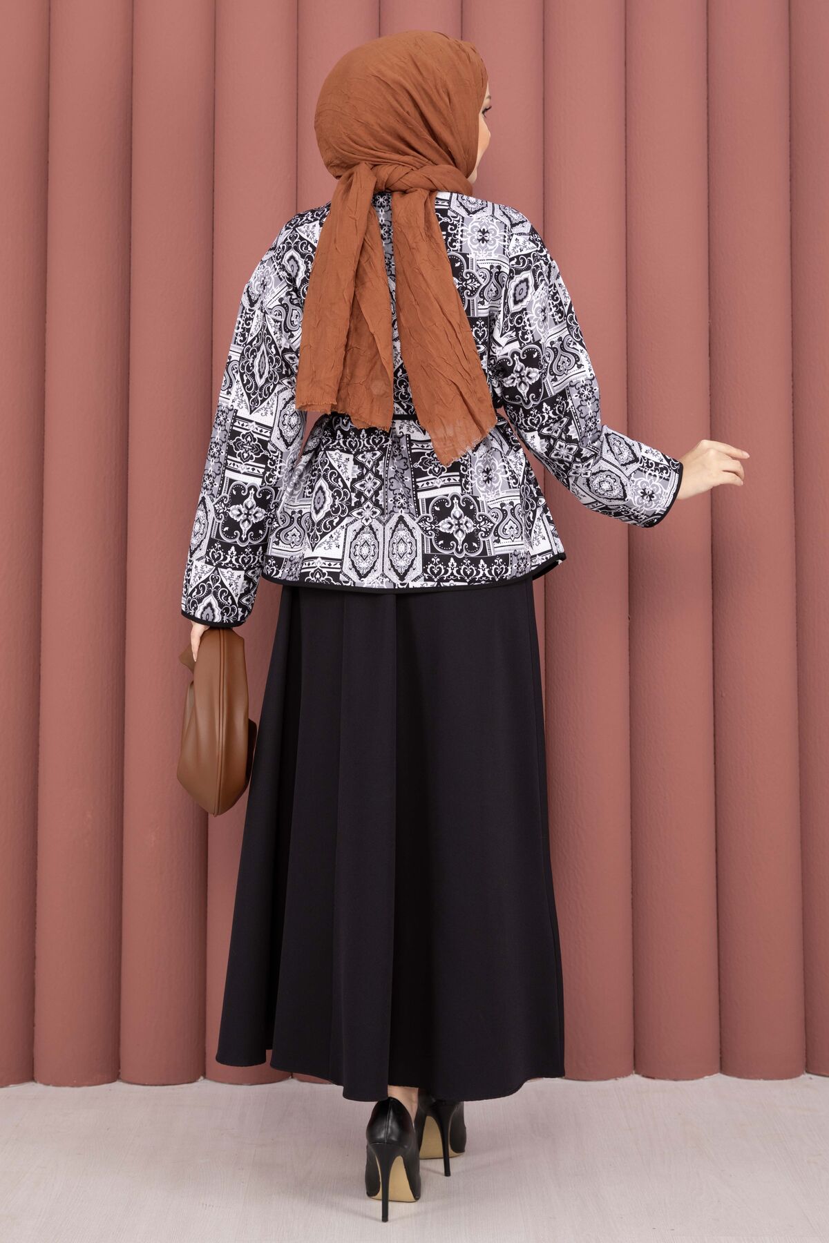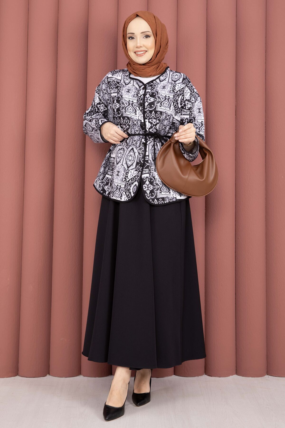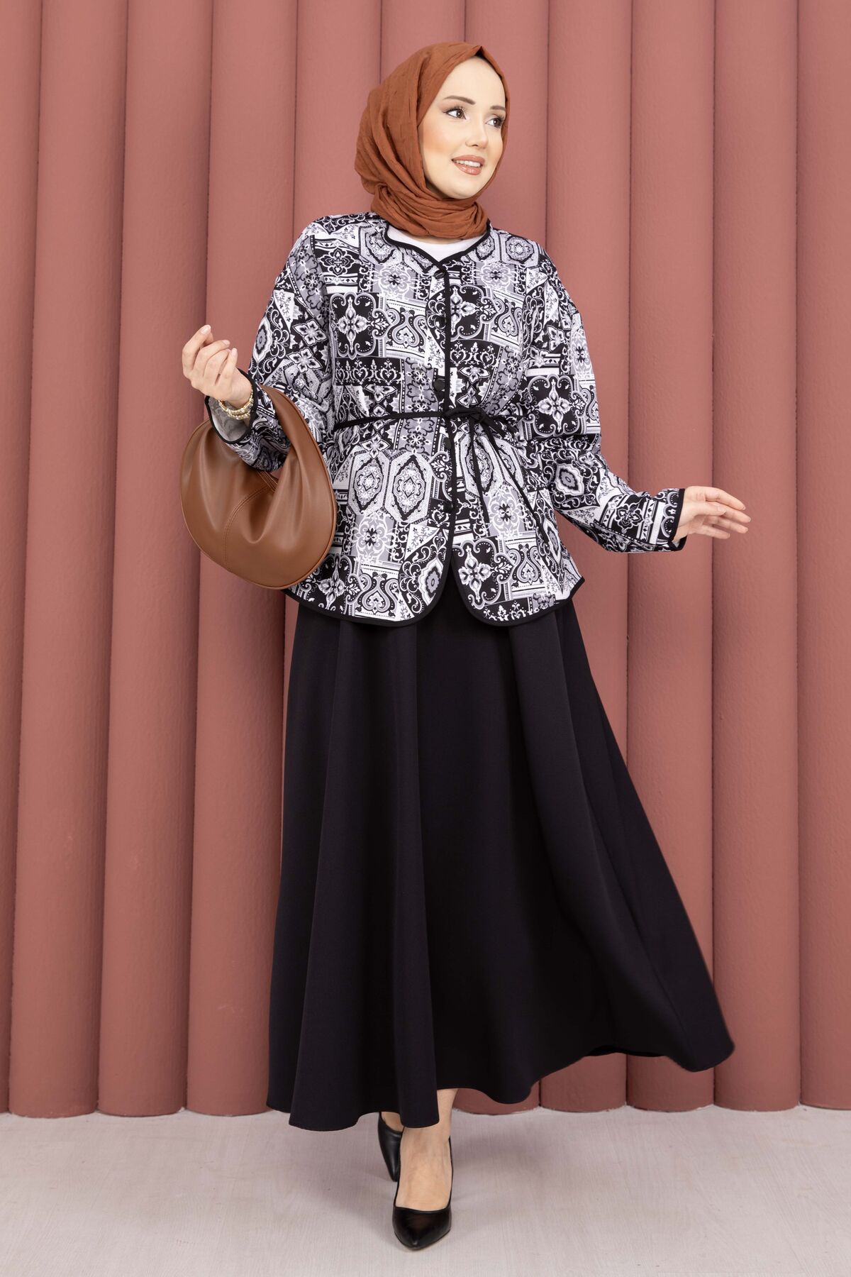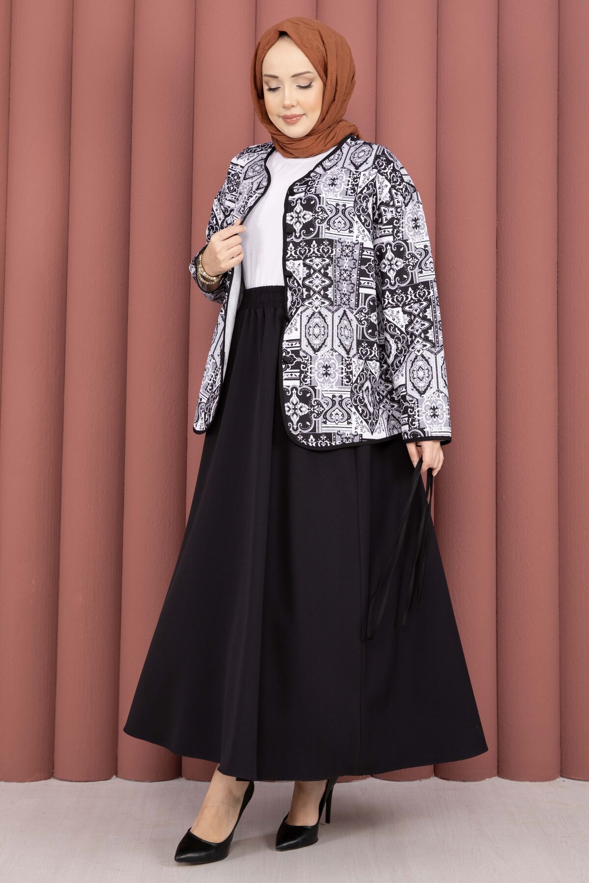 Etnik Desen Ceket & Etek Takım Siyah Yorumları