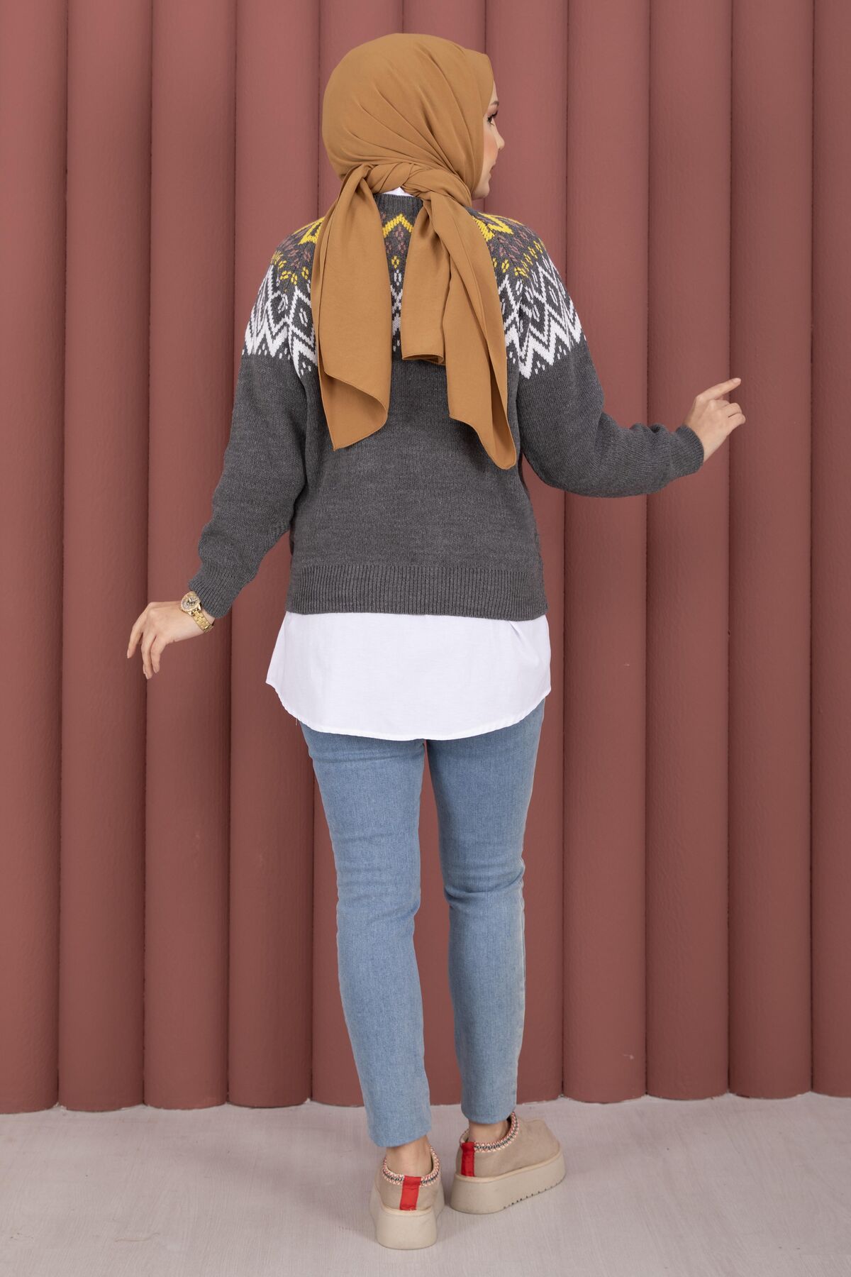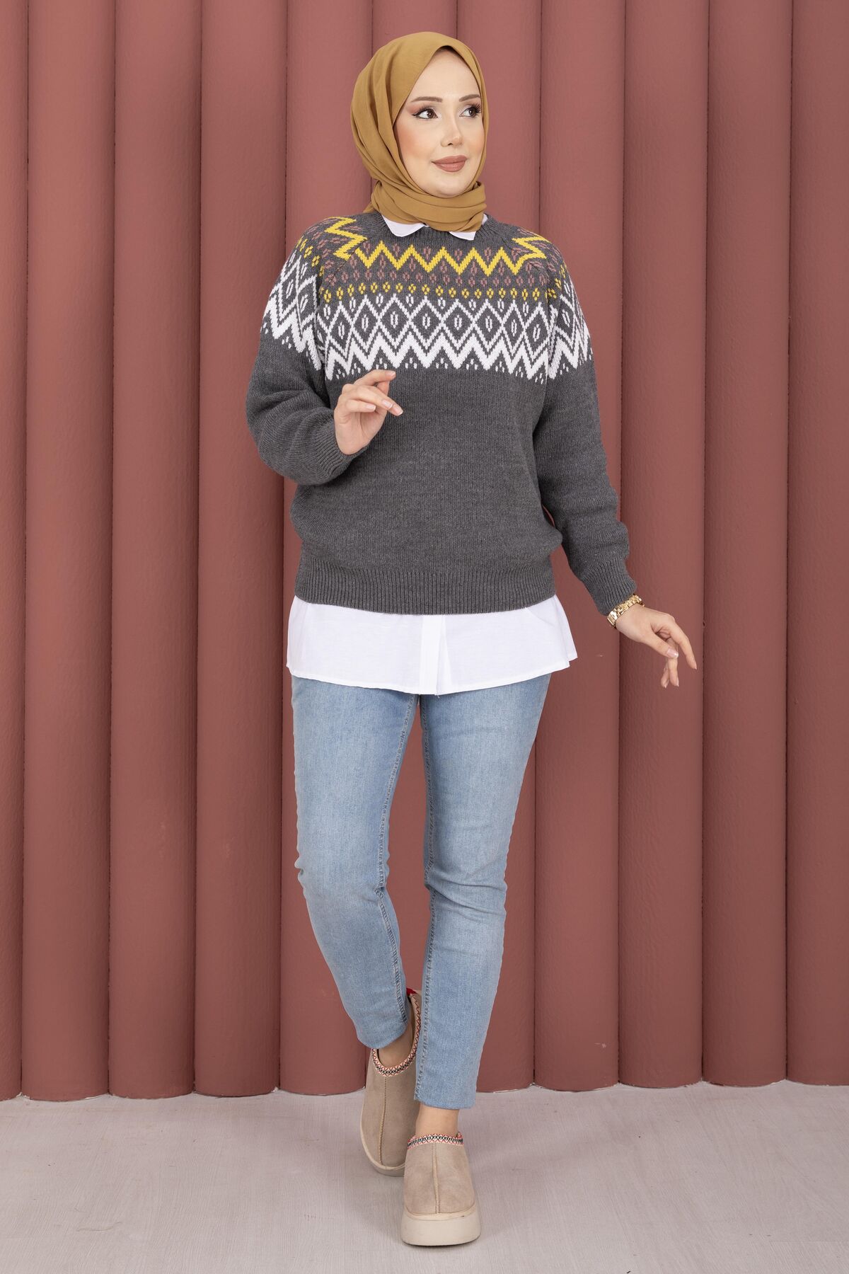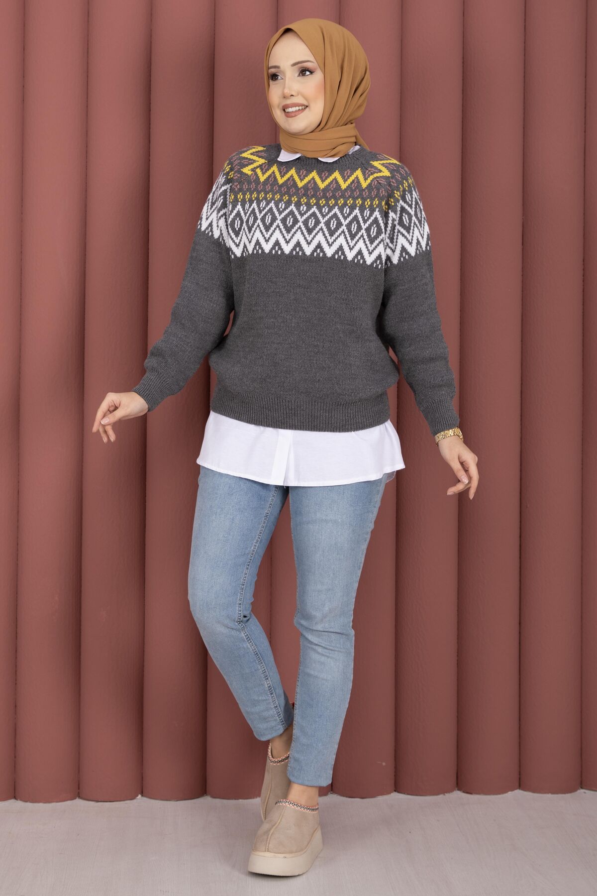 Etnik desenleriyle öne çıkan Etnik Motifli Salaş Triko Kazak, günlük kombinlere sıcak ve şık bir dokunuş katar. Triko kumaşı sayesinde serin havalarda konforlu bir kullanım sunar.