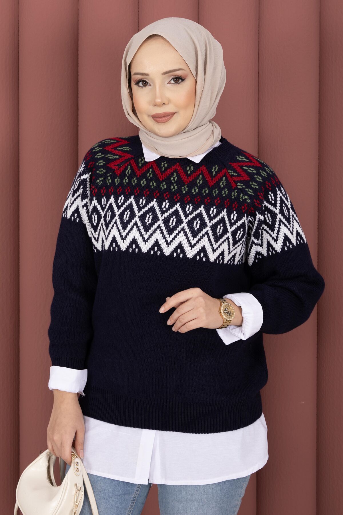 Etnik Motifli Salaş Triko Kazak