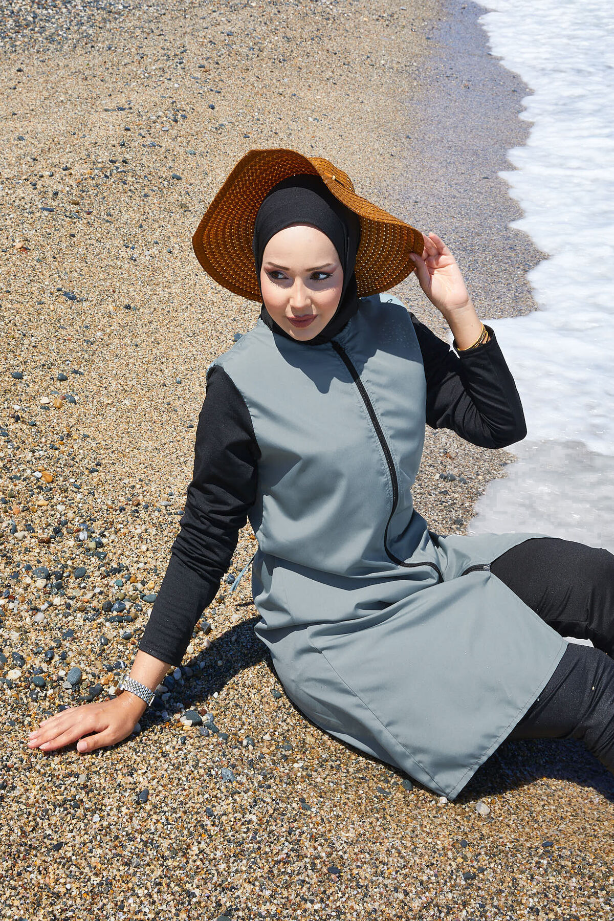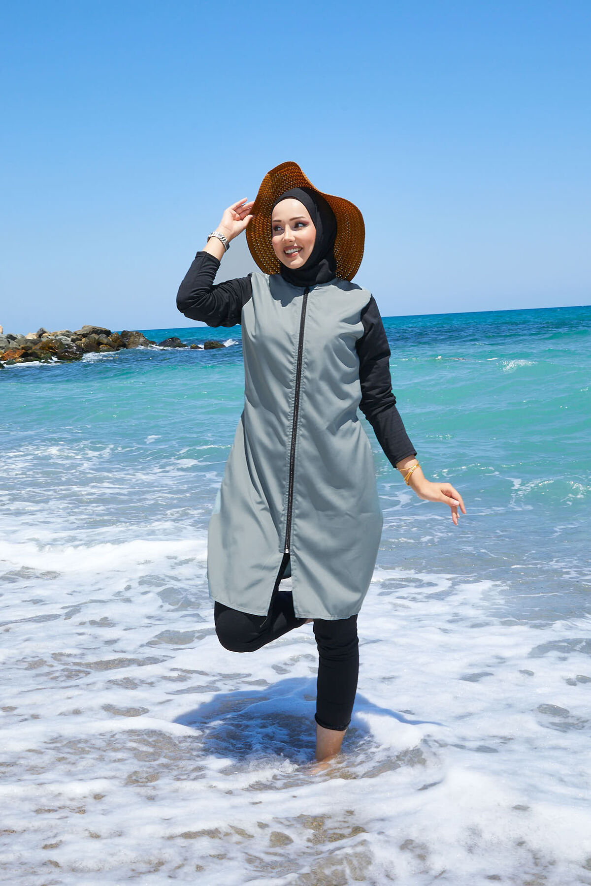 - Boydan fermuarlı tunik belden bağcık detalıdır denizde favuzda açılma yapmaz iç göstermez pantolon belden lastiklidir tesettüre uygun üretilmiştir.