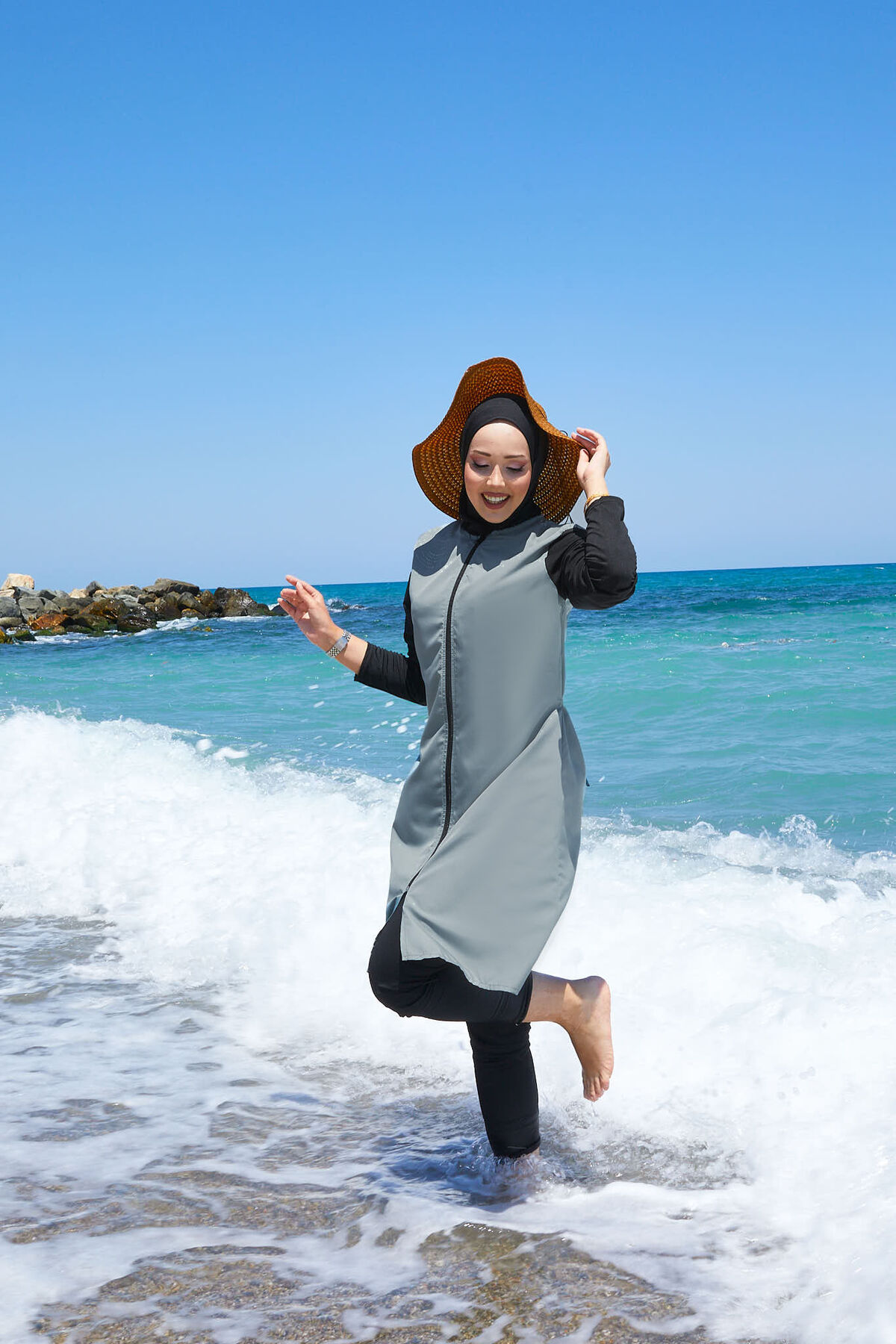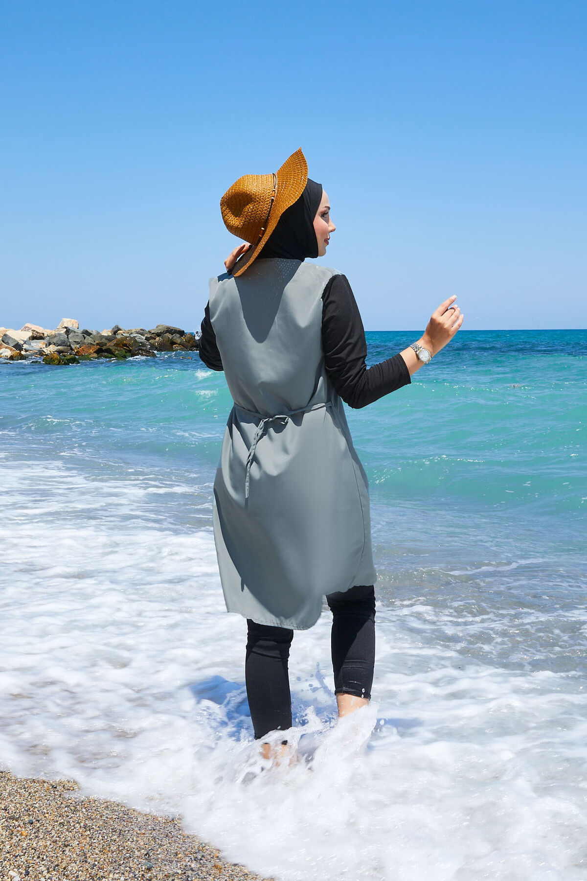Yeni sezon belden bağcıklı tesettür mayo plajlarda sizlere eşlik ederken hem hızlı kuruma özelliği ile üzerinize yapışmadan rahatlıkla denize ve havuza girmenin konforunu sağlayacaktır sizlere. Keyifli alışverişler ve tatiller dileriz.