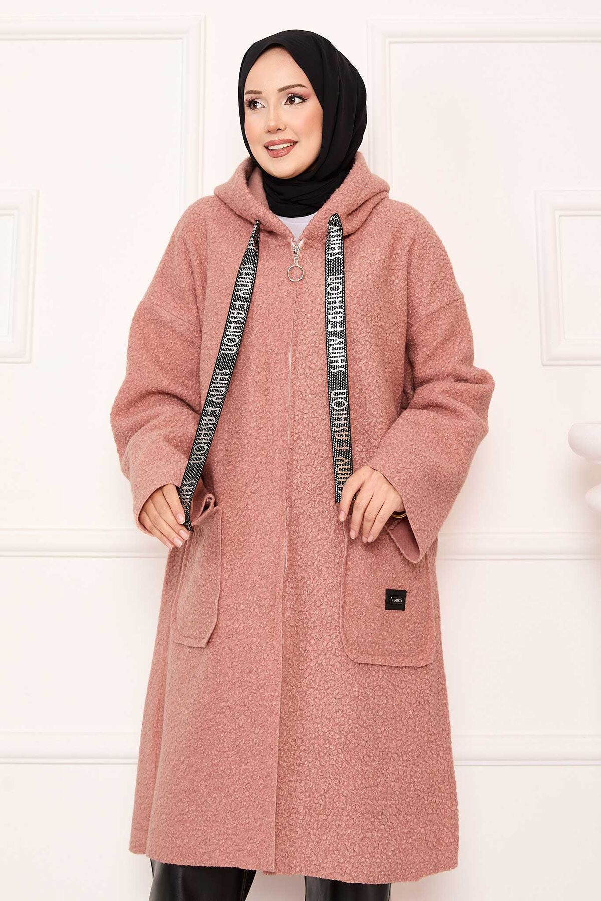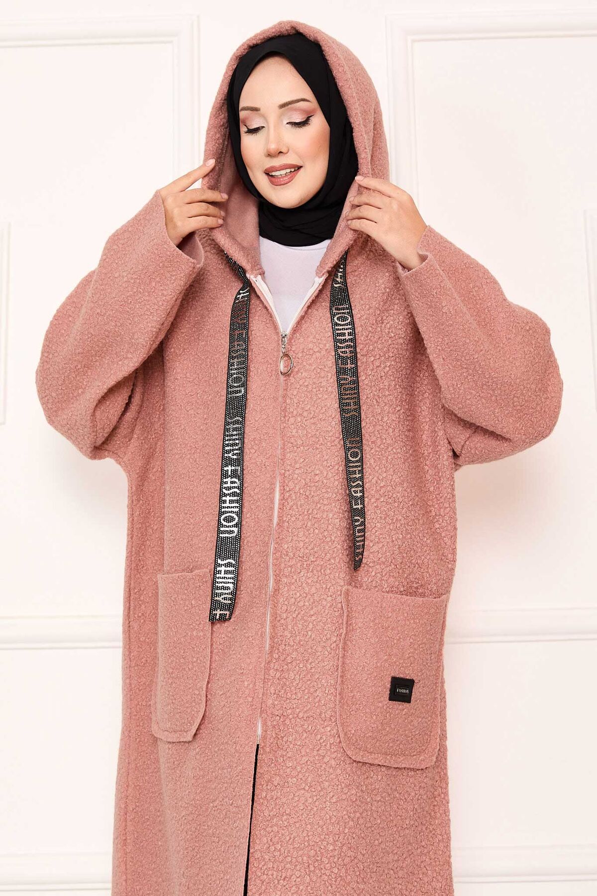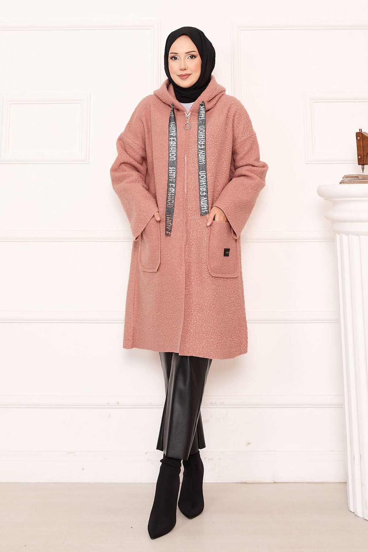 Fermuarlı Kapüşonlu Buklet Kap Somon