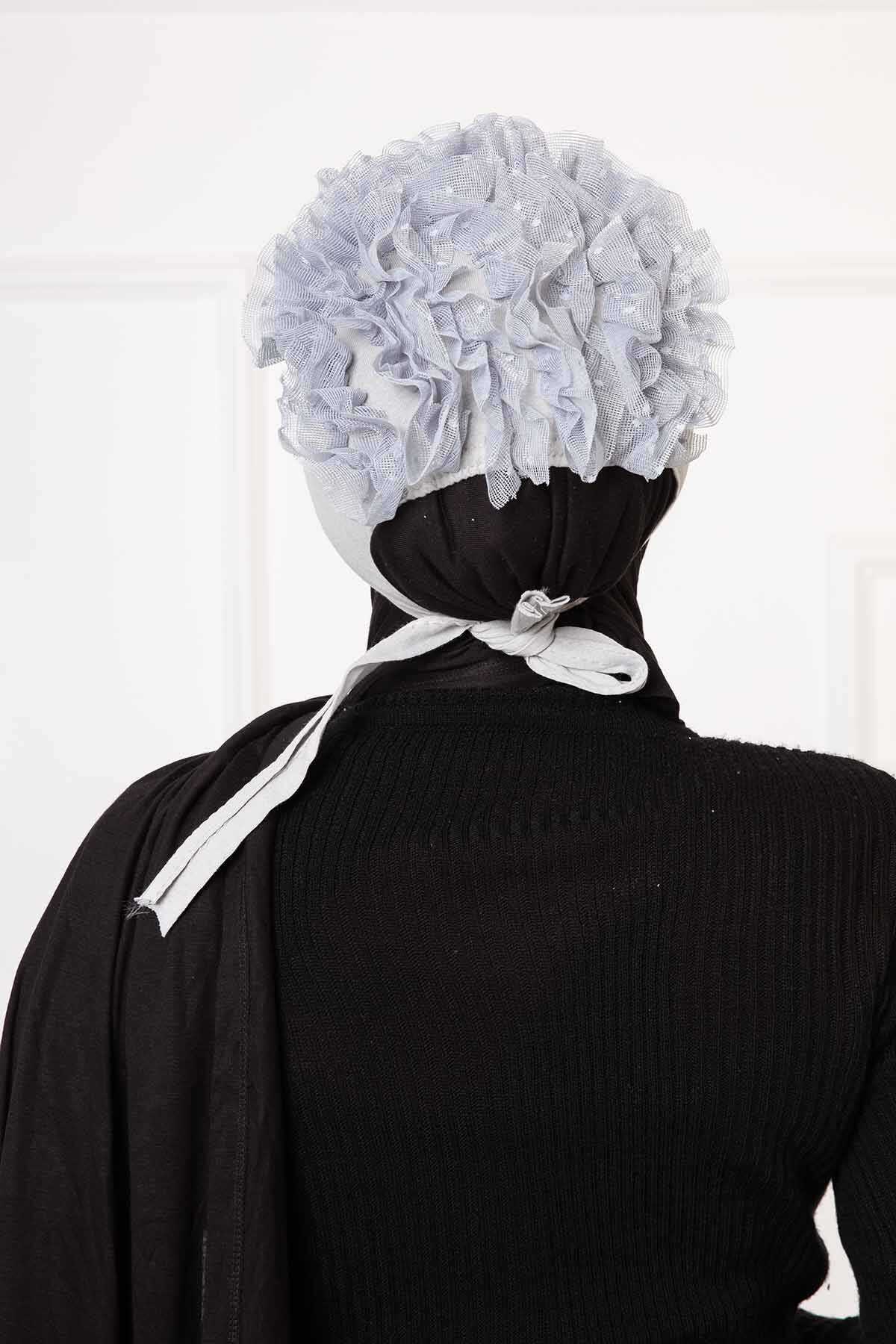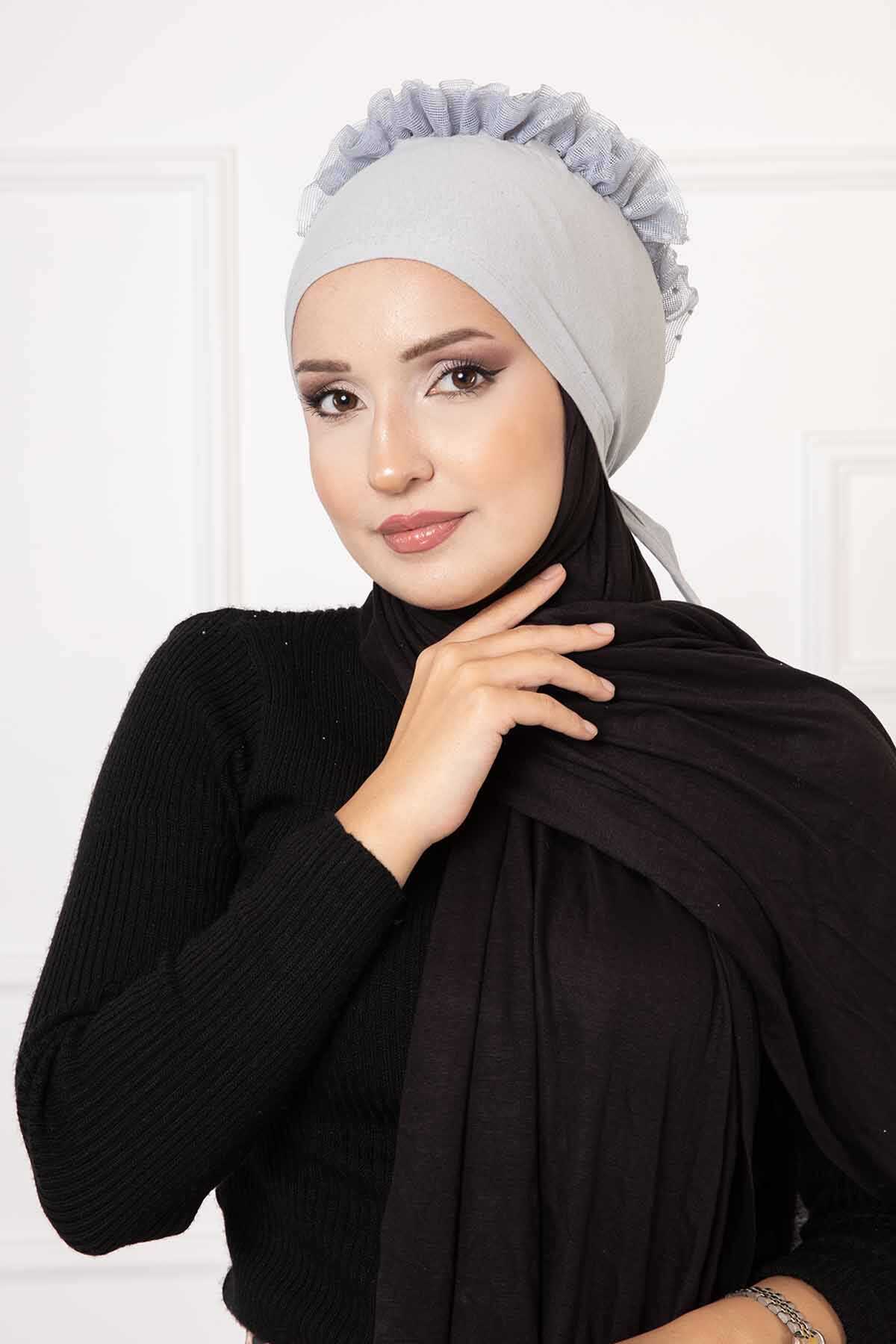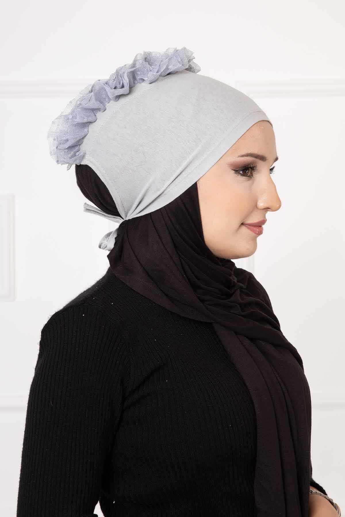 - Ürün dört mevsim tercih edileblir. Esnek, dikişli fırfır detaylı,arkadan bağlamalı tesettür bone modelidir. Terletmez ve hava alır.