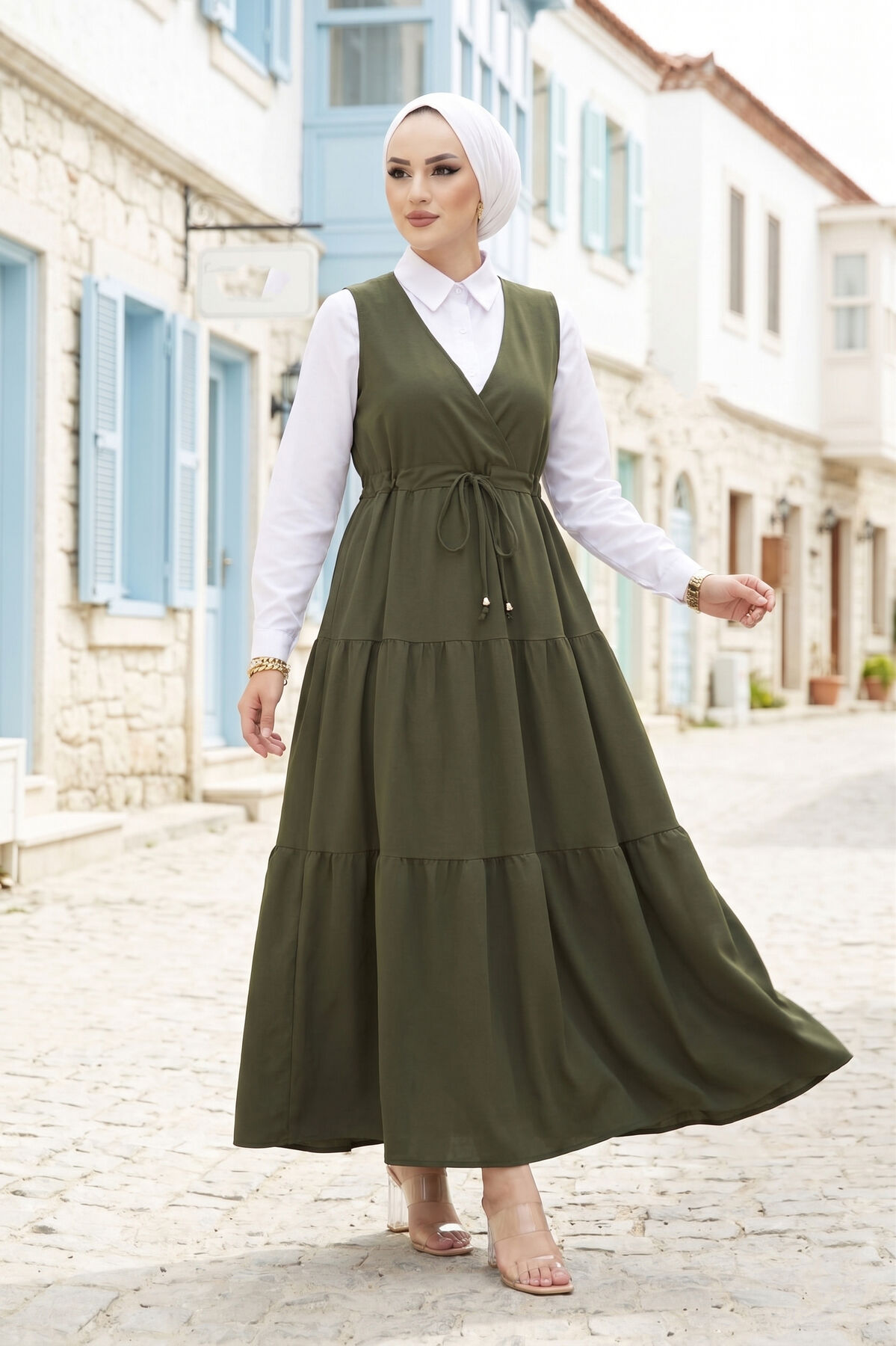 Fırfırlı Scuba Tesettür Jile Haki
