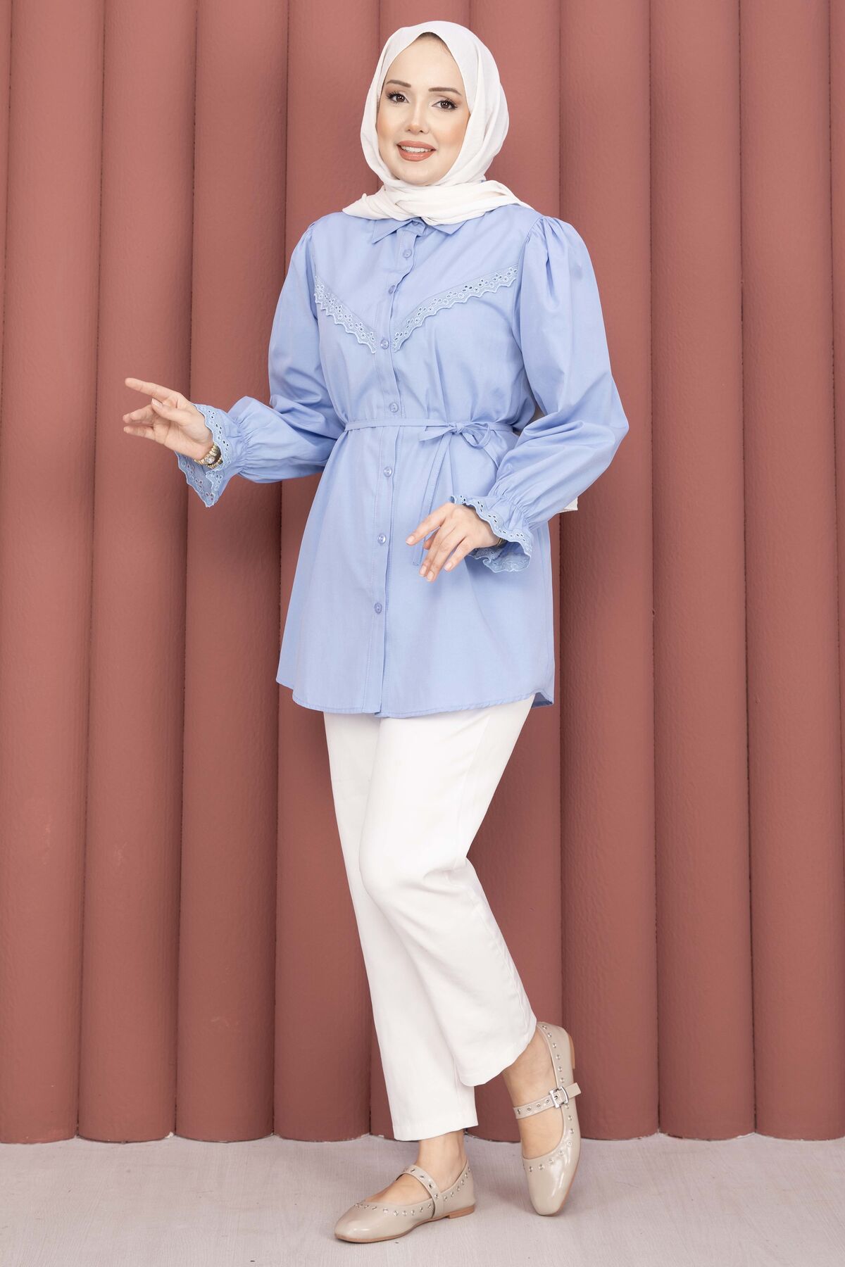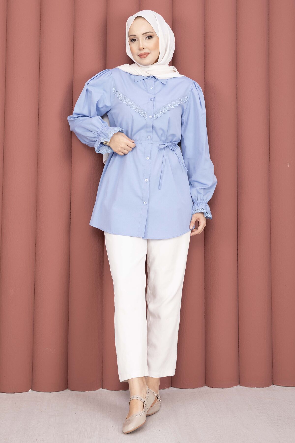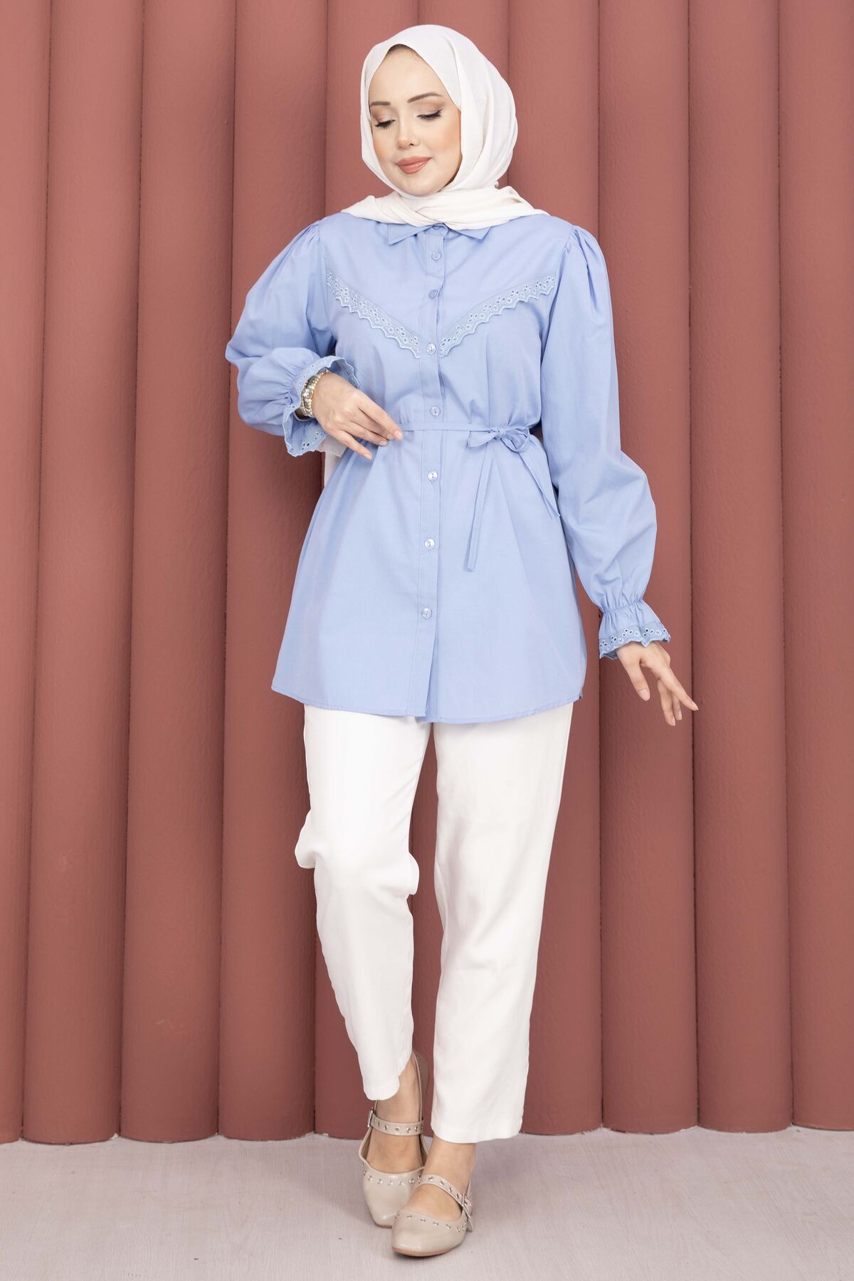 Şıklığı ve zarafeti bir arada sunan Fisto Detaylı Bağcıklı Gömlek, terikoton kumaşı ve özenle tasarlanmış detaylarıyla gardırobunuzun favorisi olacak. Günlük ve özel kombinlerde rahatlıkla kullanılabilir.