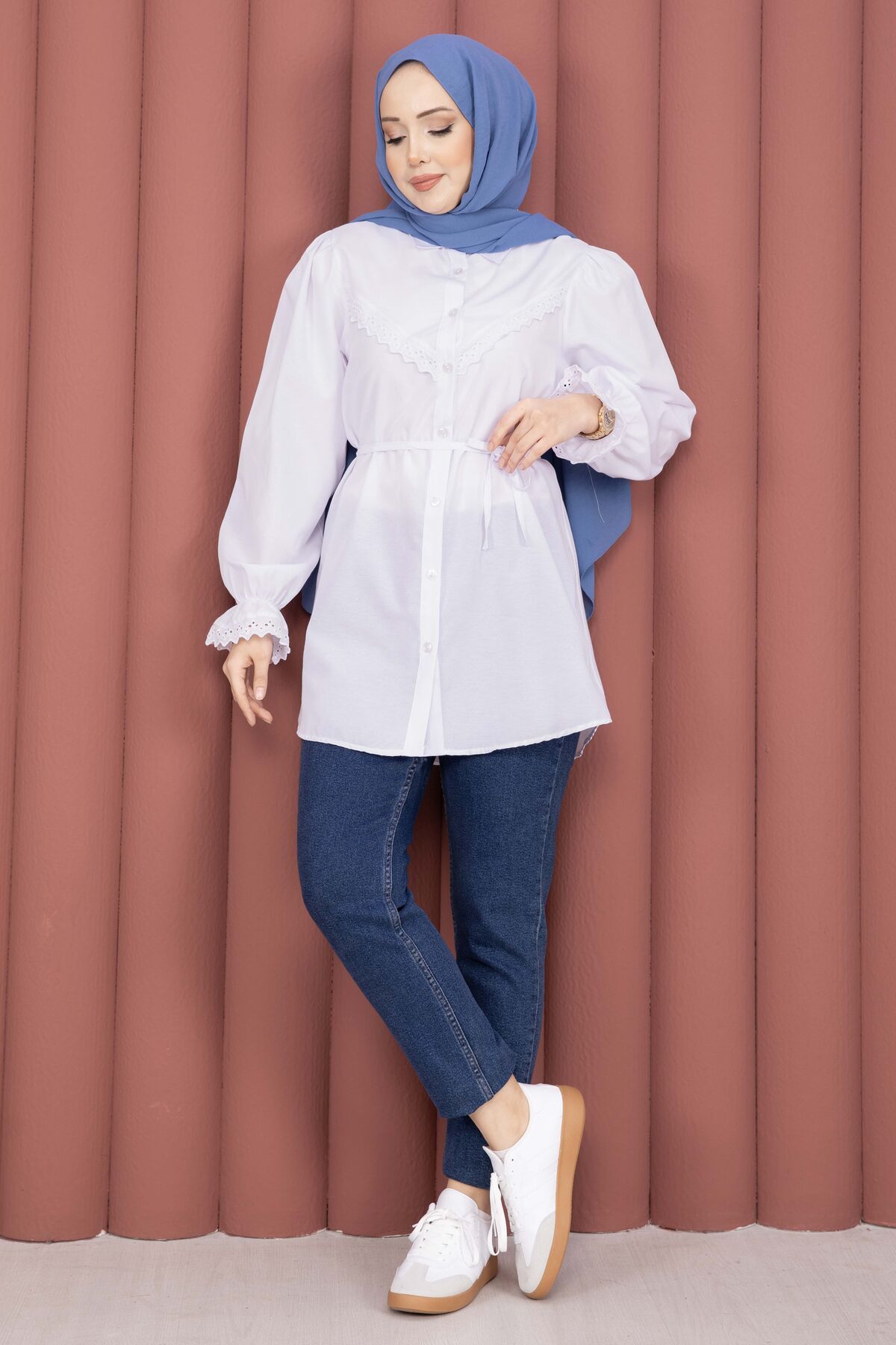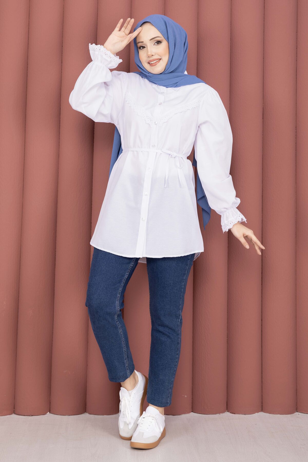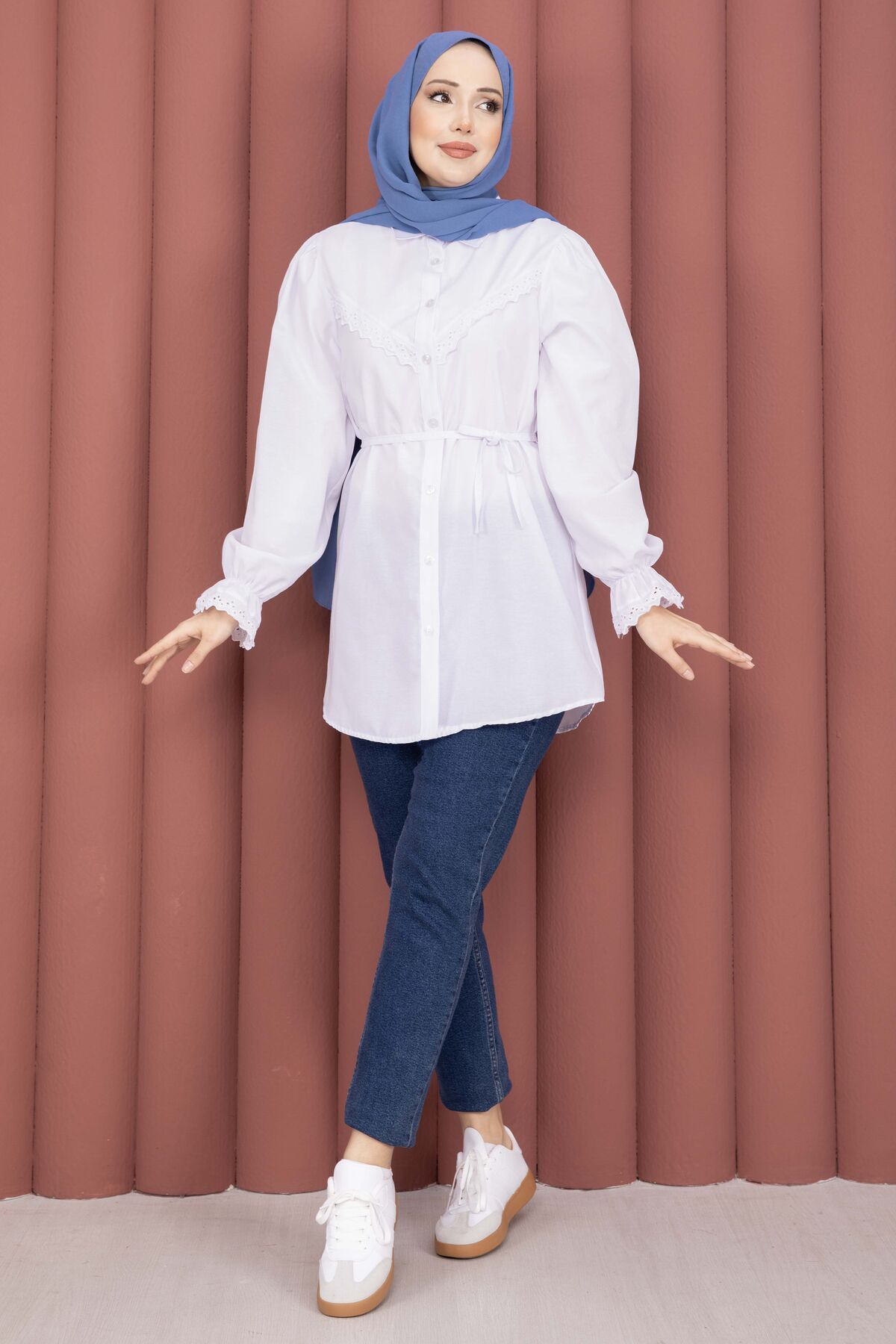 Şıklığı ve zarafeti bir arada sunan Fisto Detaylı Bağcıklı Gömlek, terikoton kumaşı ve özenle tasarlanmış detaylarıyla gardırobunuzun favorisi olacak. Günlük ve özel kombinlerde rahatlıkla kullanılabilir.