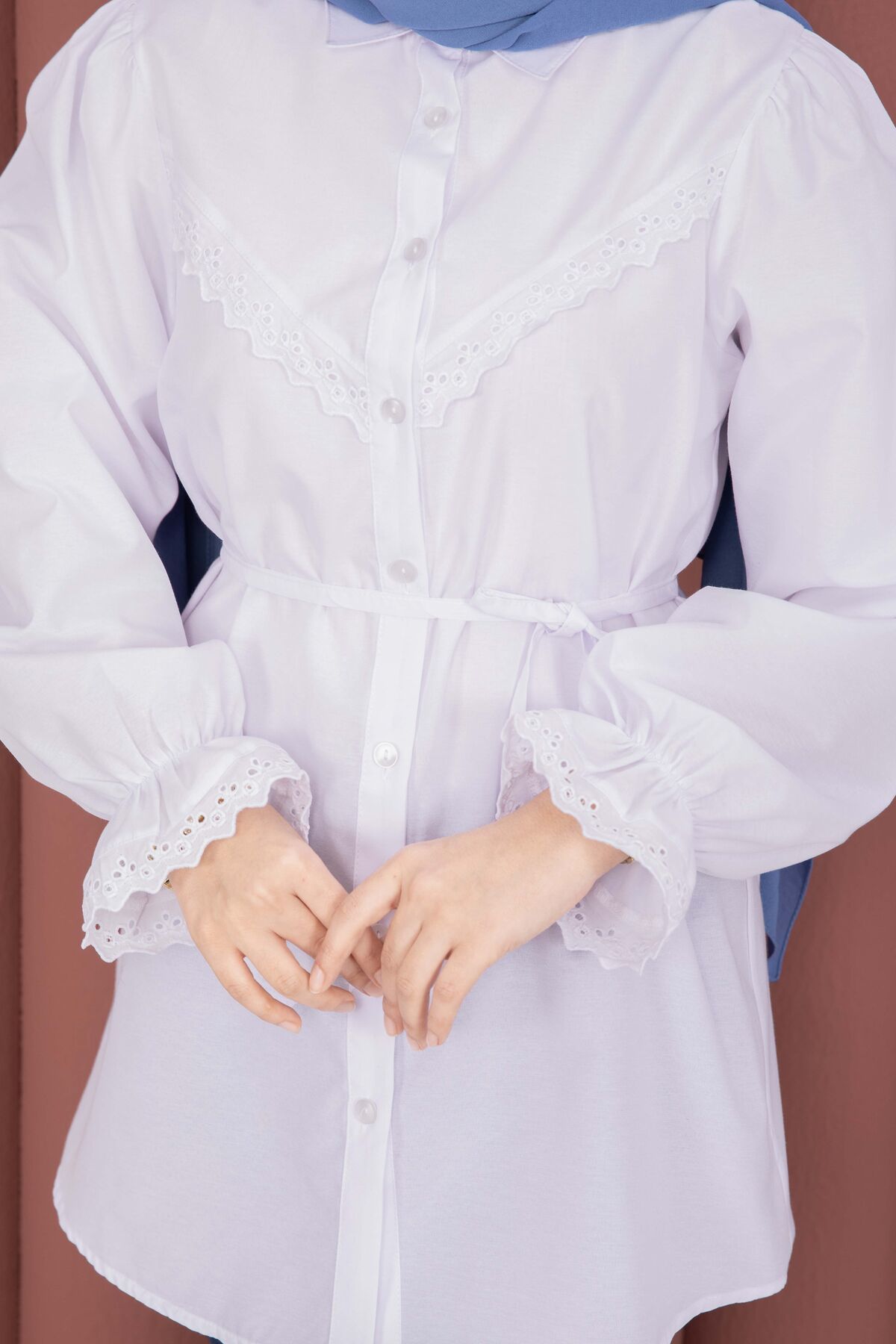 Fisto Detaylı Bağcıklı Gömlek Beyaz