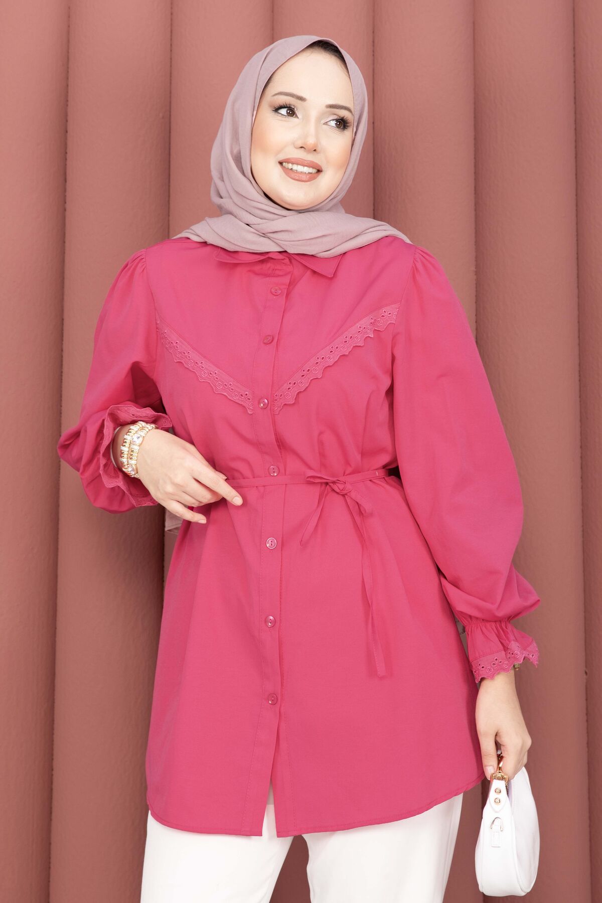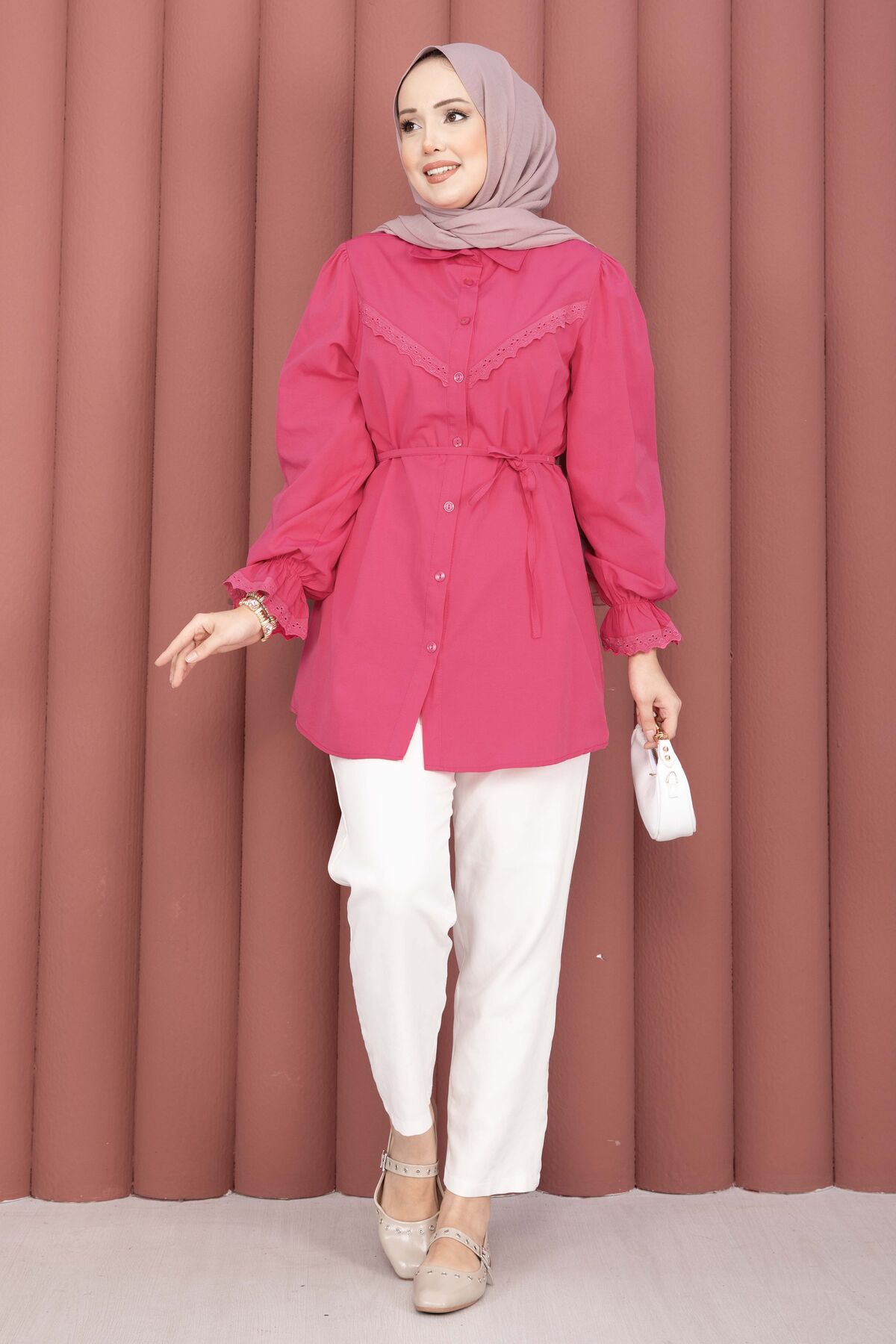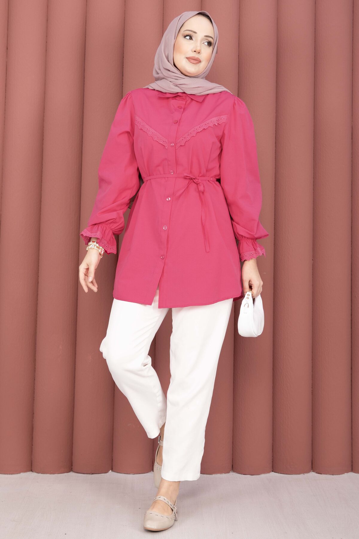 Fisto Detaylı Bağcıklı Gömlek Fuşya